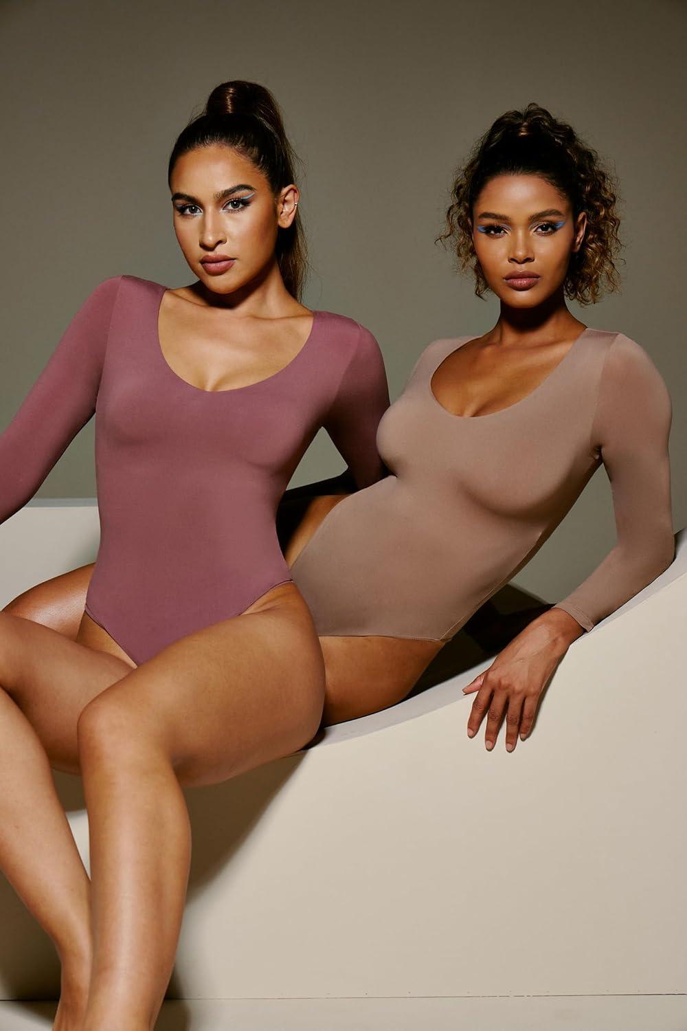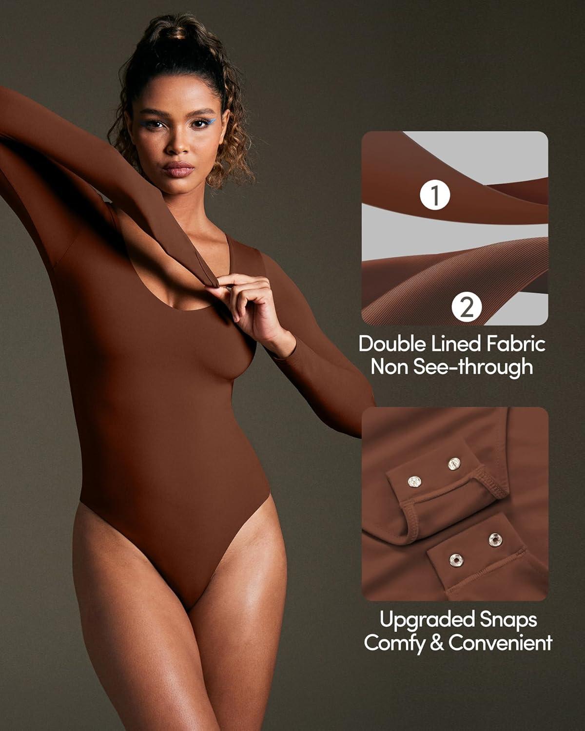 IUGA Bodysuits for Women Tummy Control Body Suits for Womens Compression Slimming Thong Bodysuit V Neck(Brownie)