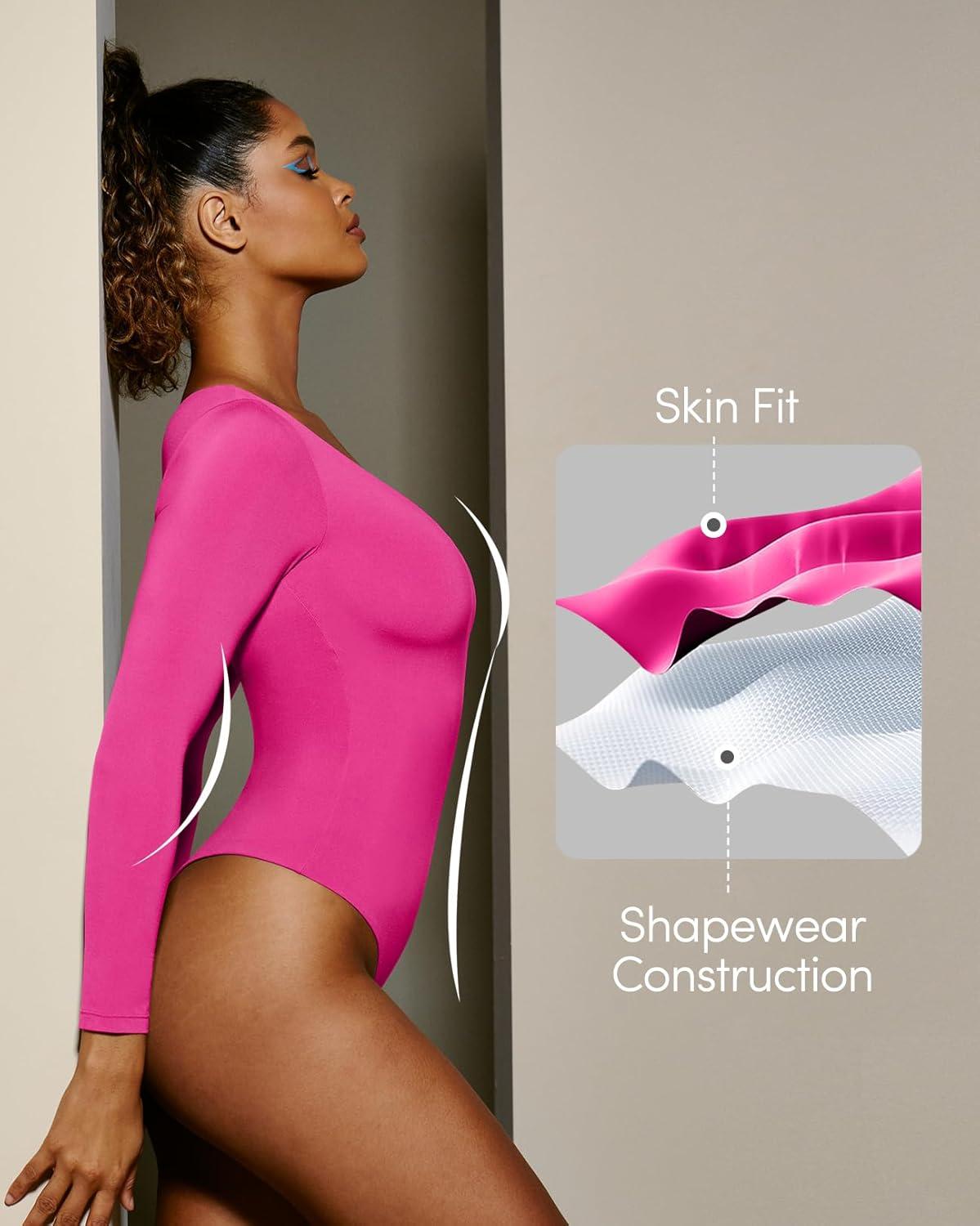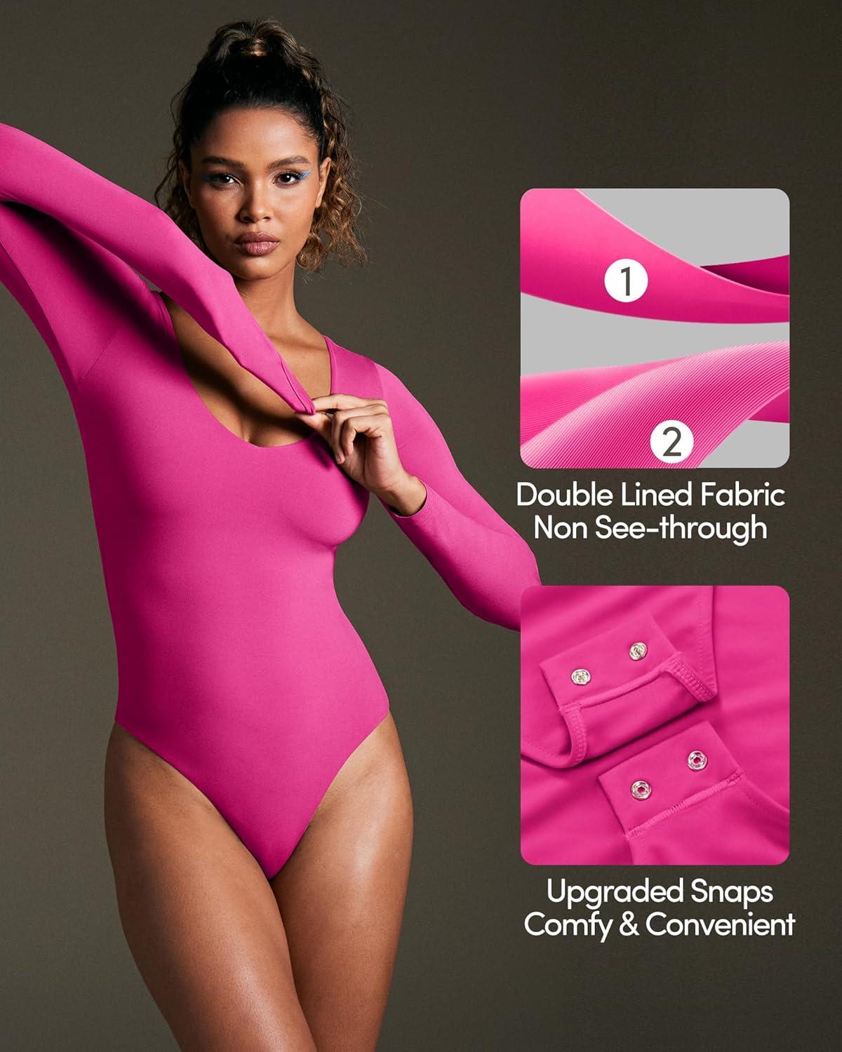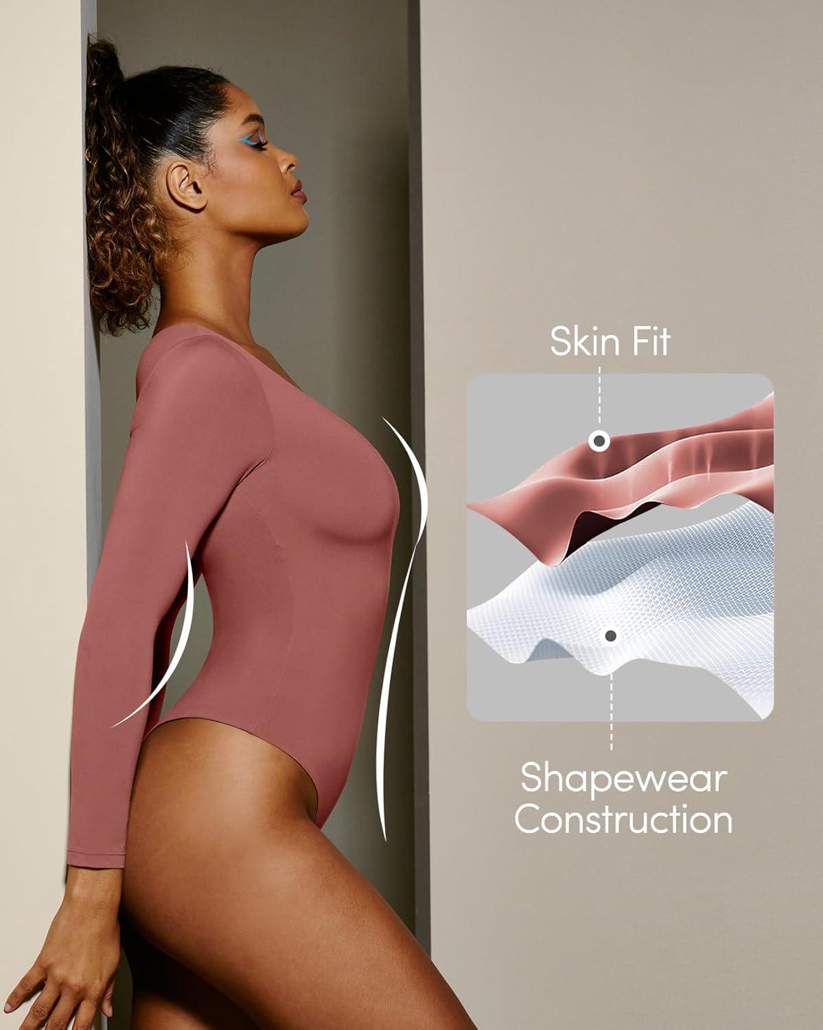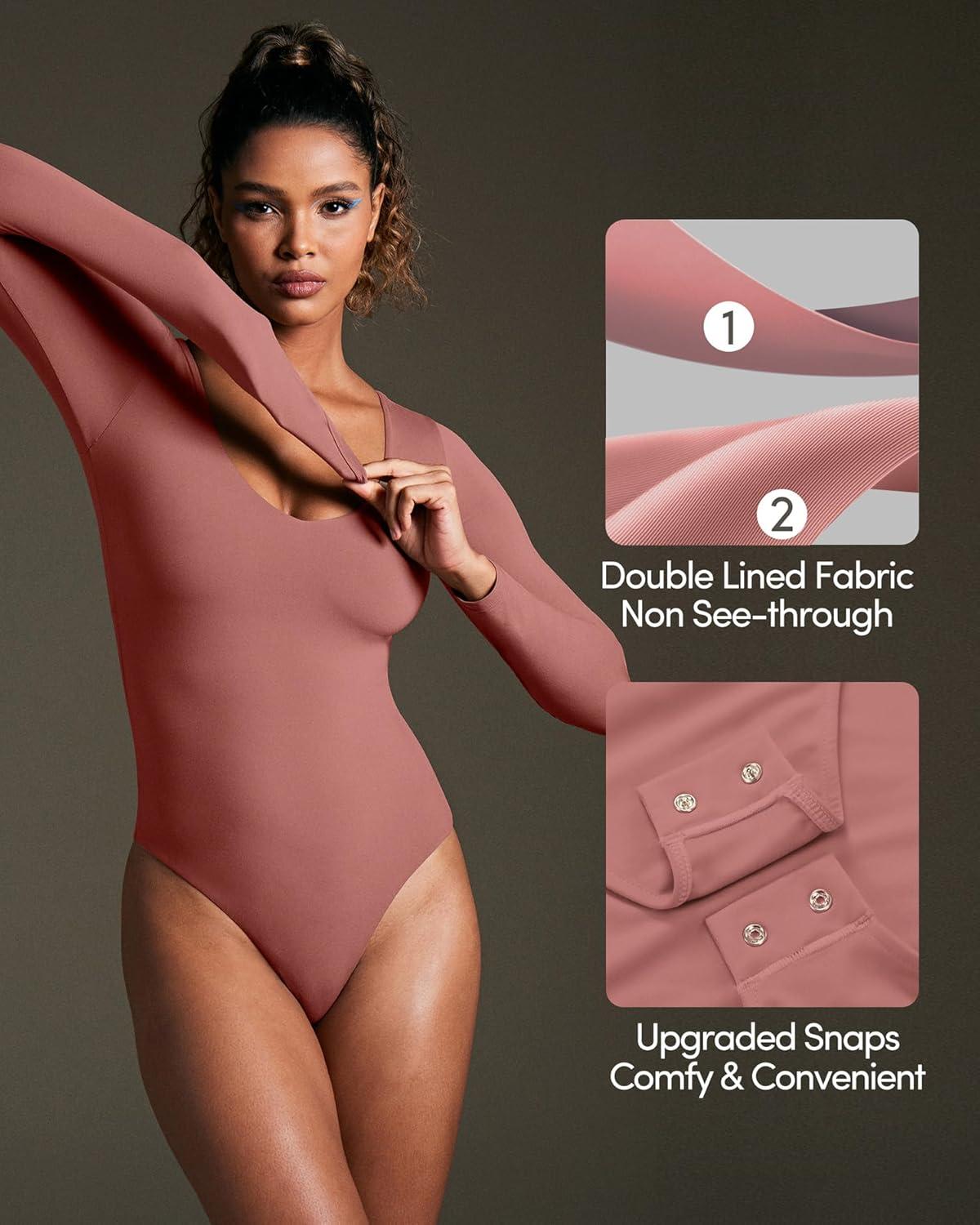 IUGA Bodysuits for Women Tummy Control Body Suits for Womens Compression Slimming Thong Bodysuit V Neck(Crush)