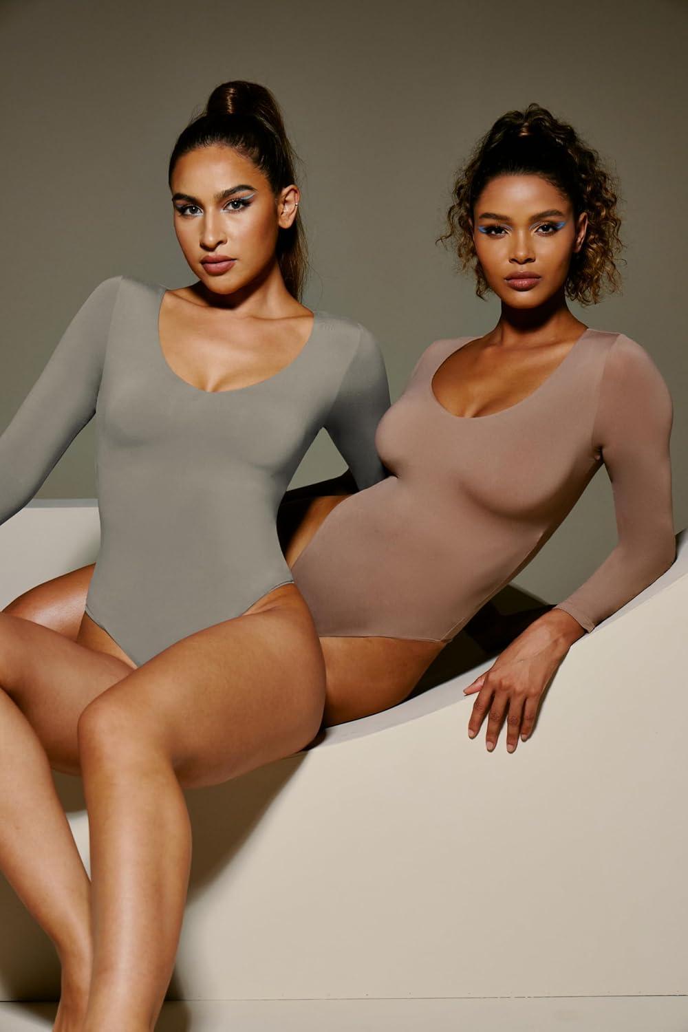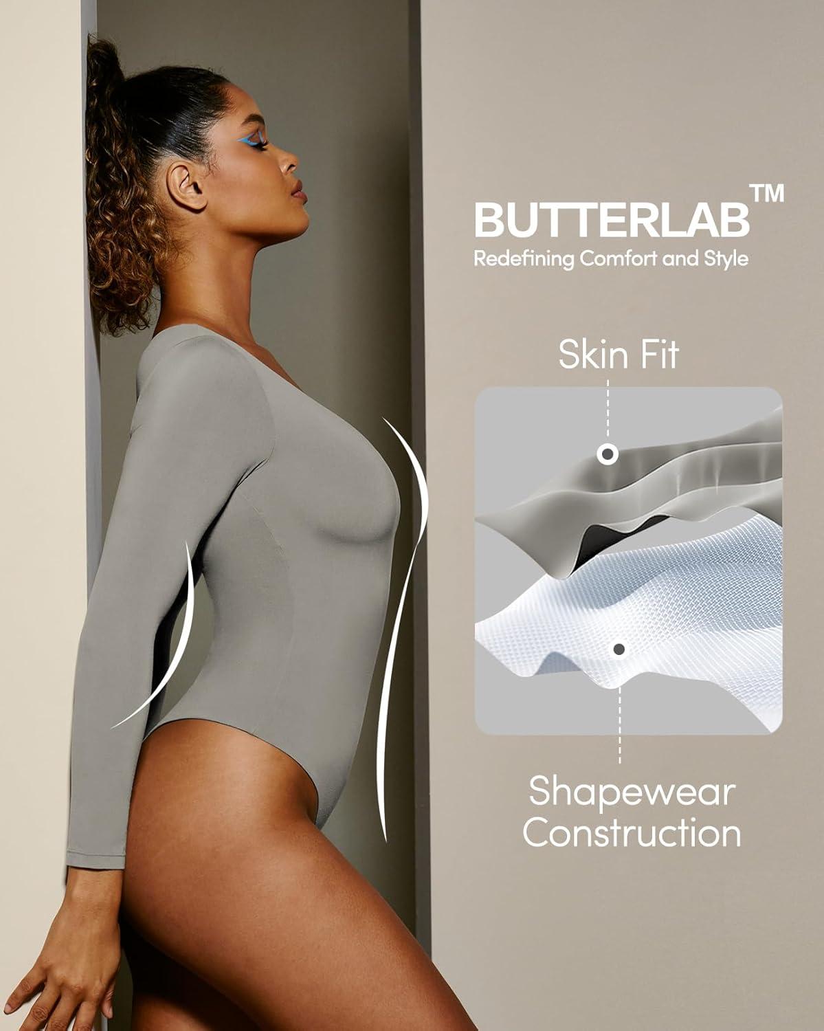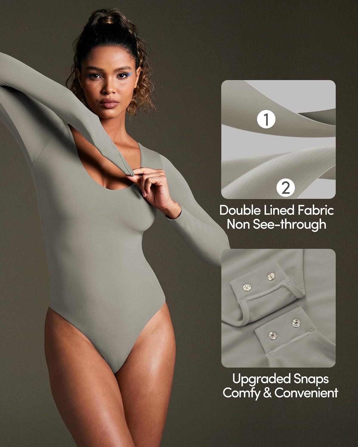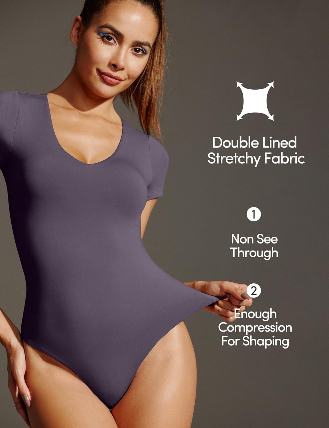 IUGA Bodysuits for Women Tummy Control Body Suits for Womens Compression Slimming Thong Bodysuit V Neck(Elephant Gray)