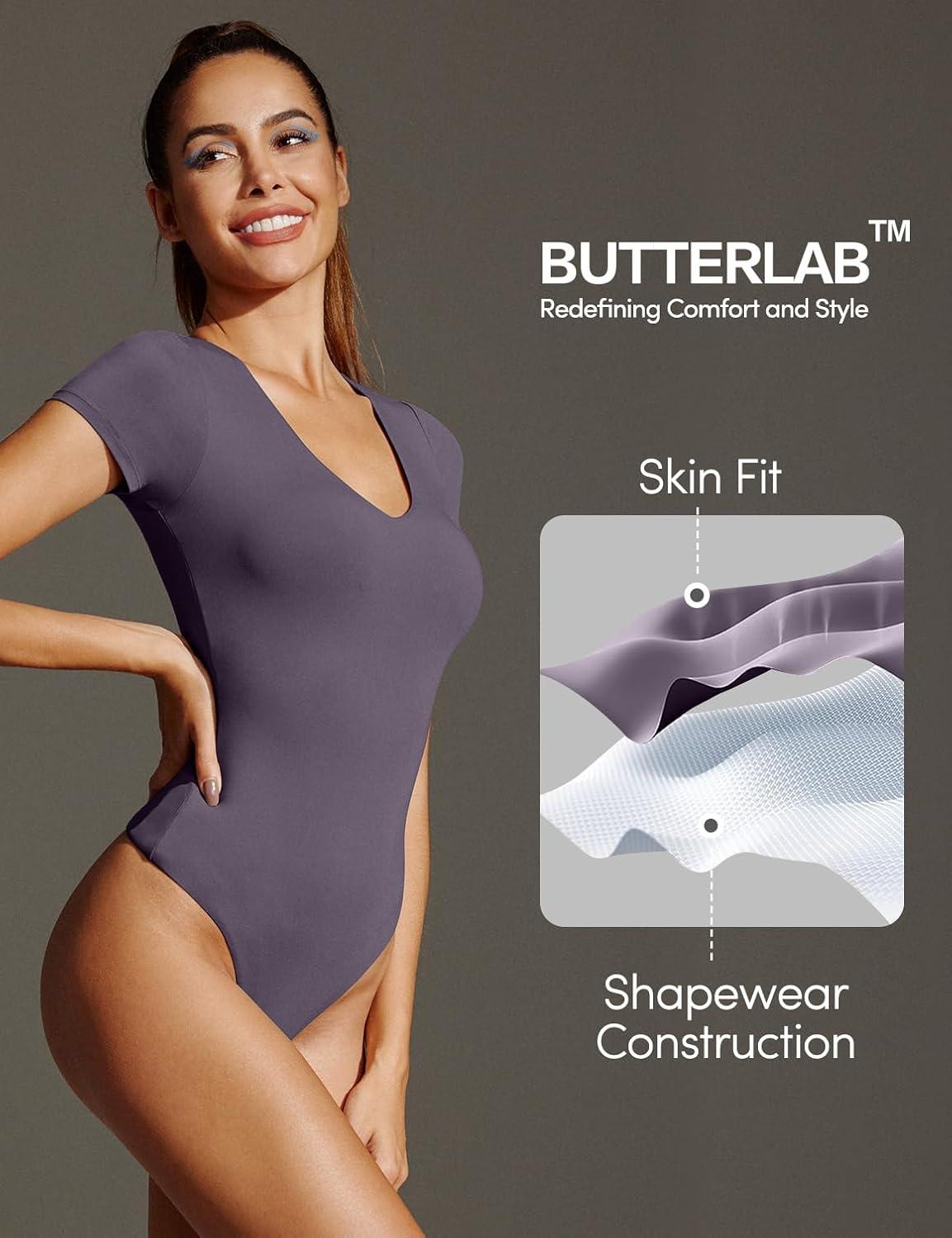 IUGA Bodysuits for Women Tummy Control Body Suits for Womens Compression Slimming Thong Bodysuit V Neck(Pastel Violet)
