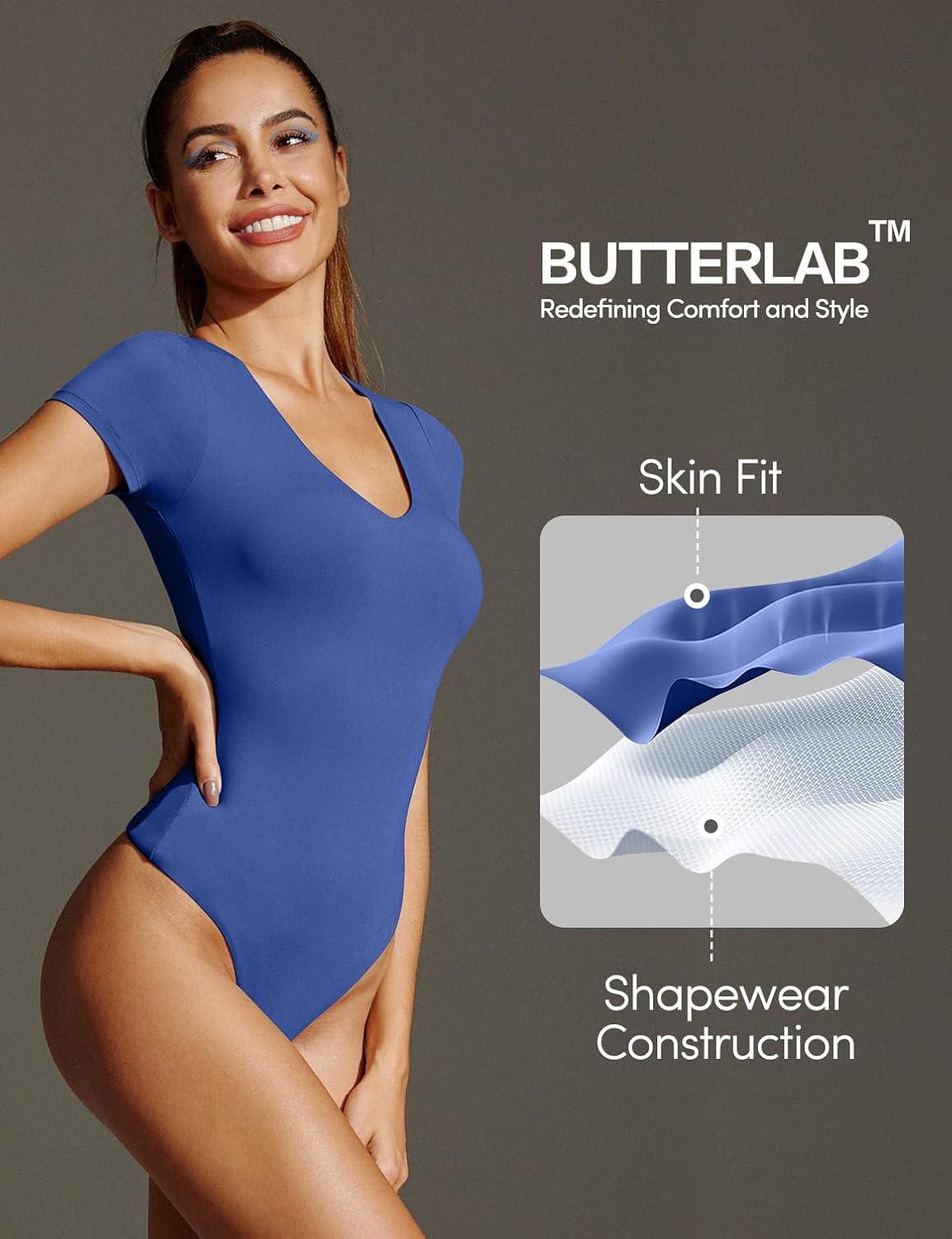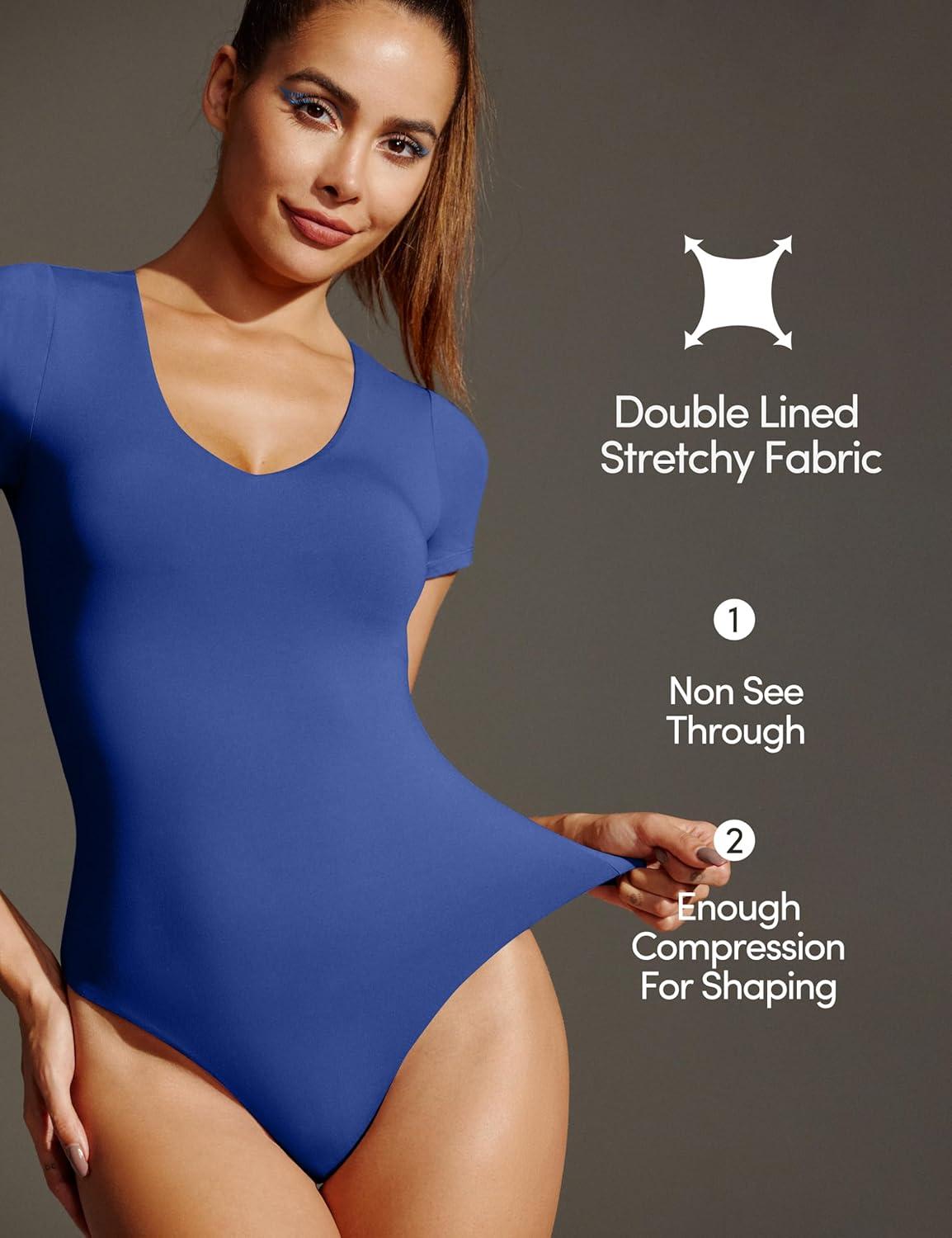 IUGA Bodysuits for Women Tummy Control Body Suits for Womens Compression Slimming Thong Bodysuit V Neck(Sapphire)