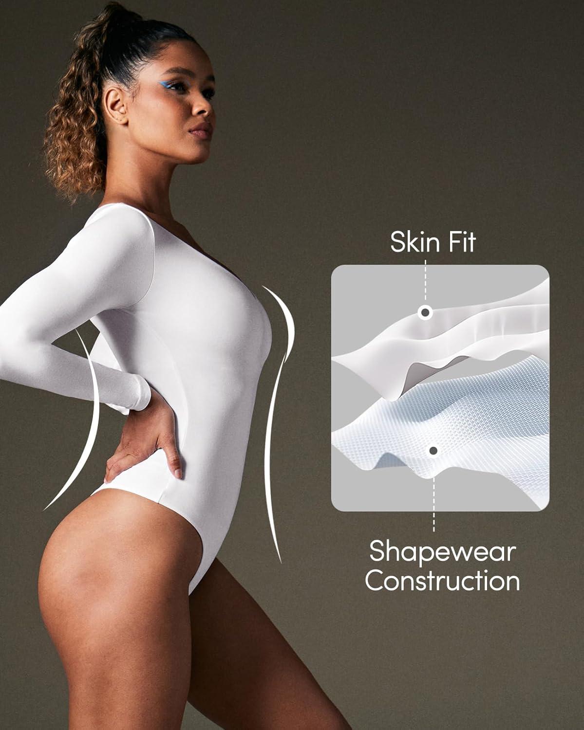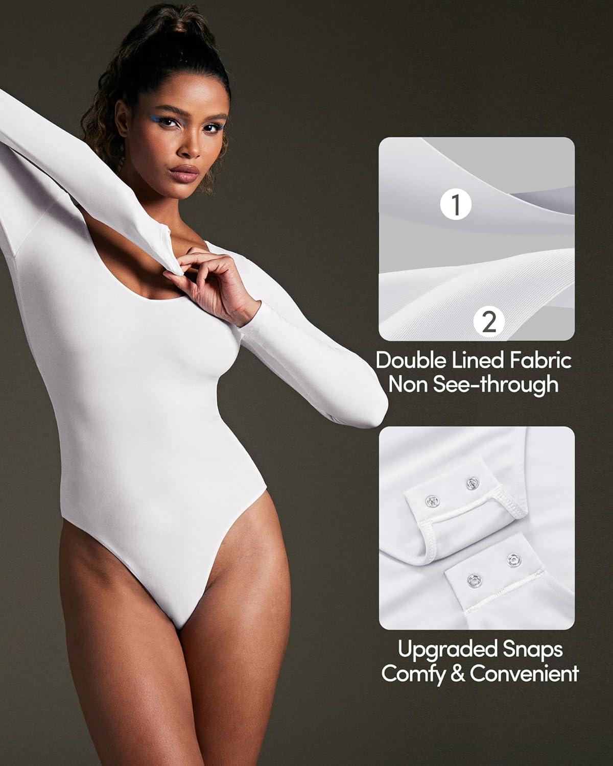 IUGA Bodysuits for Women Tummy Control Body Suits for Womens Compression Slimming Thong Bodysuit V Neck(White)