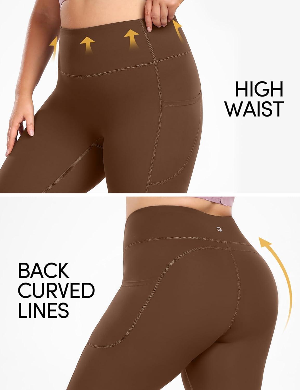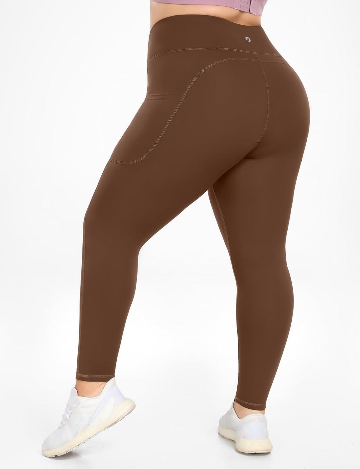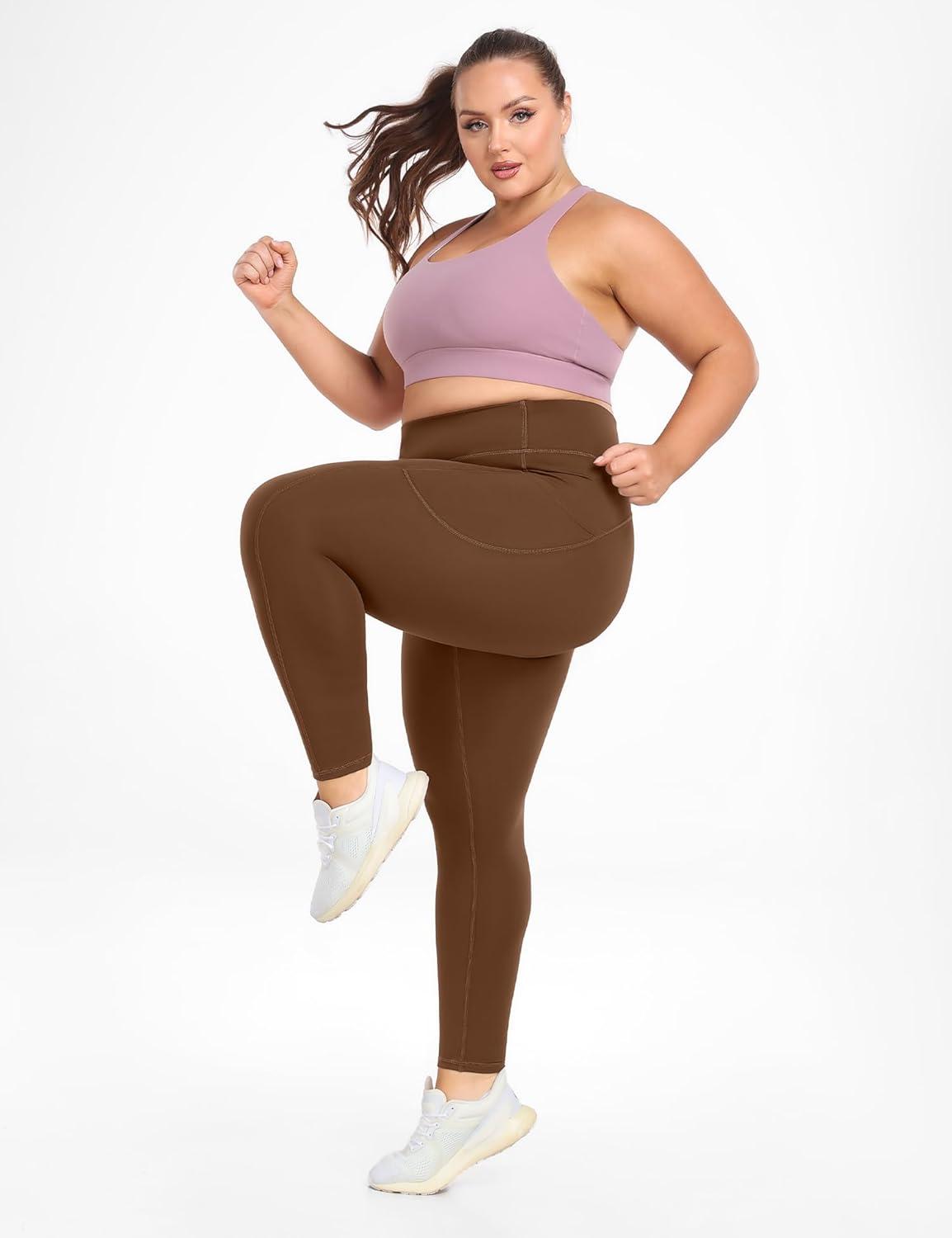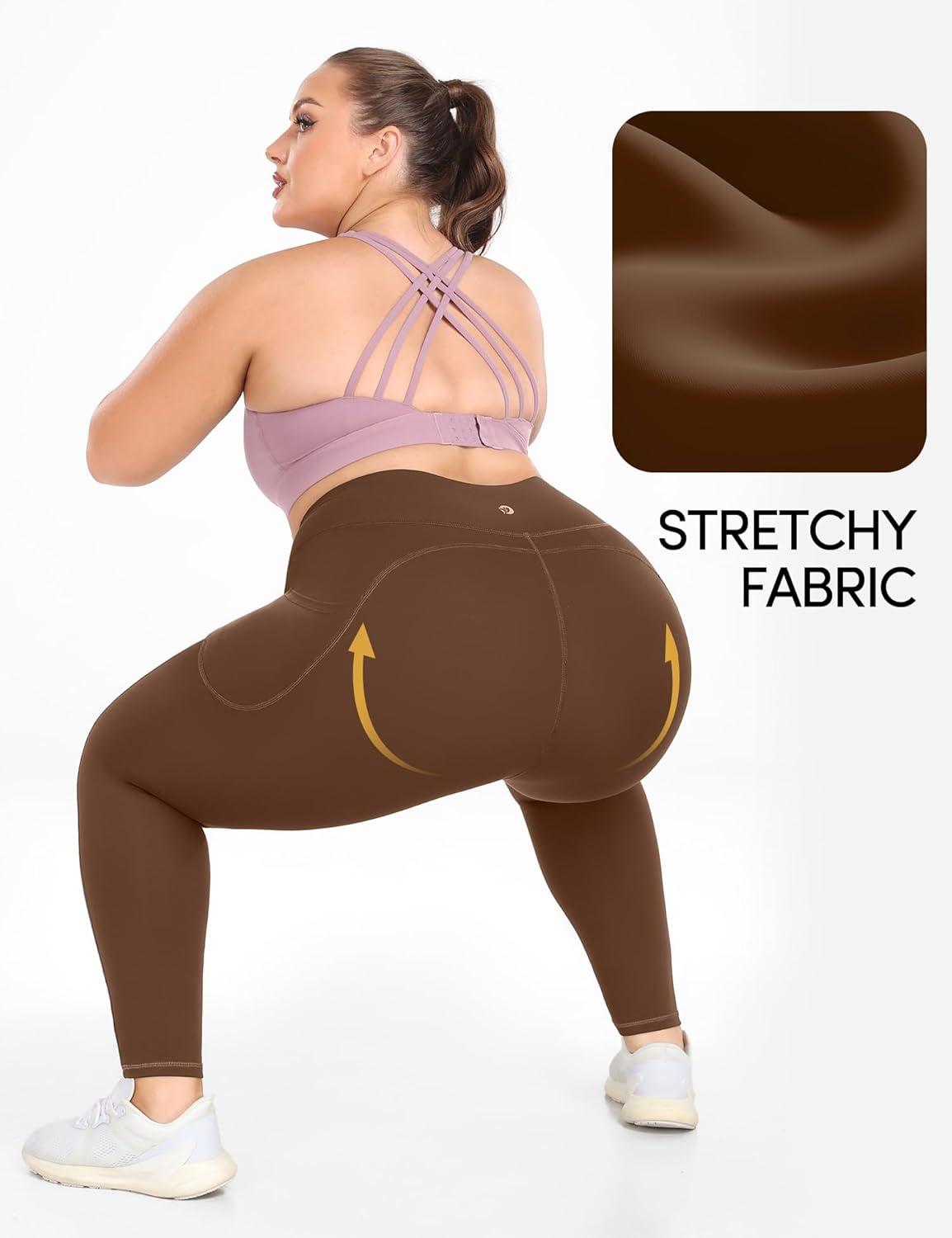 IUGA Buttery Soft Plus Size Leggings for Women No Front Seam Leggings with Pockets for Women Tummy Control Yoga Pants 3X 4X(Chestnut)