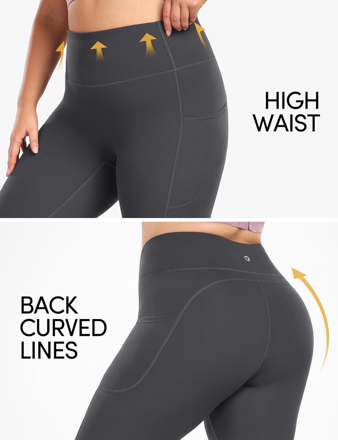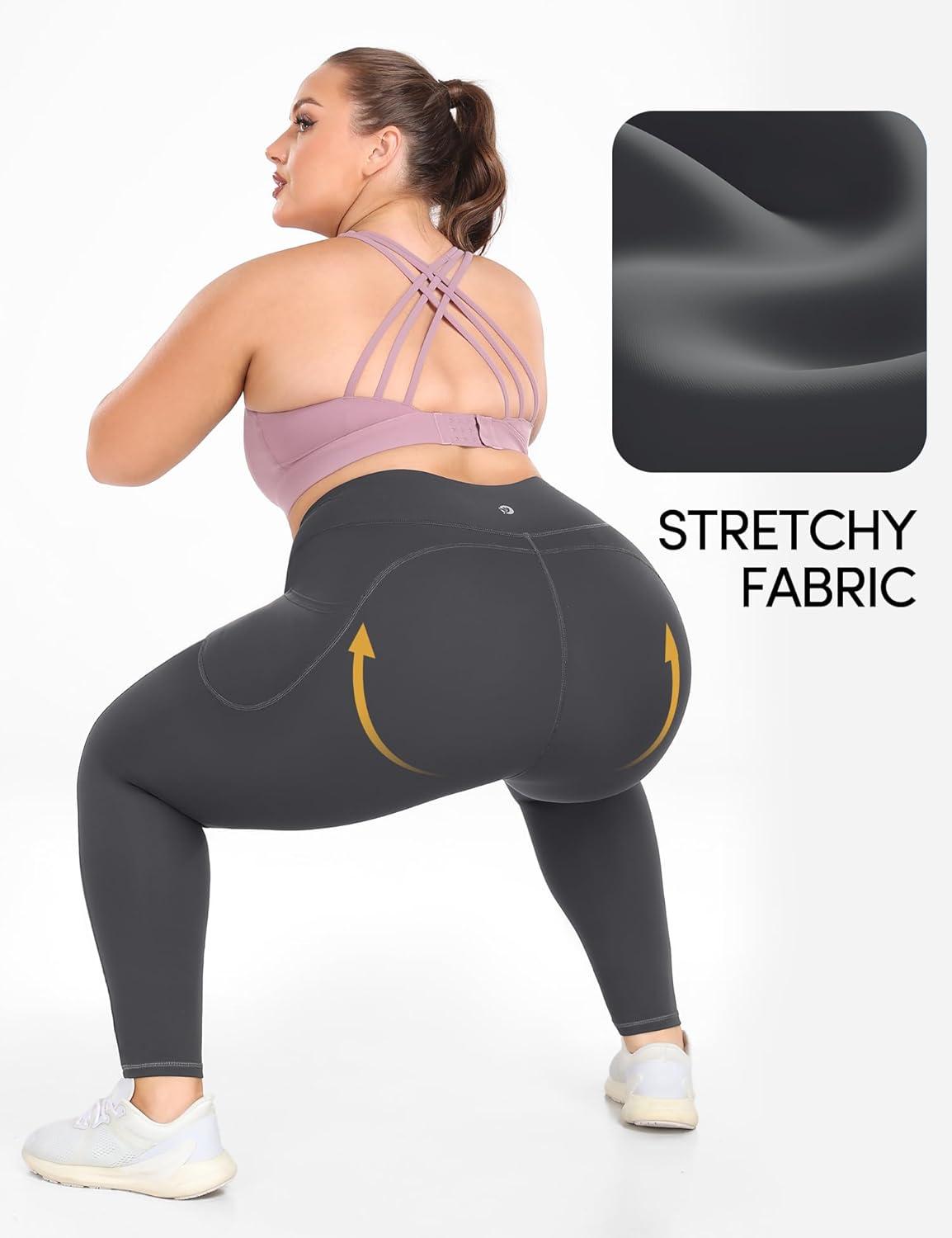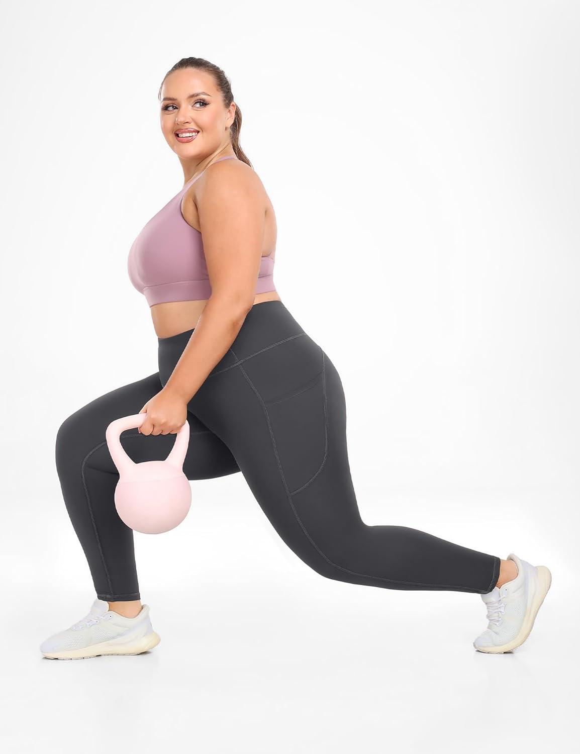 IUGA Buttery Soft Plus Size Leggings for Women No Front Seam Leggings with Pockets for Women Tummy Control Yoga Pants 3X 4X(Dark Grey)