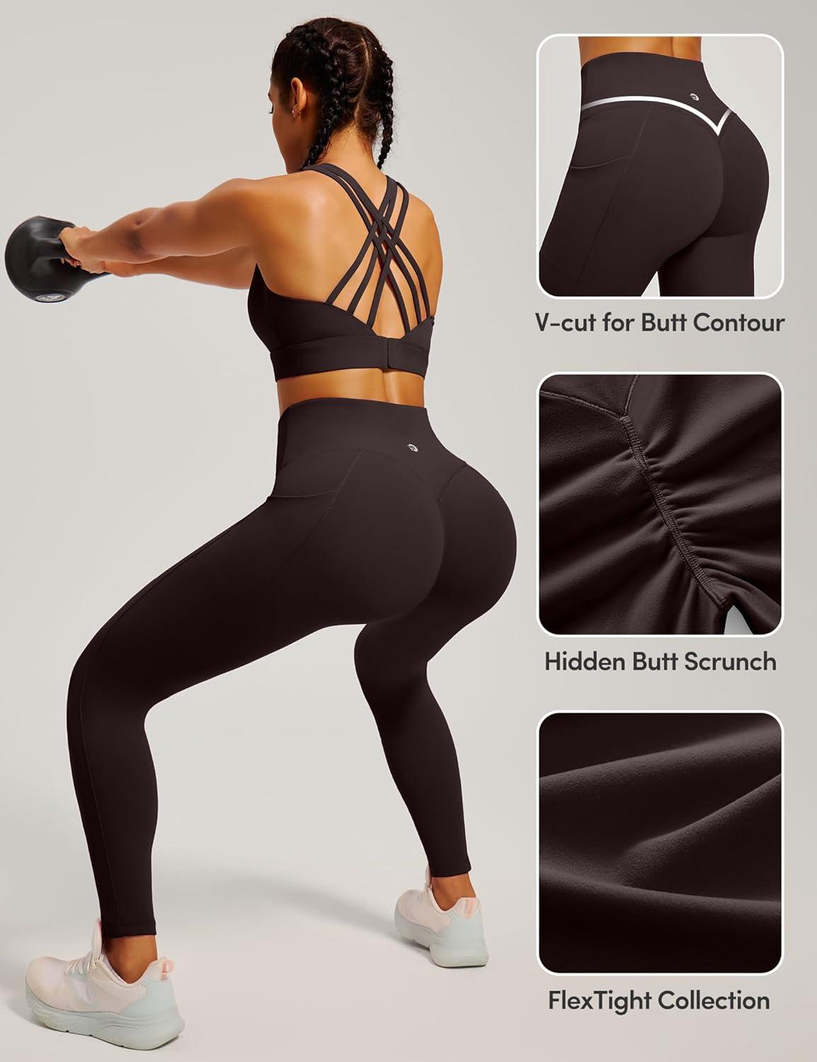 IUGA Womens Hidden Scrunch Butt Lifting Leggings Compression Gym Leggings with Pockets Booty Workout Yoga Pants Tummy Control(Dark Coffee)