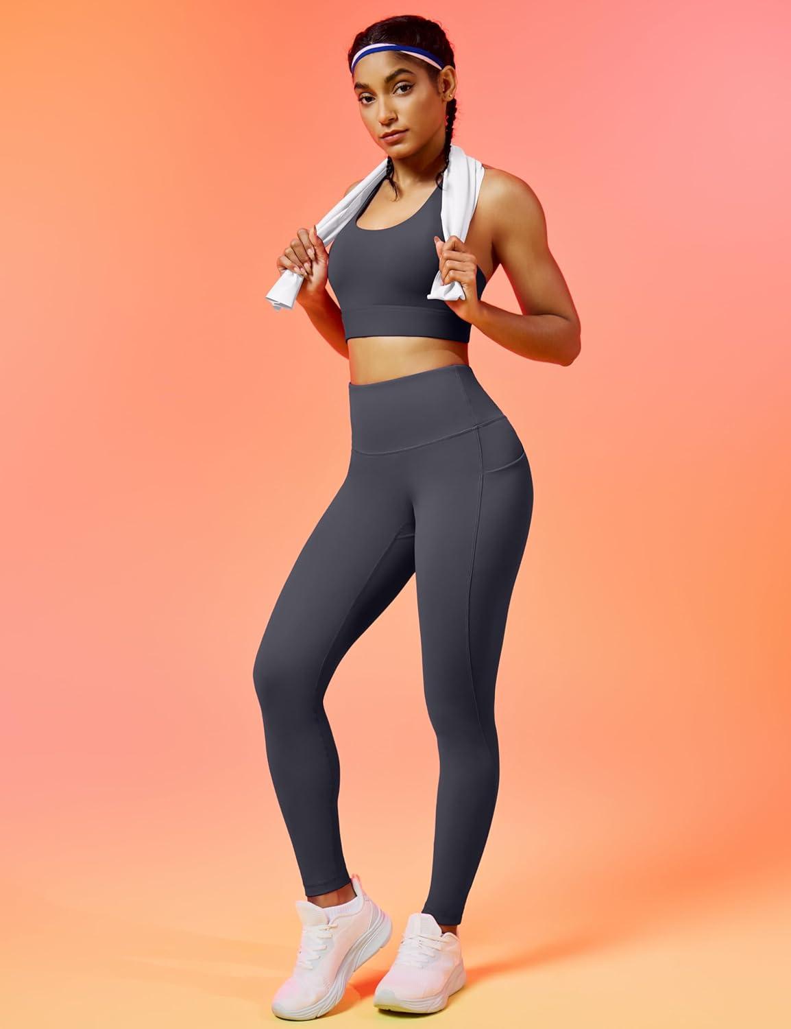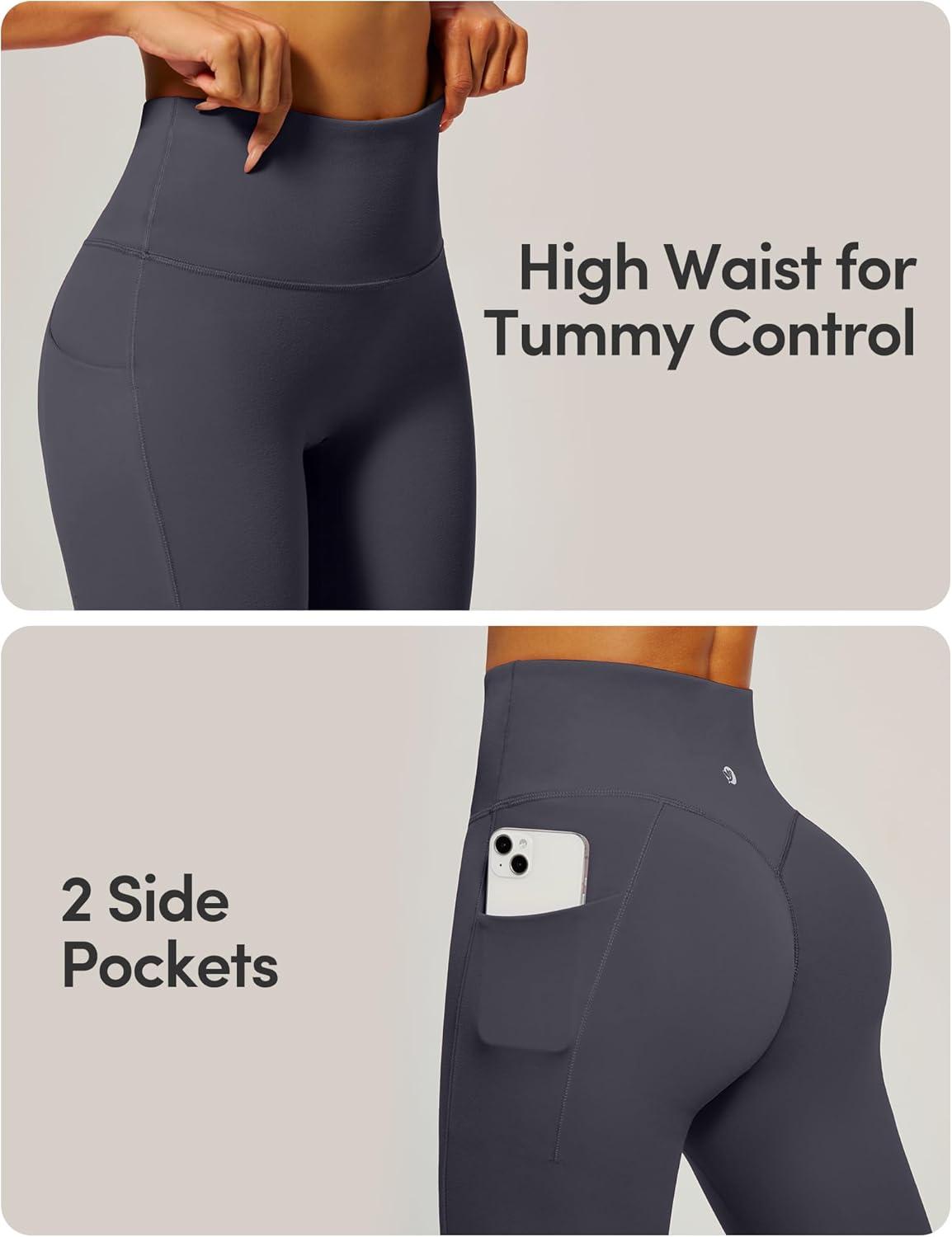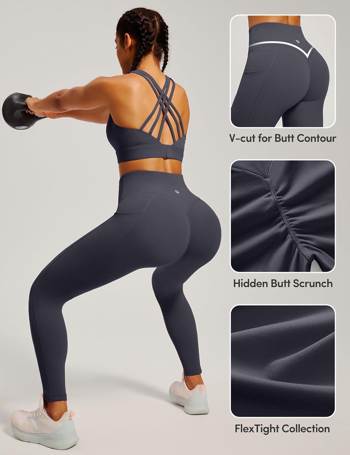 IUGA Womens Hidden Scrunch Butt Lifting Leggings Compression Gym Leggings with Pockets Booty Workout Yoga Pants Tummy Control(Dark Grey)