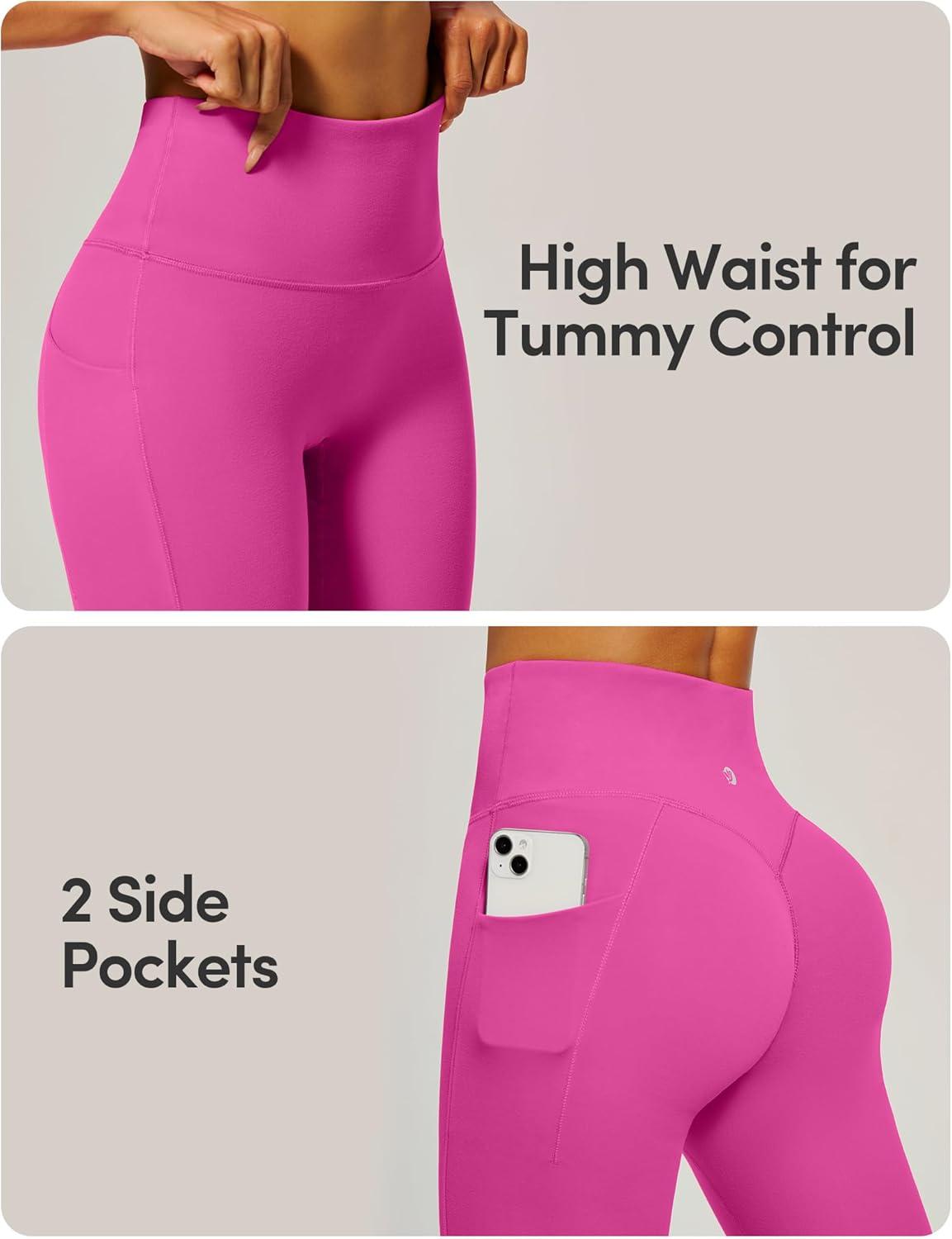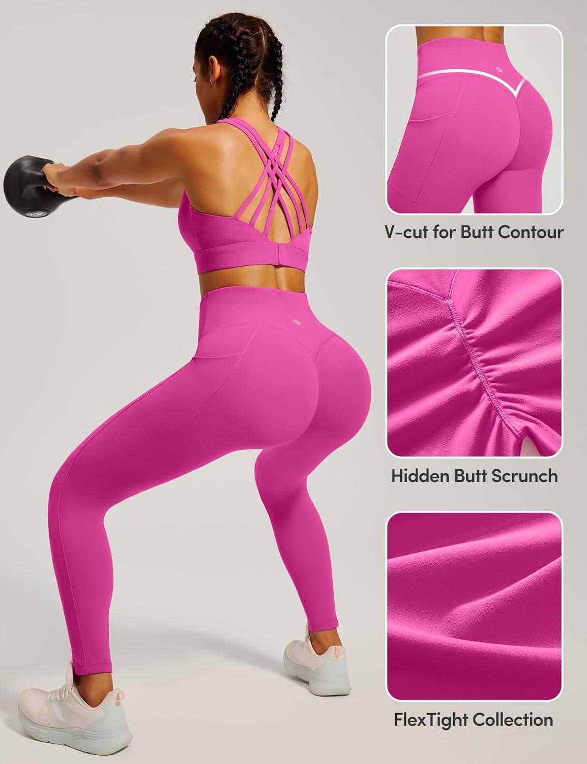 IUGA Womens Hidden Scrunch Butt Lifting Leggings Compression Gym Leggings with Pockets Booty Workout Yoga Pants Tummy Control(Hot Pink)