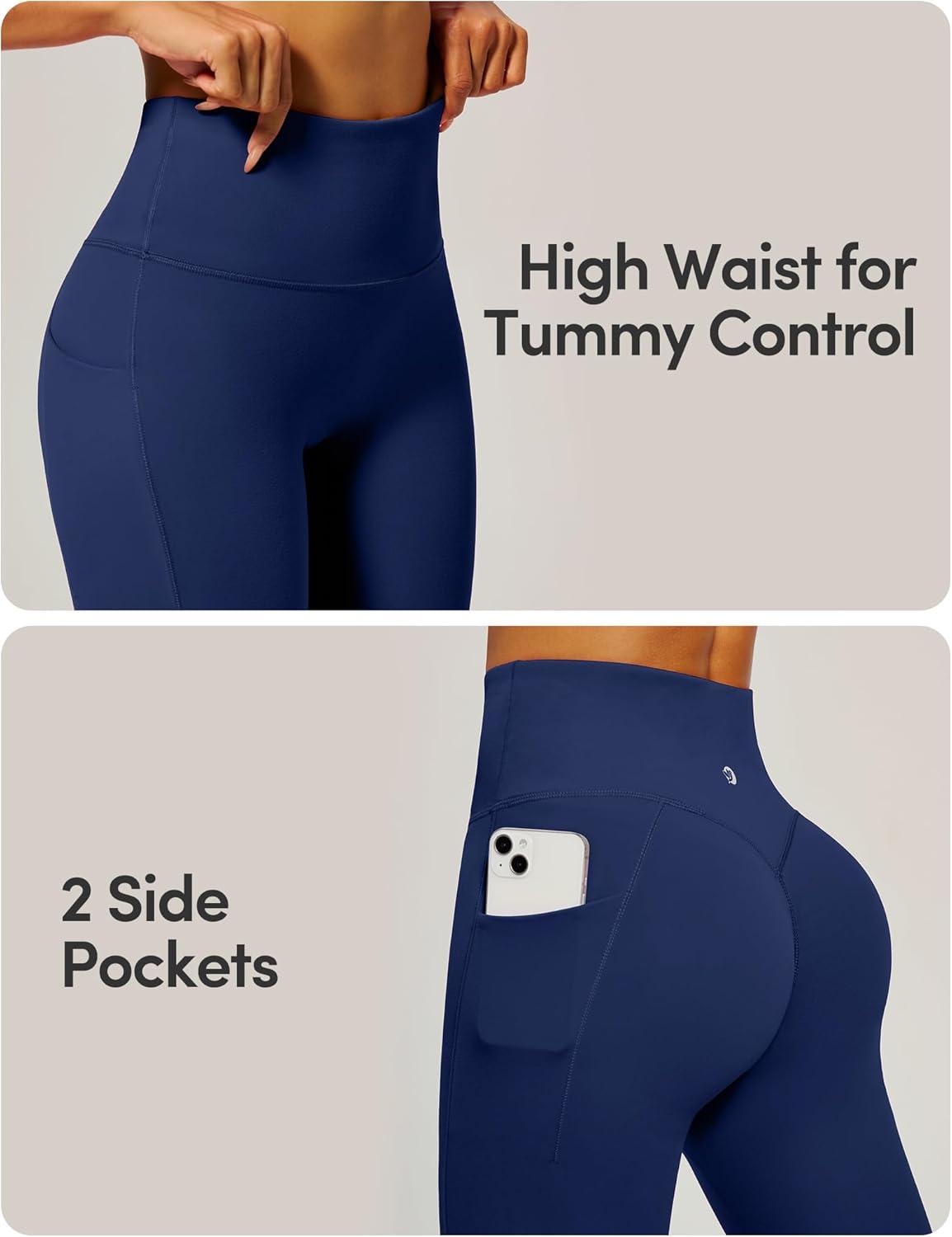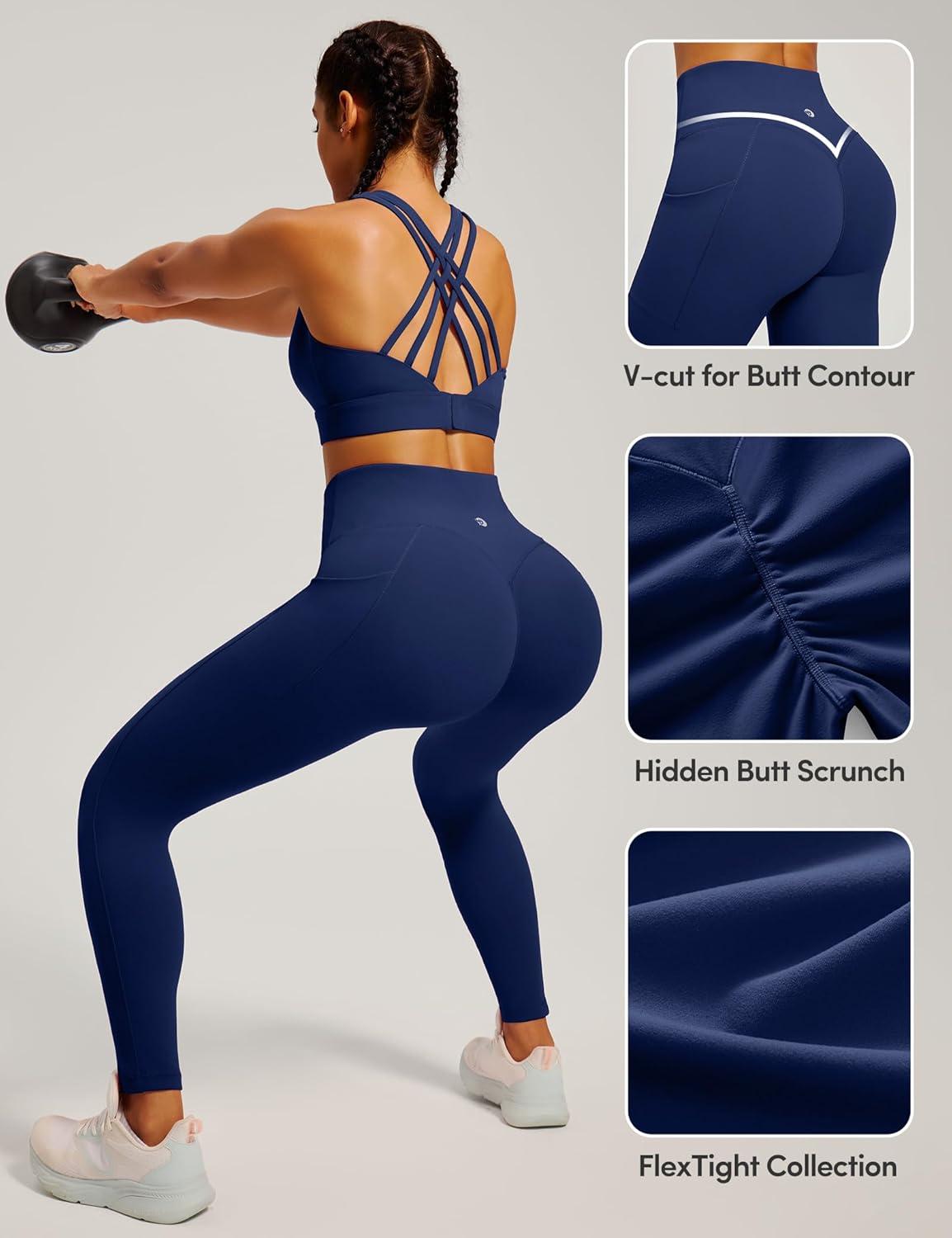 IUGA Womens Hidden Scrunch Butt Lifting Leggings Compression Gym Leggings with Pockets Booty Workout Yoga Pants Tummy Control(Navy Blue)