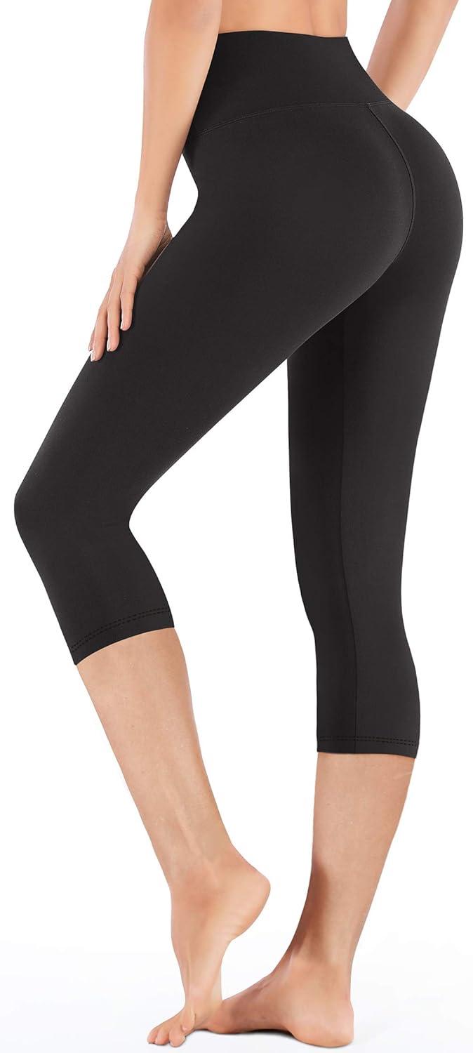 IUGA High Waisted Capri Leggings for Women Workout with Inner Pocket Womens(Black Capris)