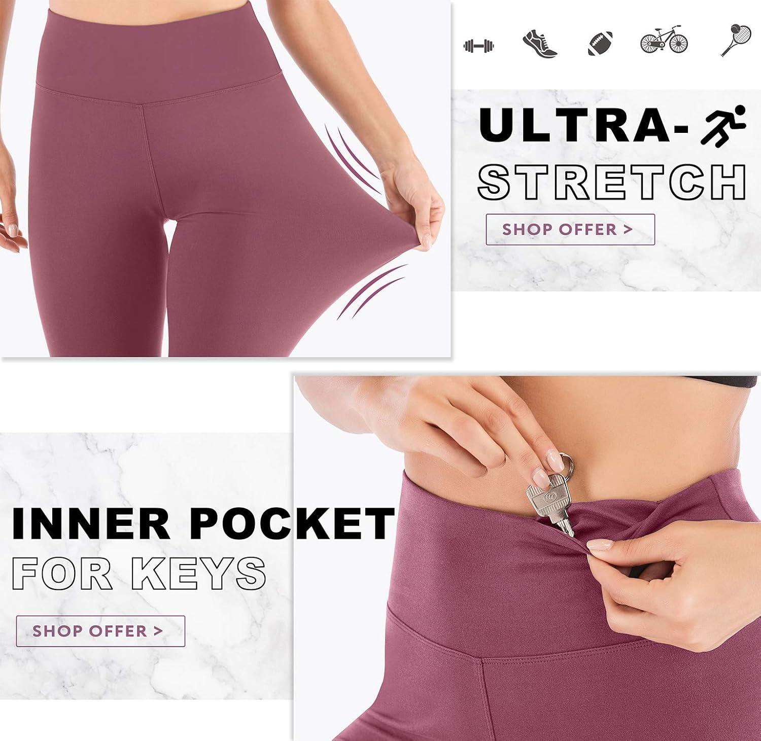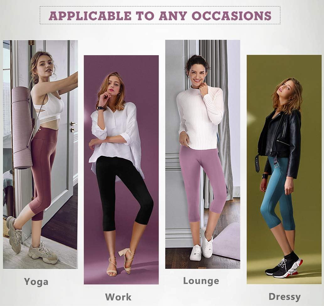 IUGA High Waisted Capri Leggings for Women Workout with Inner Pocket Womens(Pale Red Violet Capris)