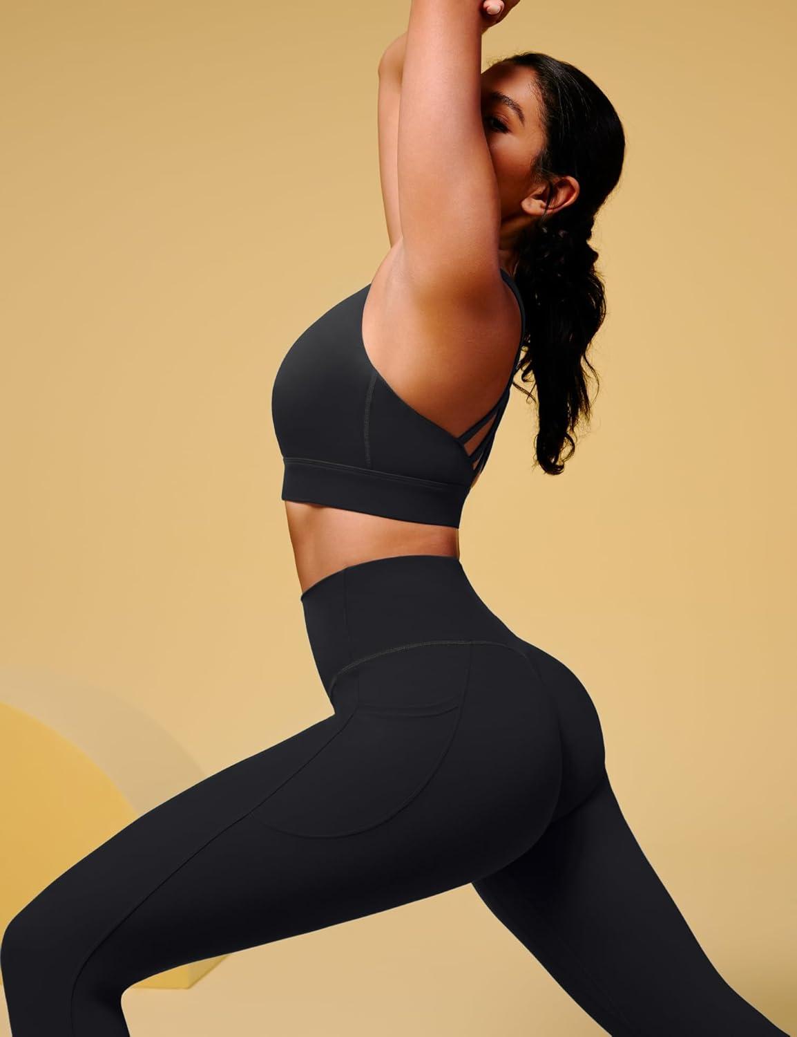 IUGA High Waisted Yoga Pants for Women with Pockets Capri Leggings for Women Workout Leggings for Women Yoga Capris(Black-capri)