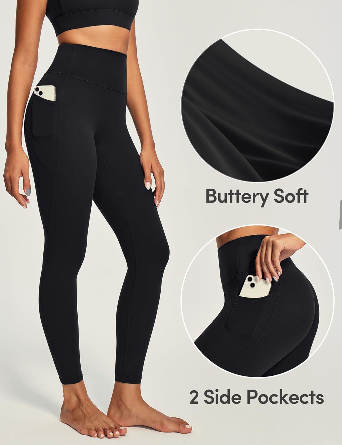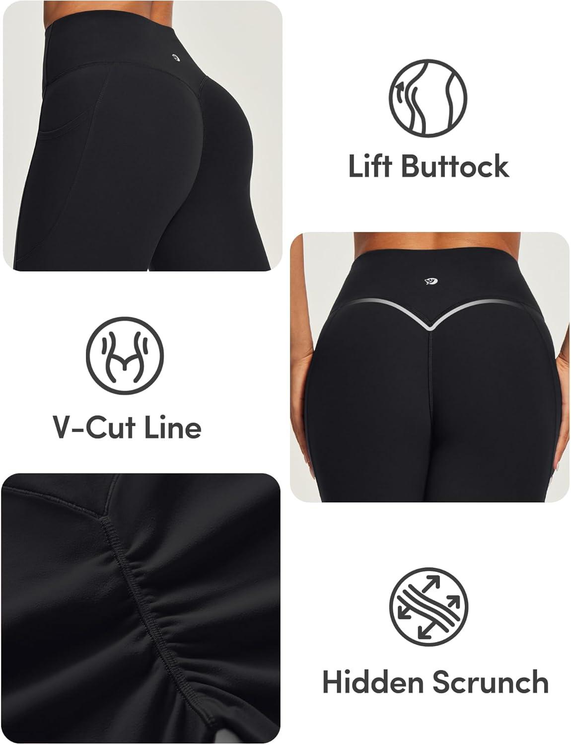 IUGA Invisible Scrunch Butt Lifting Leggings for Women No Front Seam Gym Leggings with Pockets Yoga Pants Tummy Control(Black)