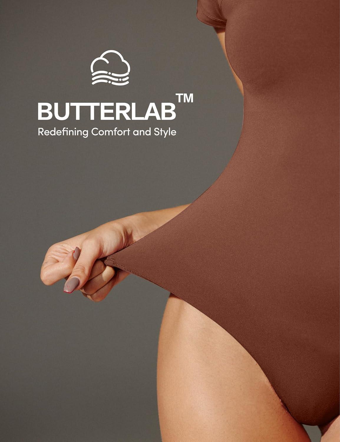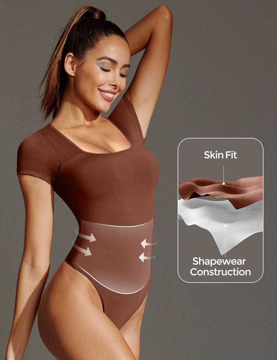 IUGA Long Sleeve Bodysuits for Women Square Neck Bodysuit Shapewear Bodysuit Tummy Control Slimming Body Suit for Womens(Short Sleeve Brownie)