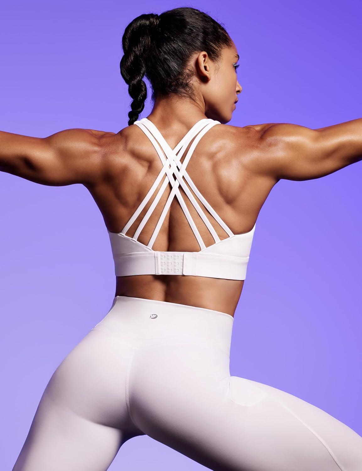 IUGA Sports Bras for Women High Support Large Bust High Impact Womens Sports Bras Strappy Padded Sports Bra(White)