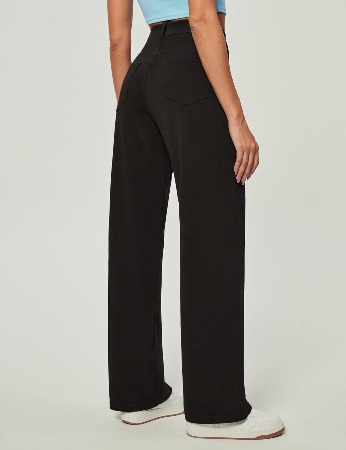 IUGA Wide Leg Jeans Woman Stretchy Pull On Baggy Jeans High Waisted Trendy Womens Jeans Straight Casual Denim Pants(Black 31″ Inseam)