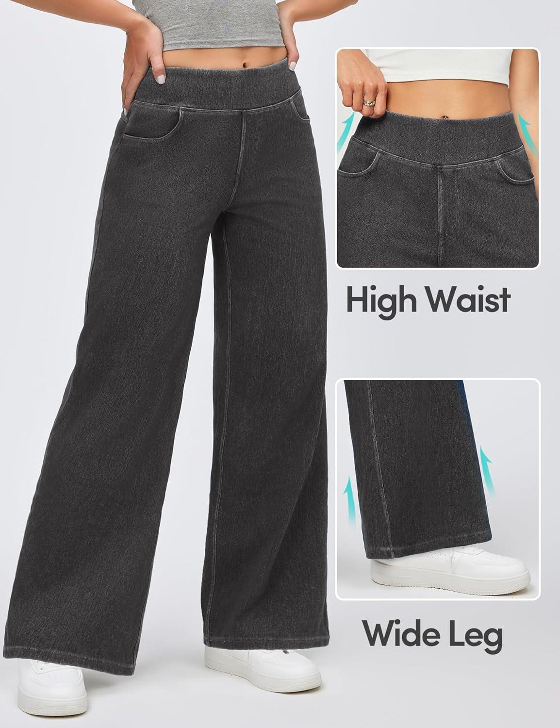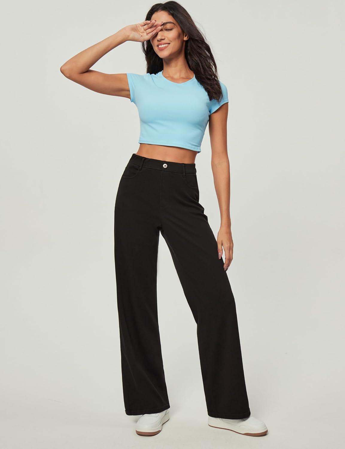 IUGA Wide Leg Jeans Woman Stretchy Pull On Baggy Jeans High Waisted Trendy Womens Jeans Straight Casual Denim Pants(Black 29″ Inseam)