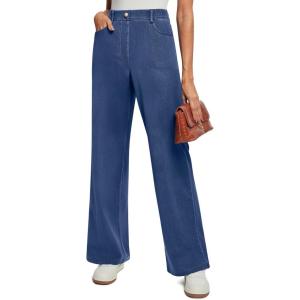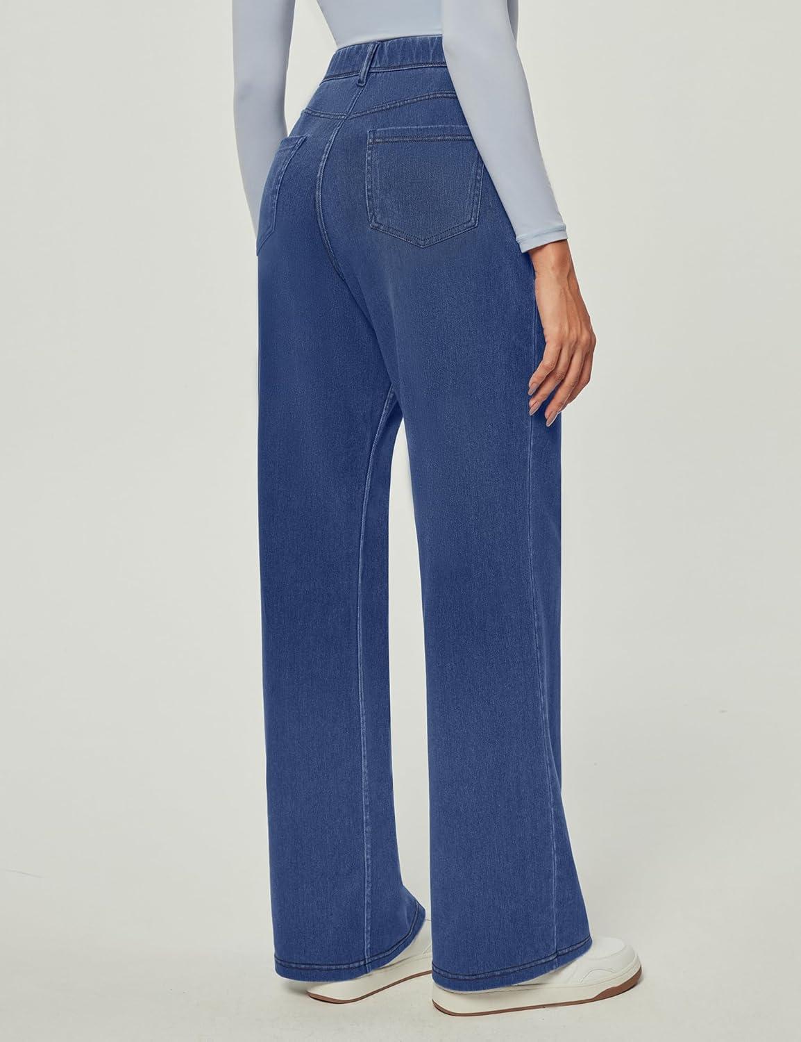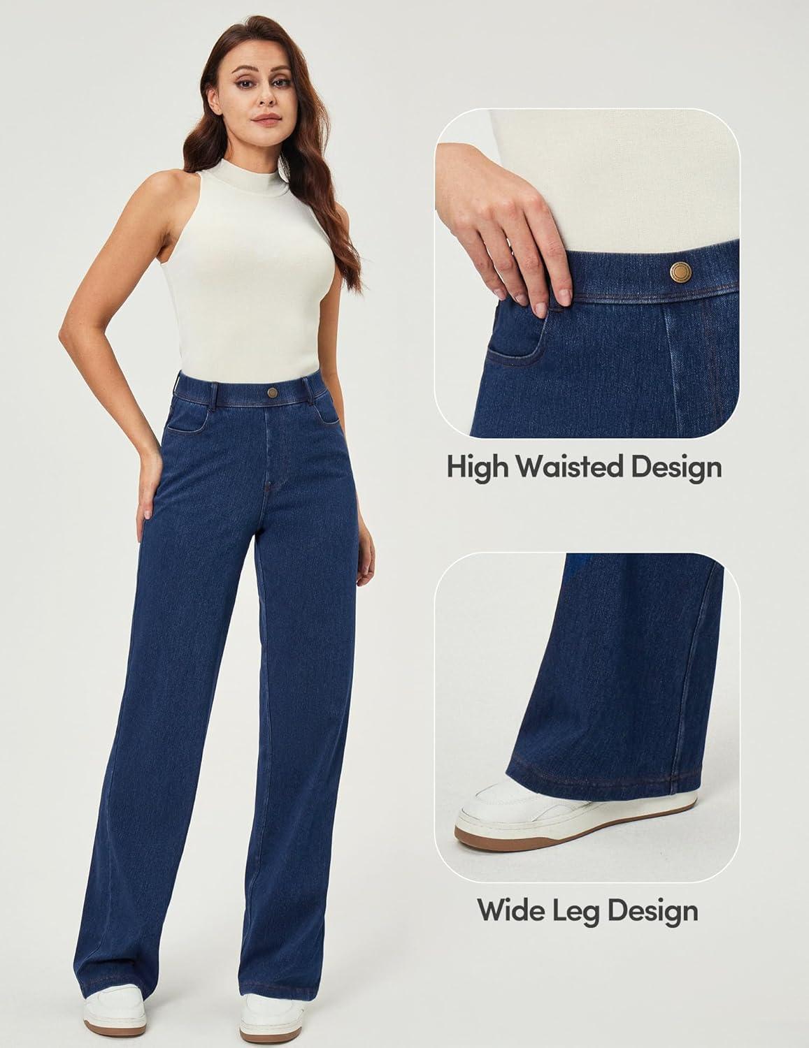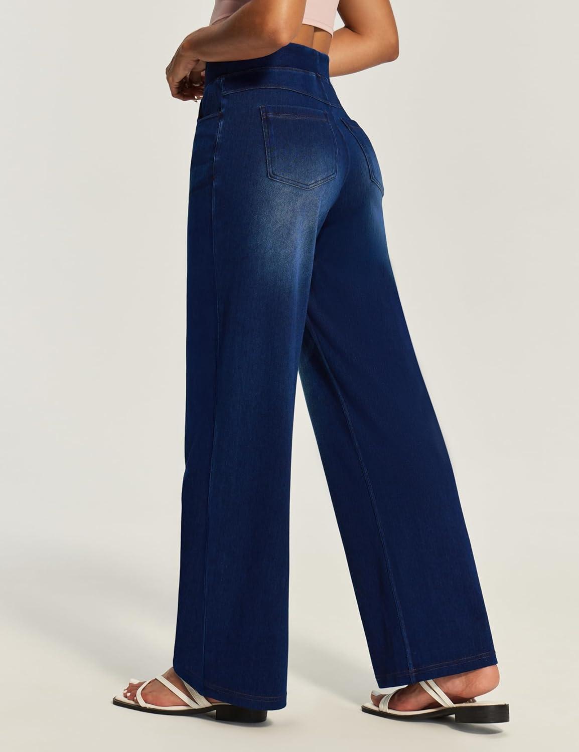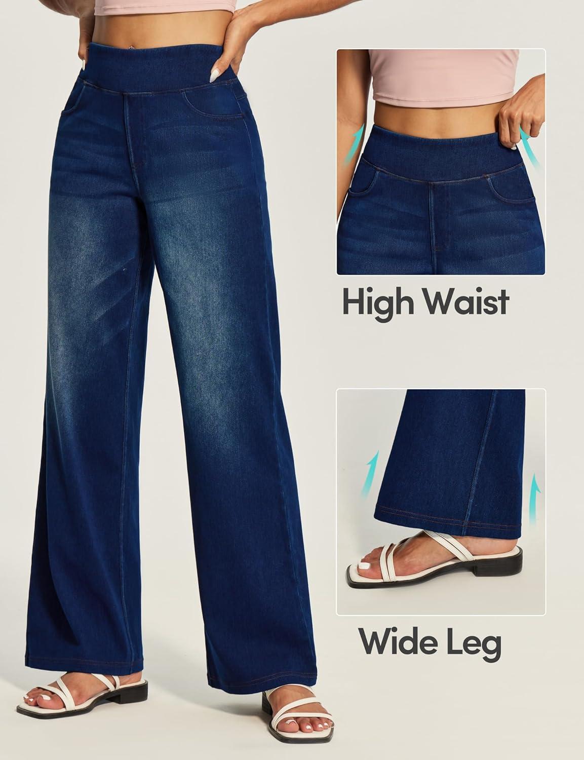 IUGA Wide Leg Jeans Woman High Waisted Pull On Baggy Jeans for Women Stretchy Trendy Womens Jean Straight Casual Denim Pants(Dark Blue)