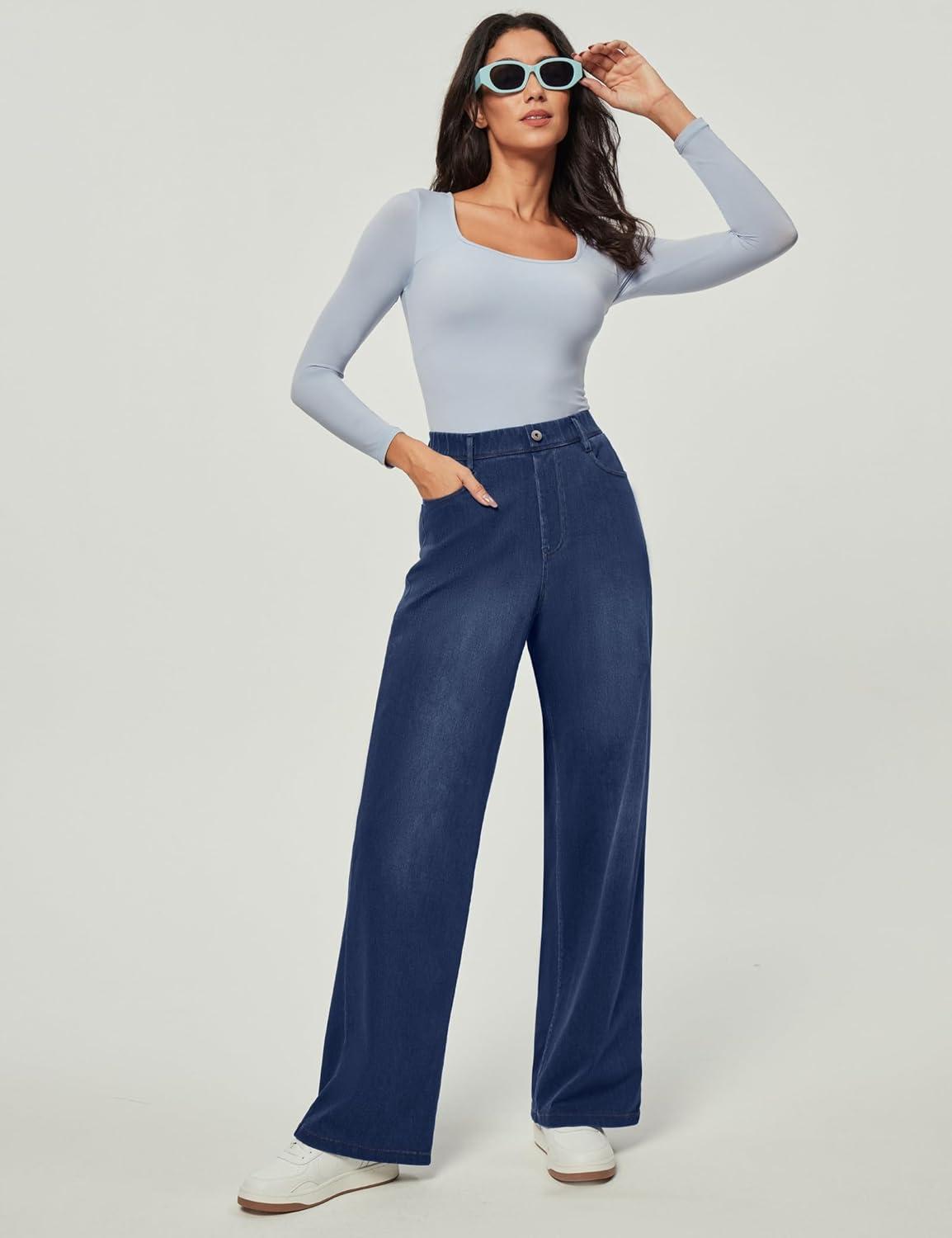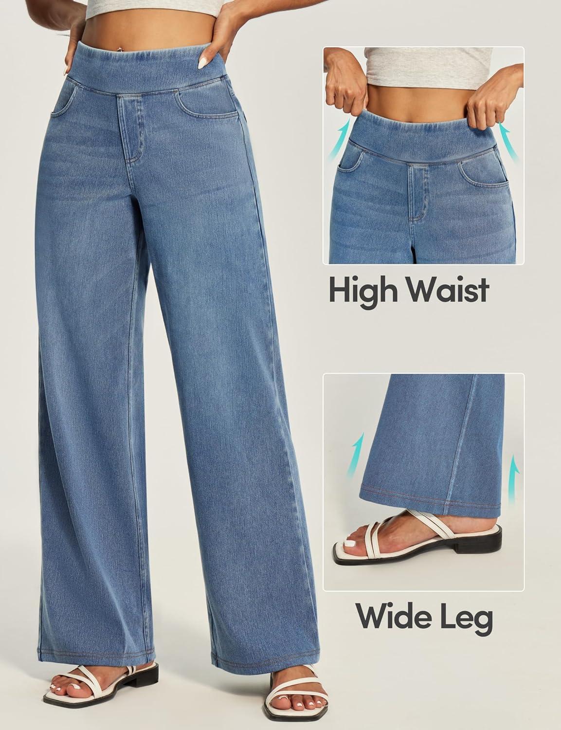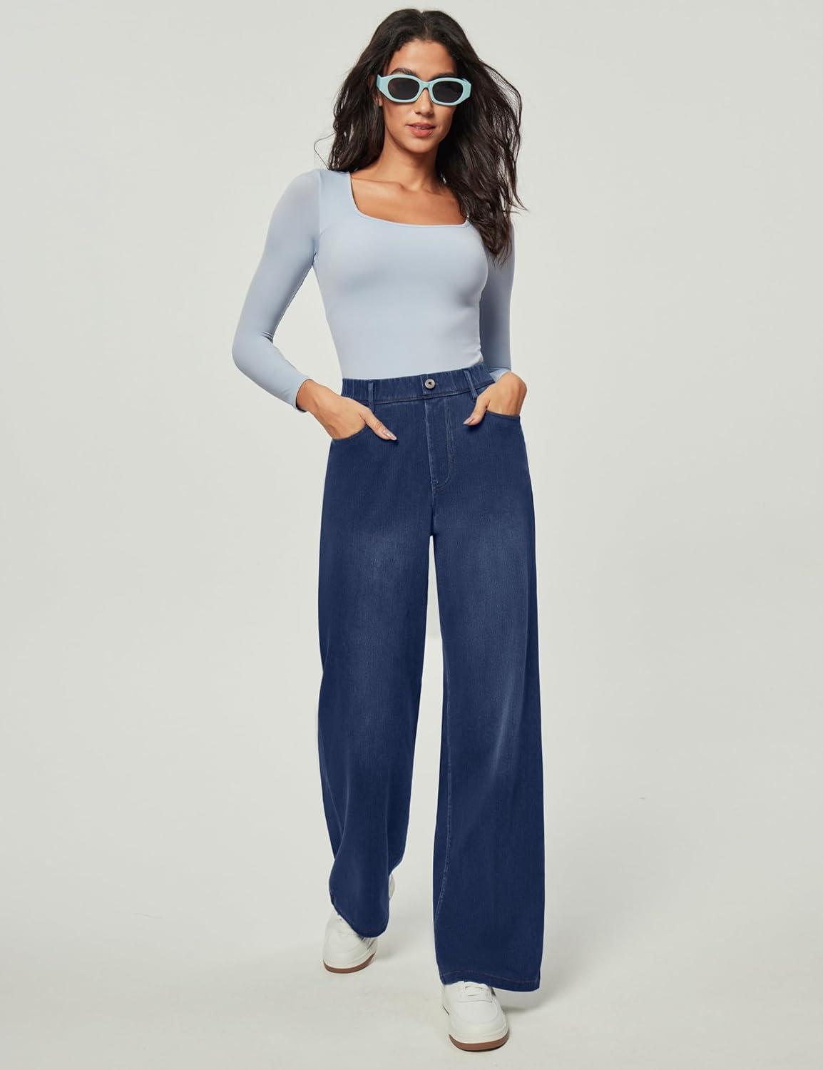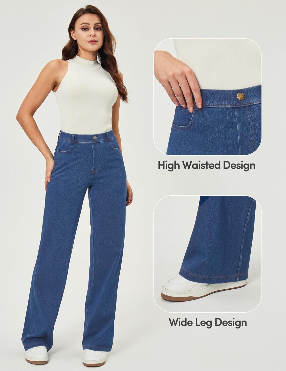 IUGA Wide Leg Jeans Woman Stretchy Pull On Baggy Jeans High Waisted Trendy Womens Jeans Straight Casual Denim Pants(Iceland Blue 31″ Inseam)