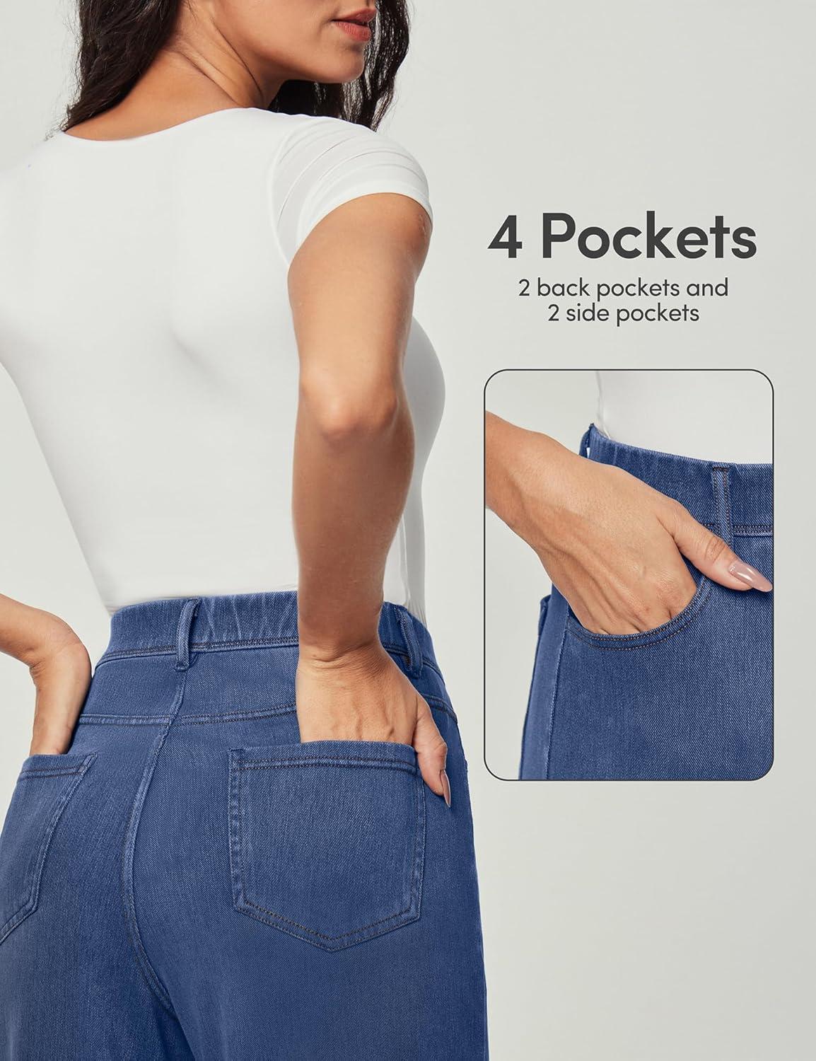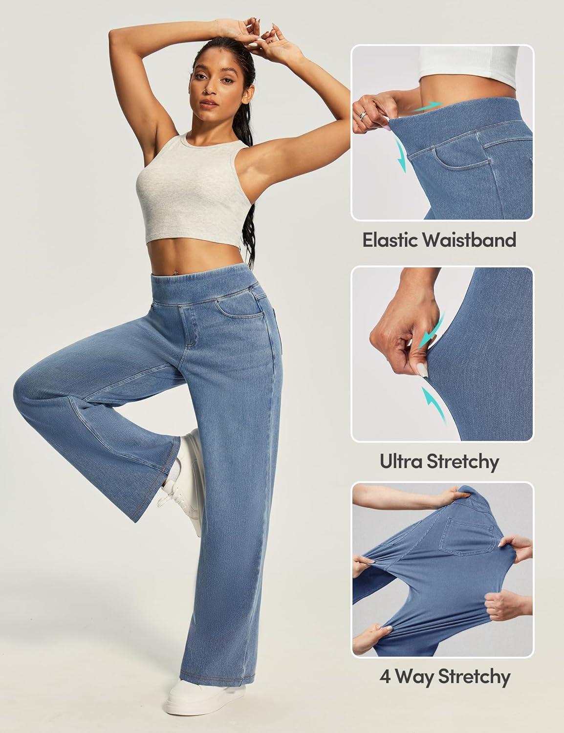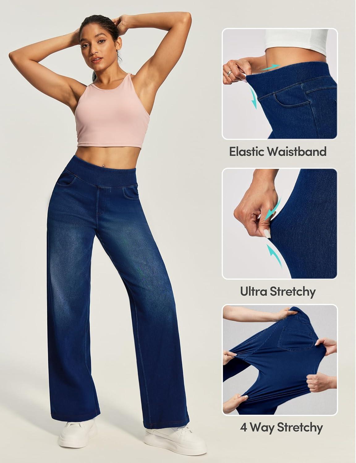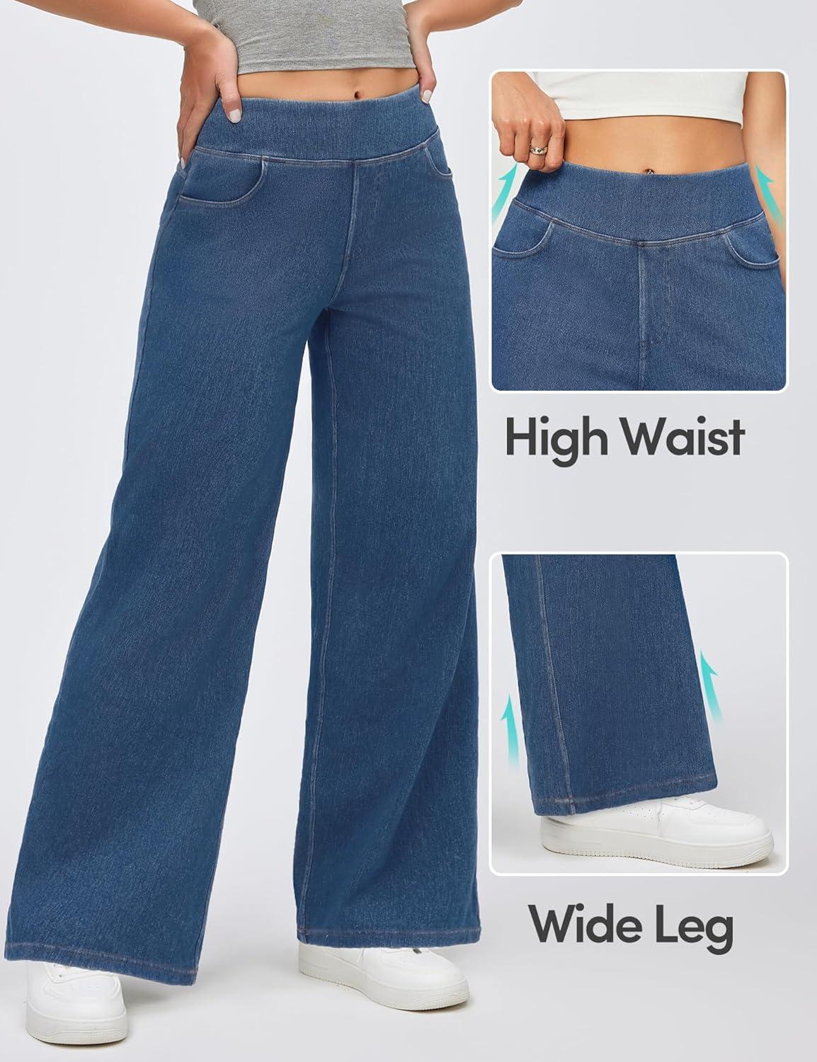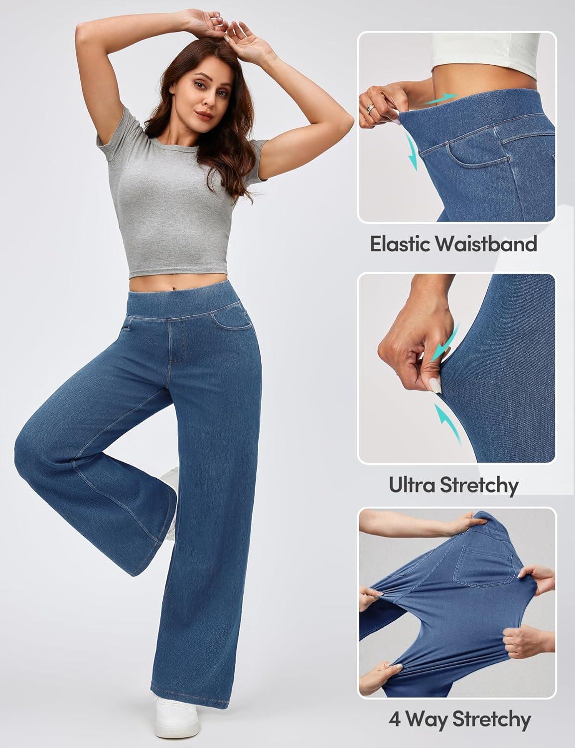 IUGA Wide Leg Jeans Woman Stretchy Pull On Baggy Jeans High Waisted Trendy Womens Jeans Straight Casual Denim Pants(Iceland Blue 31″ Inseam)