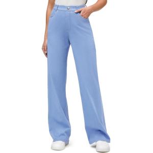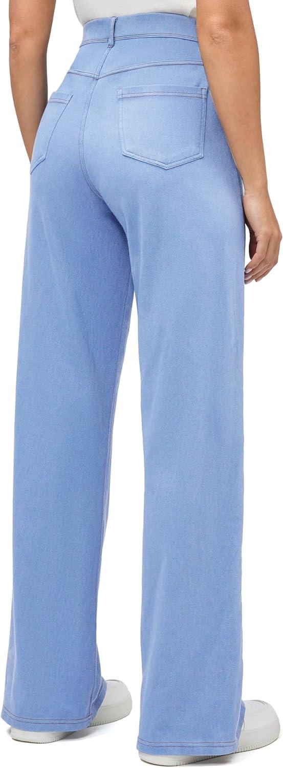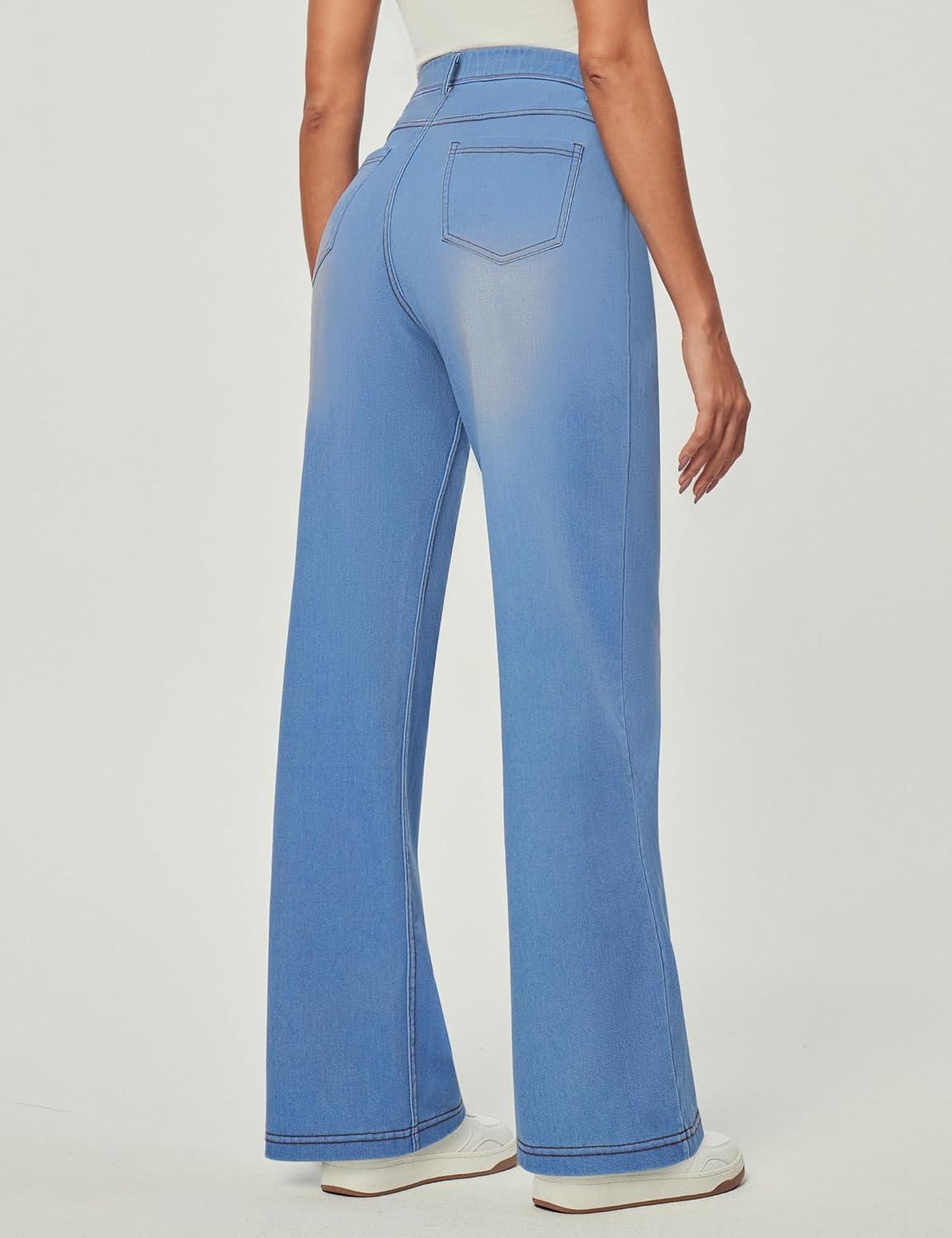 IUGA Wide Leg Jeans Woman High Waisted Pull On Baggy Jeans for Women Stretchy Trendy Womens Jean Straight Casual Denim Pants(Light Blue)