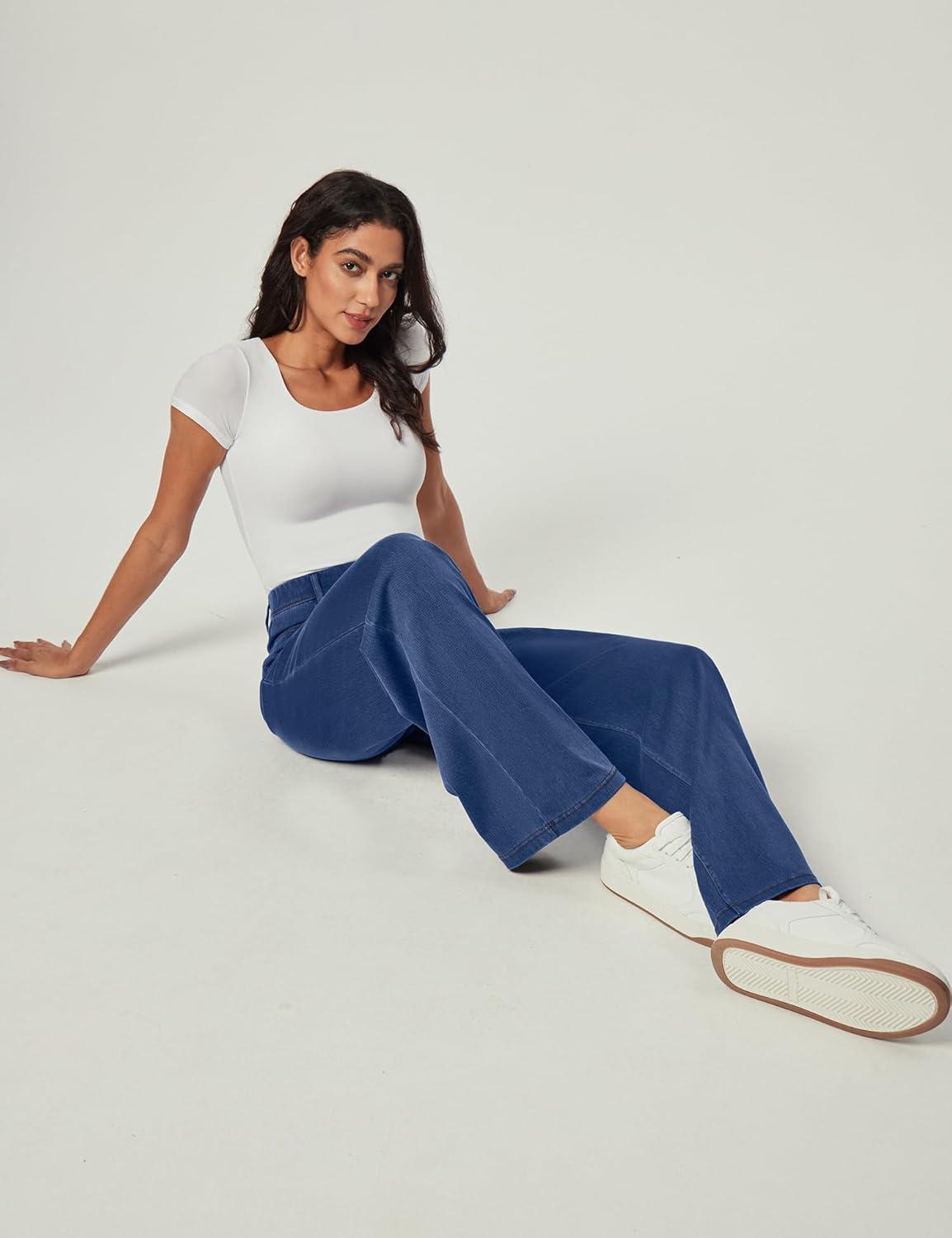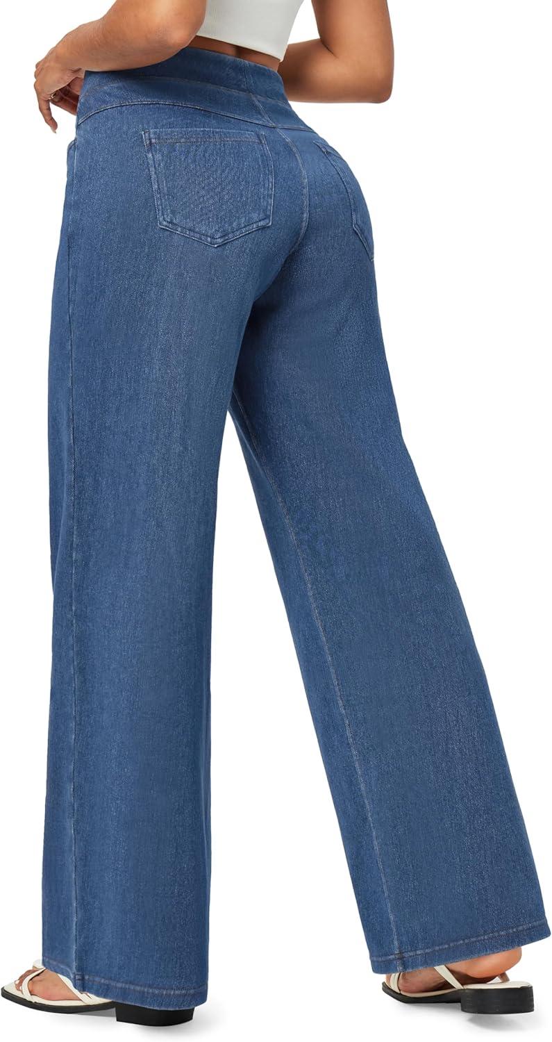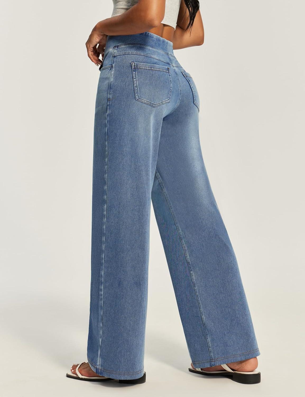 IUGA Wide Leg Jeans Woman Stretchy Pull On Baggy Jeans High Waisted Trendy Womens Jeans Straight Casual Denim Pants(Washed Blue 31″ Inseam)