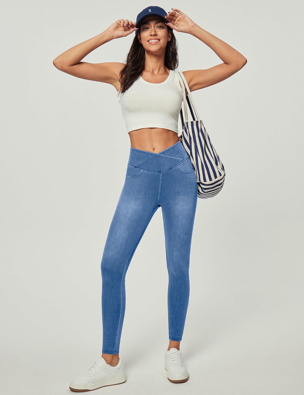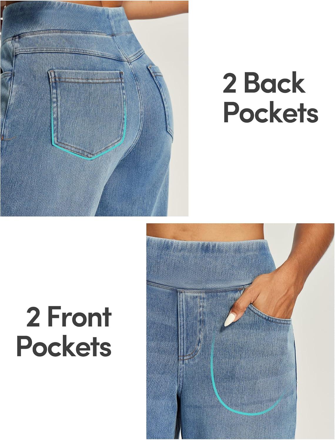 IUGA Women Jeans High Waisted Stretchy Jeans Jeggings for Women Pull on Skinny Jean with Pockets Trendy(Light Blue)