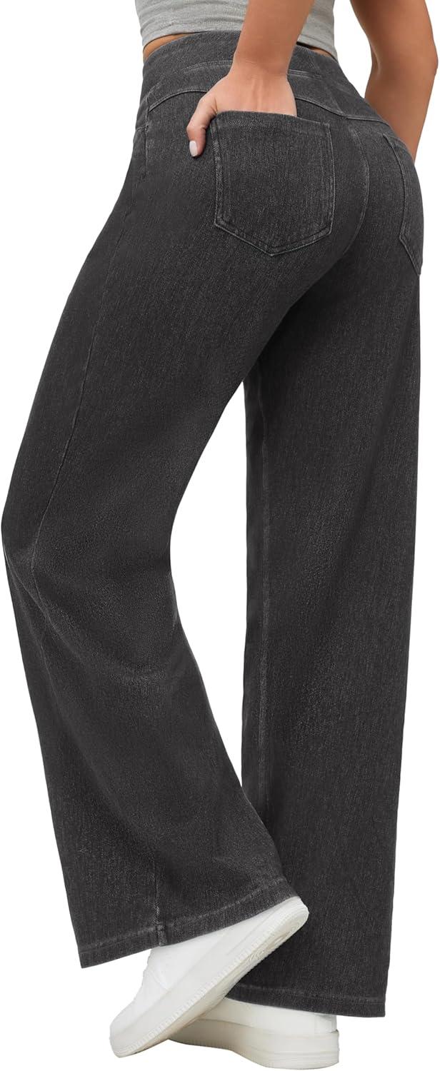 IUGA Wide Leg Jeans Woman High Waisted Pull On Baggy Jeans for Women Stretchy Trendy Womens Jean Straight Casual Denim Pants(Gray)