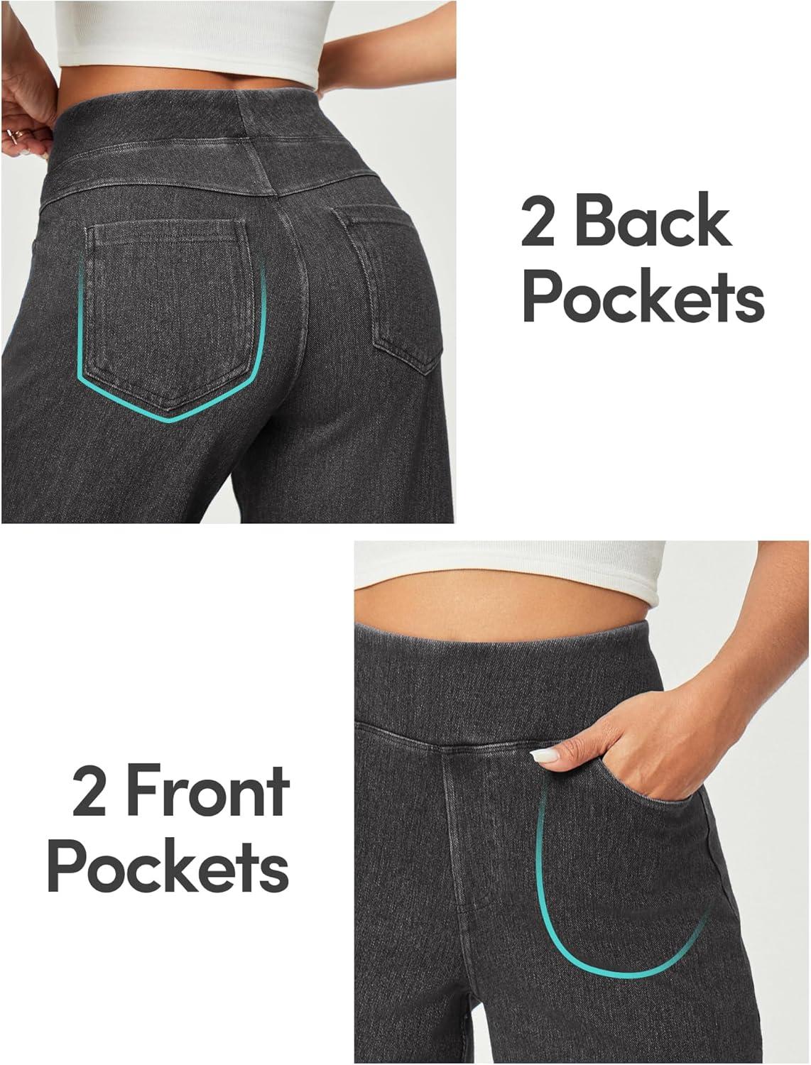 IUGA Women Jeans High Waisted Stretchy Jeans Jeggings for Women Pull on Skinny Jean with Pockets Trendy(Black)