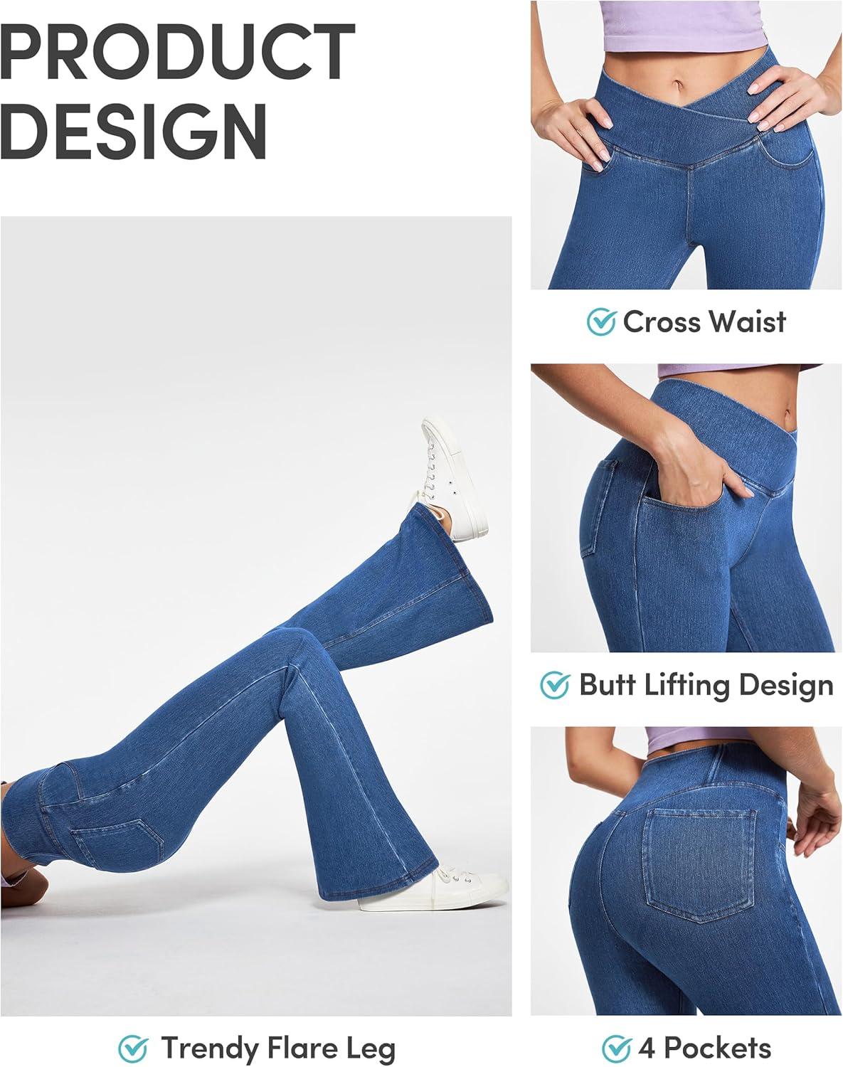 Discover the latest IUGA High Waisted Bell Bottom Jeans for Women Flare Stretchy Jeans Pull On Wide Leg Jean Woman V Cross Flare Leggings Pants(Stormy Blue) from and take advantage of our limited-time introductory offer.