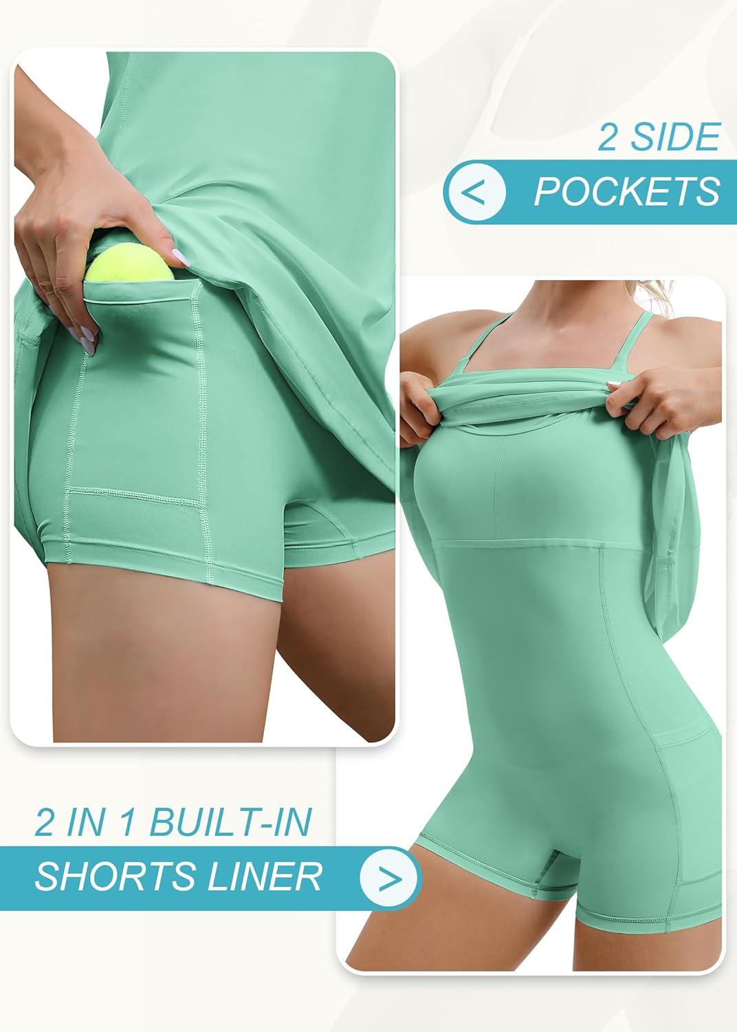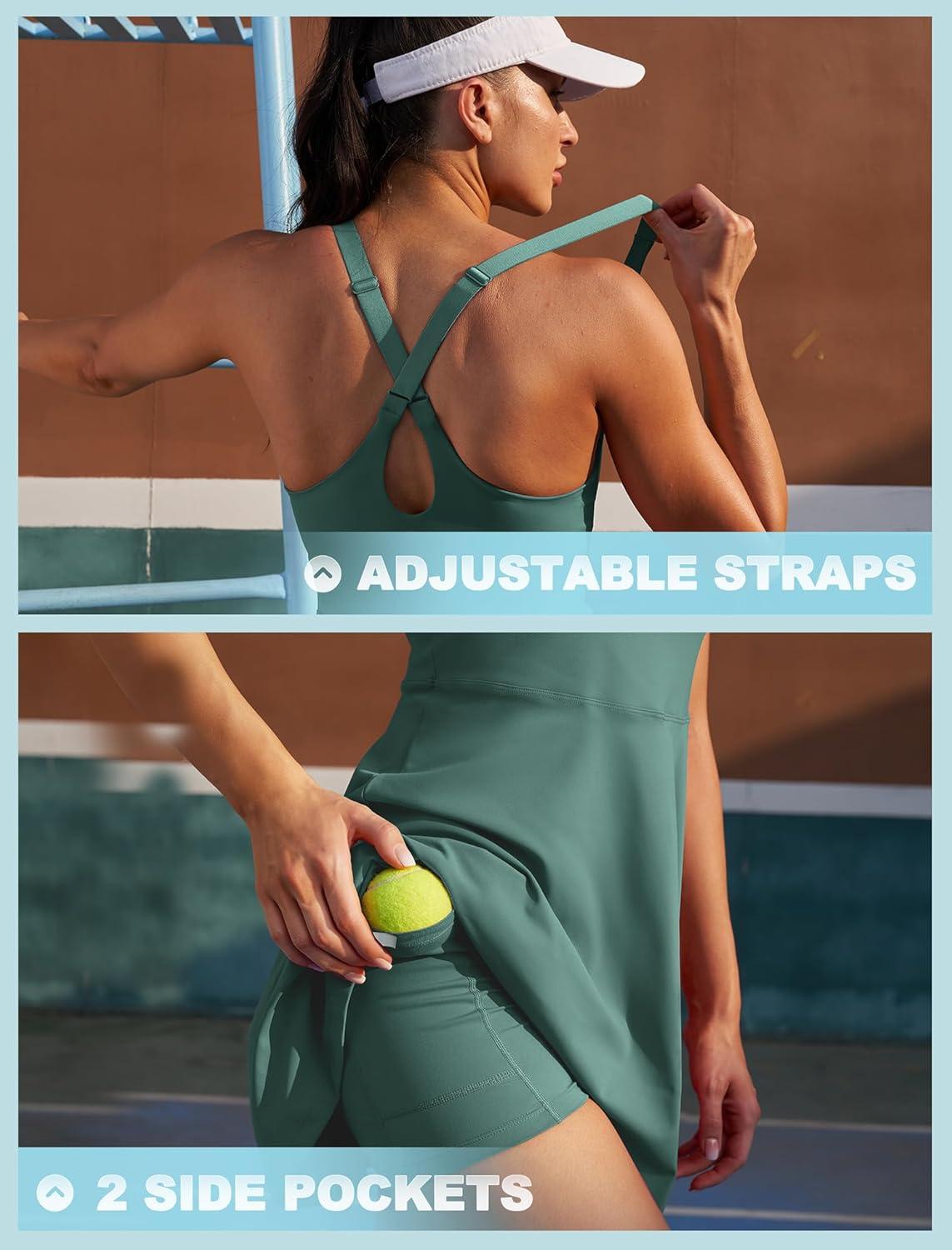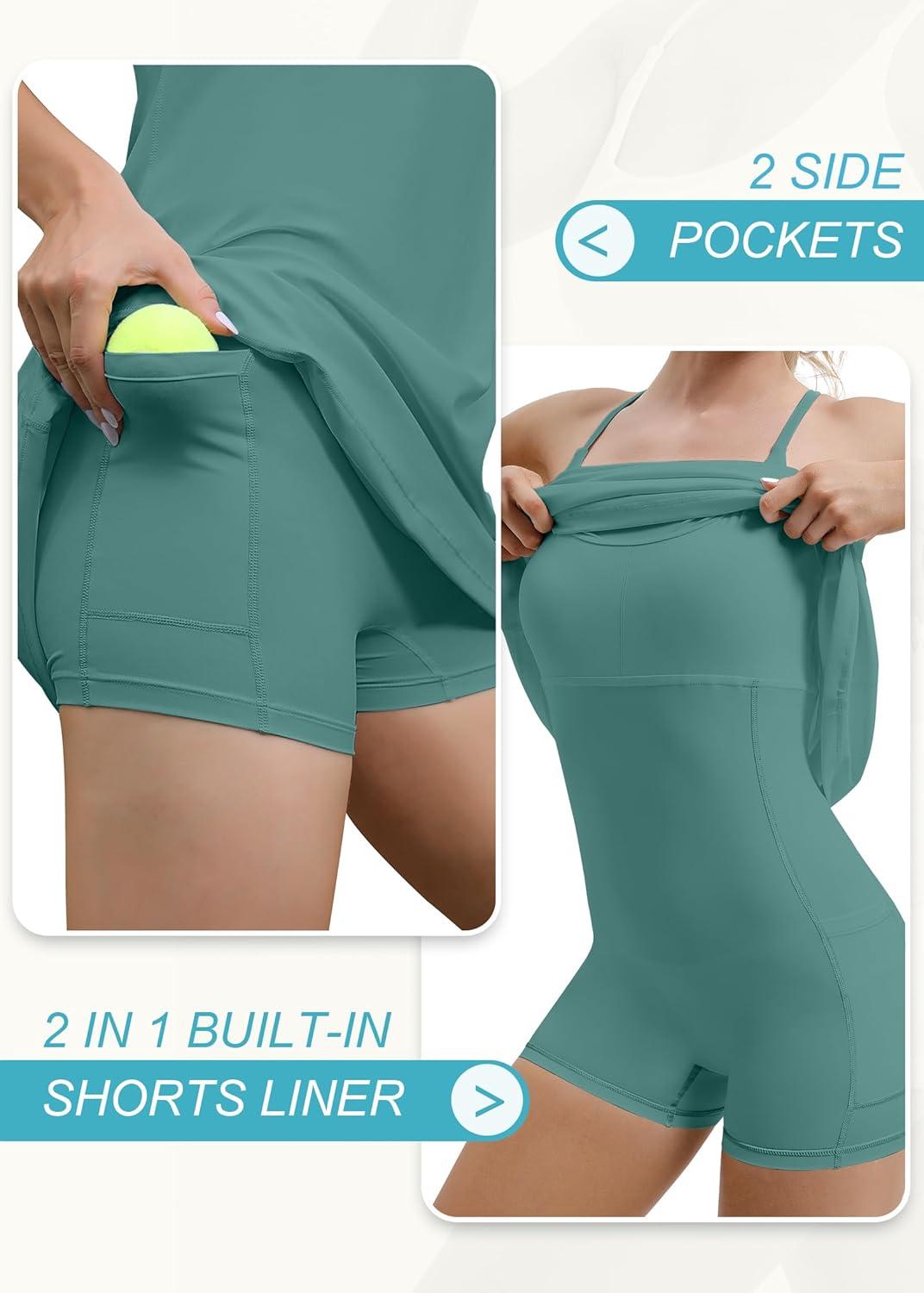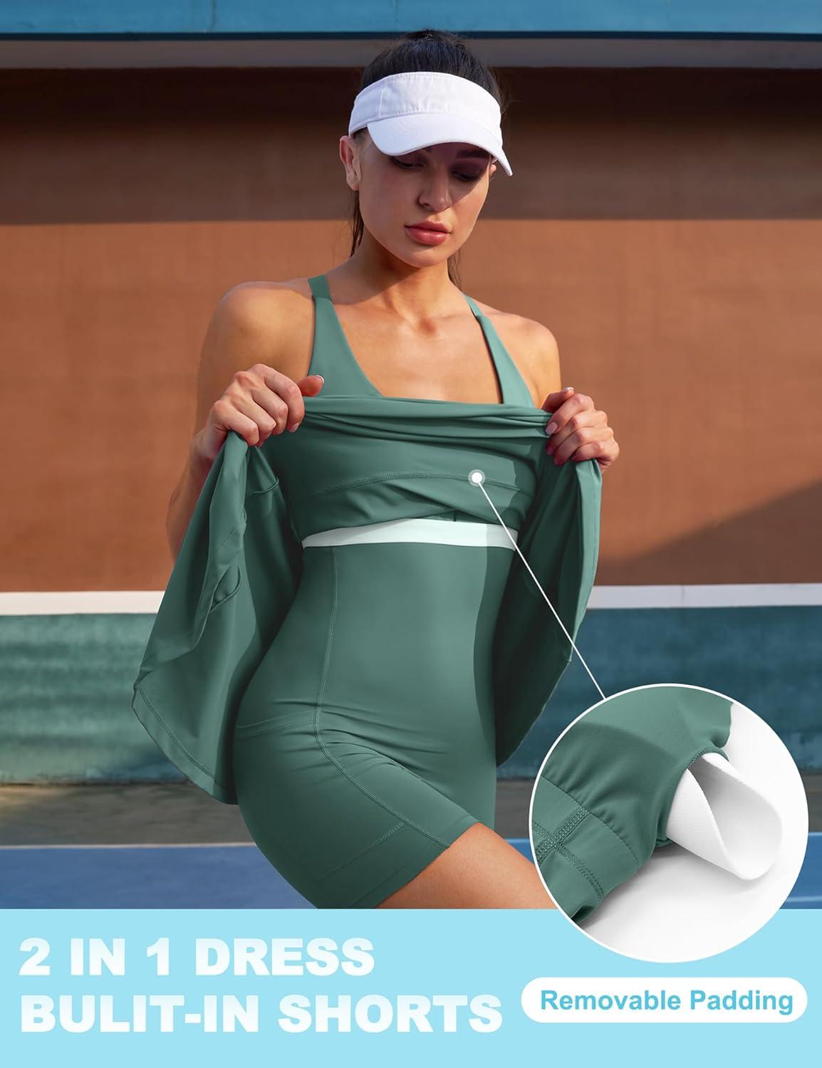 IUGA Tennis Dress for Women Athletic Golf Workout Dress with Built-in Shorts and Bra, Adjustable Straps & Pockets(Olive Green)