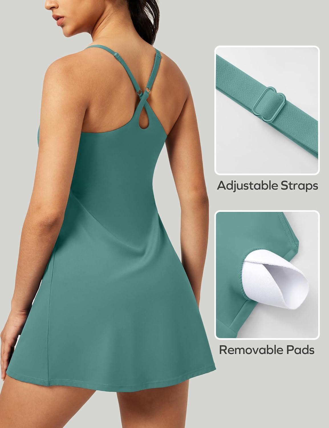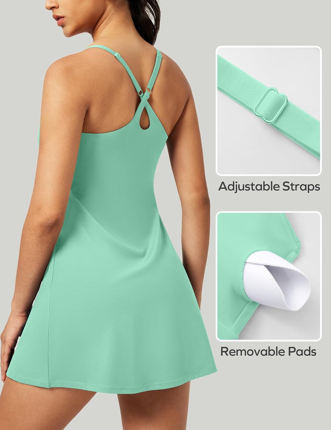 IUGA Tennis Dress for Women Athletic Golf Workout Dress with Built-in Shorts and Bra, Adjustable Straps & Pockets(Aqua)