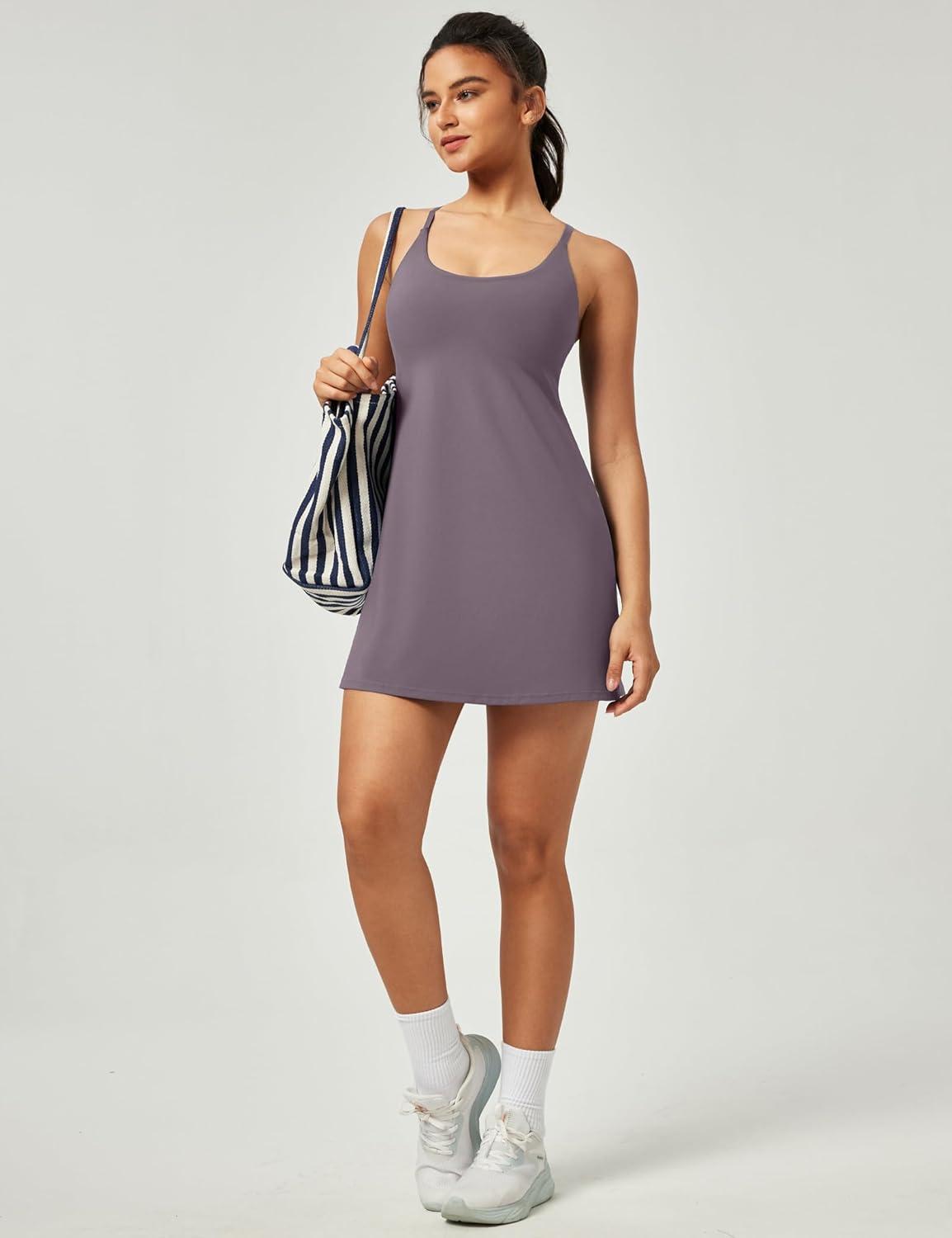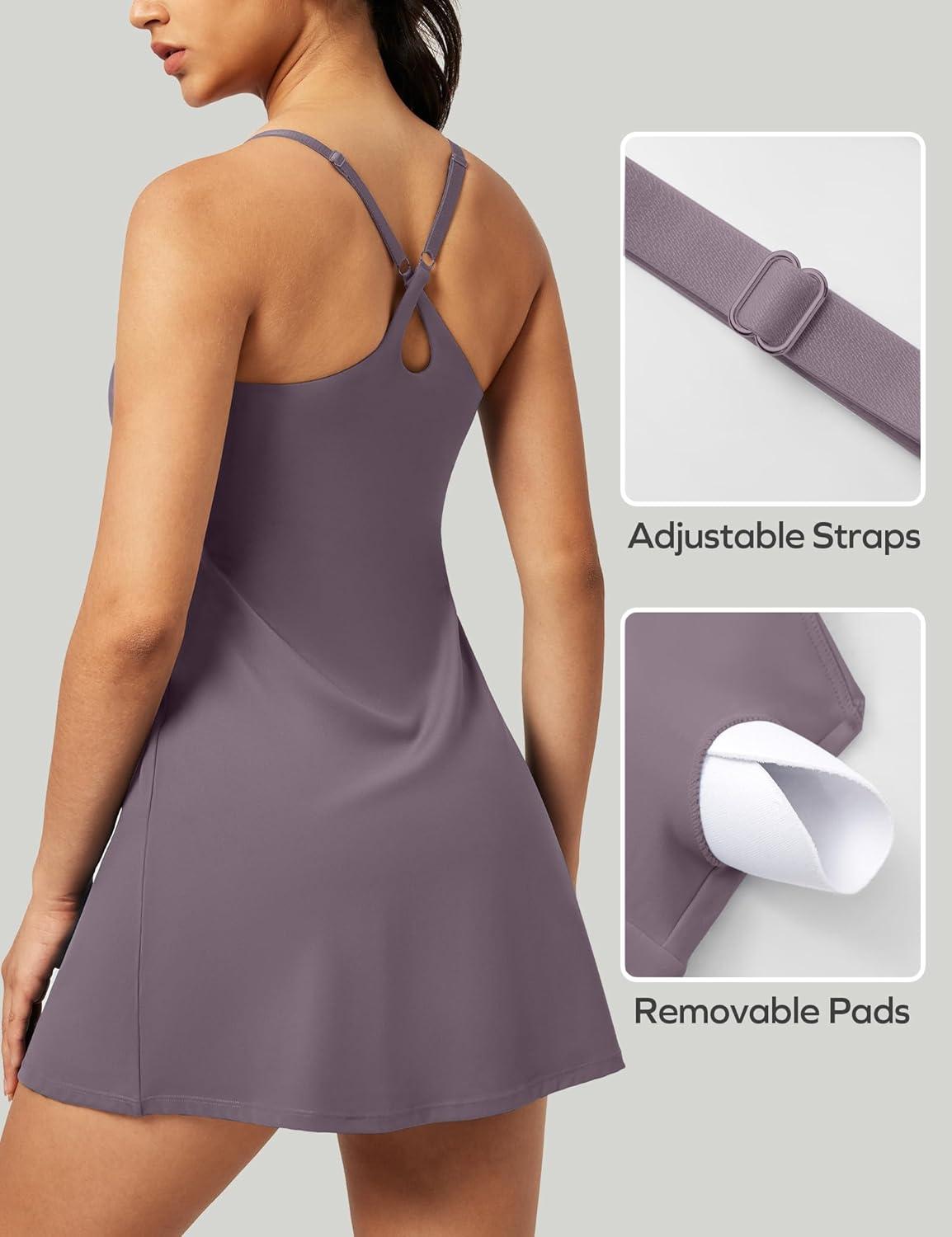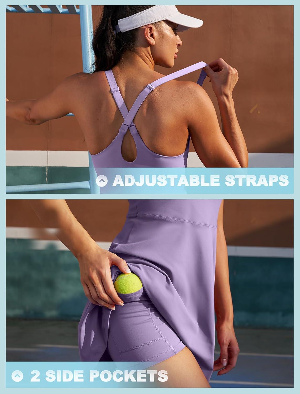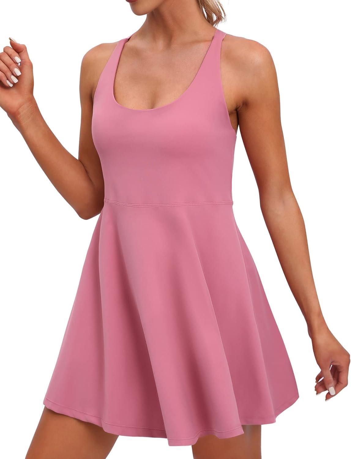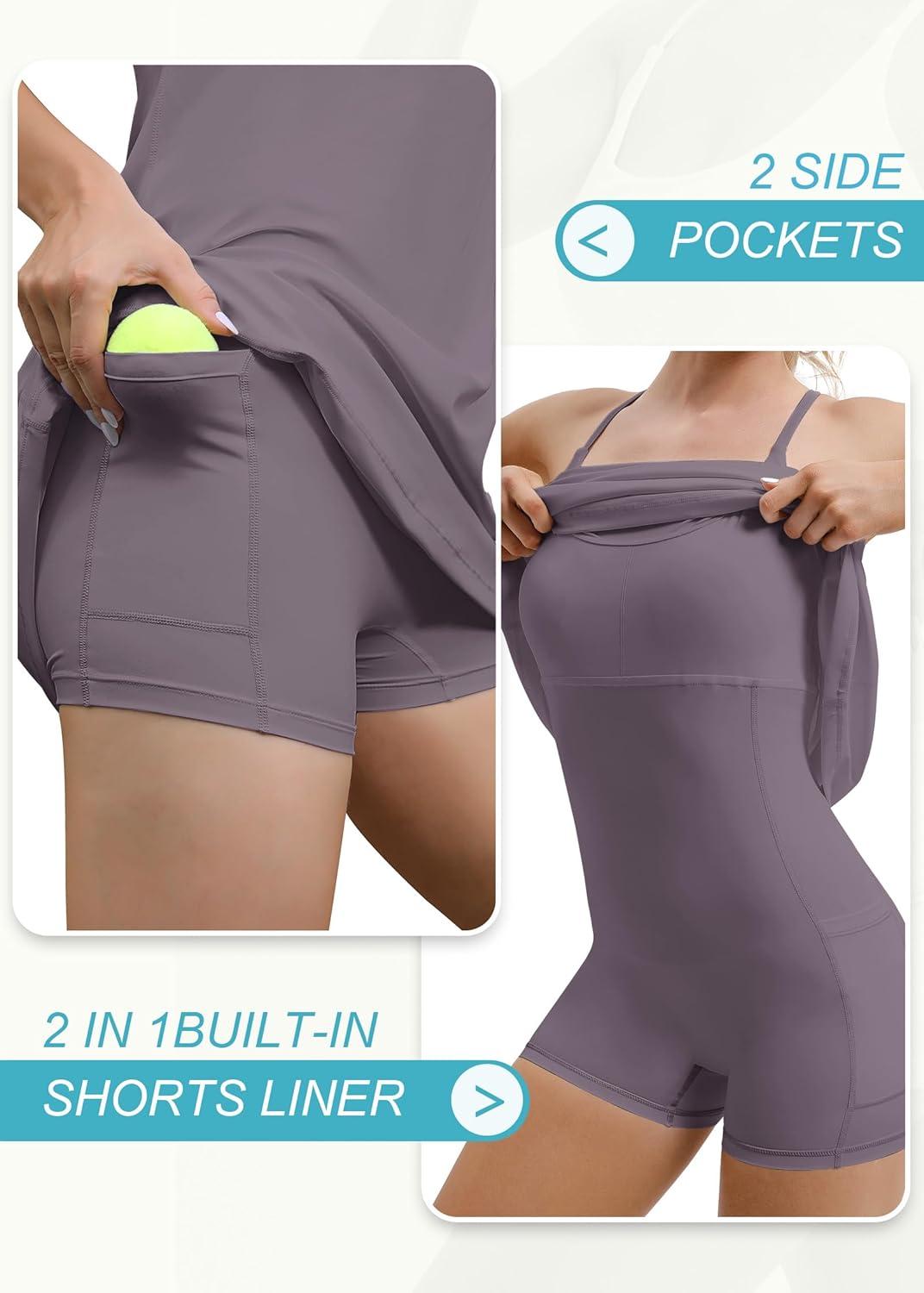 IUGA Tennis Dress for Women Athletic Golf Workout Dress with Built-in Shorts and Bra, Adjustable Straps & Pockets(Mauve)