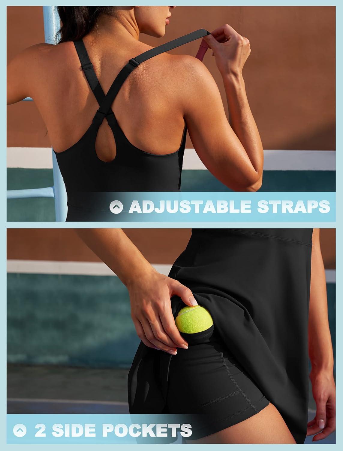 IUGA Tennis Dress for Women Athletic Golf Workout Dress with Built-in Shorts and Bra, Adjustable Straps & Pockets(Black)