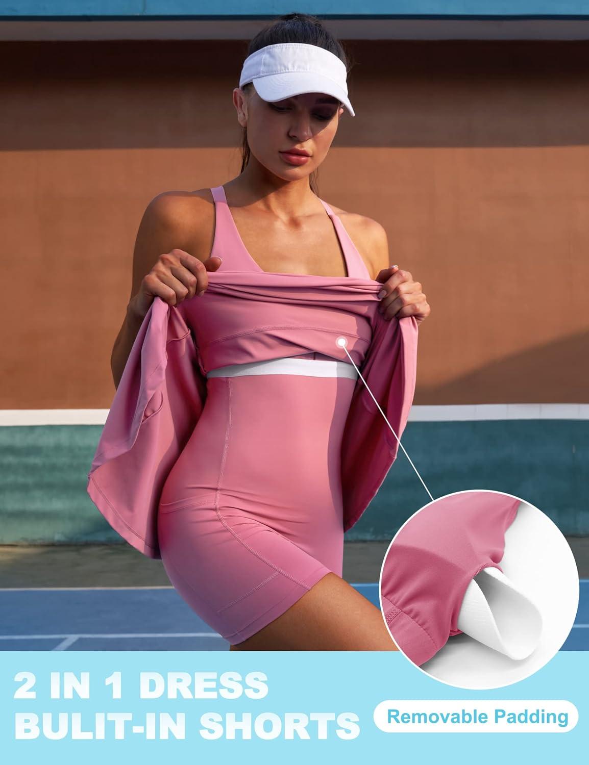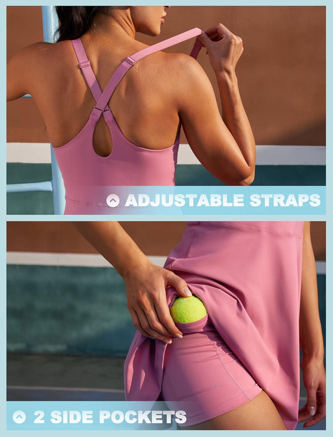IUGA Tennis Dress for Women Athletic Golf Workout Dress with Built-in Shorts and Bra, Adjustable Straps & Pockets(Flamingo)
