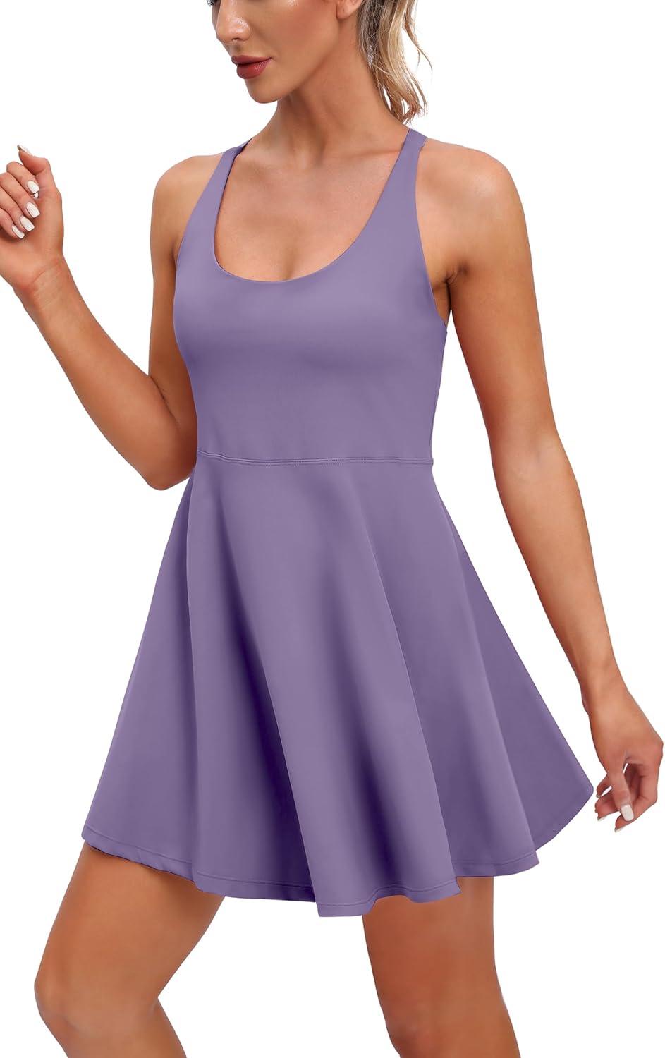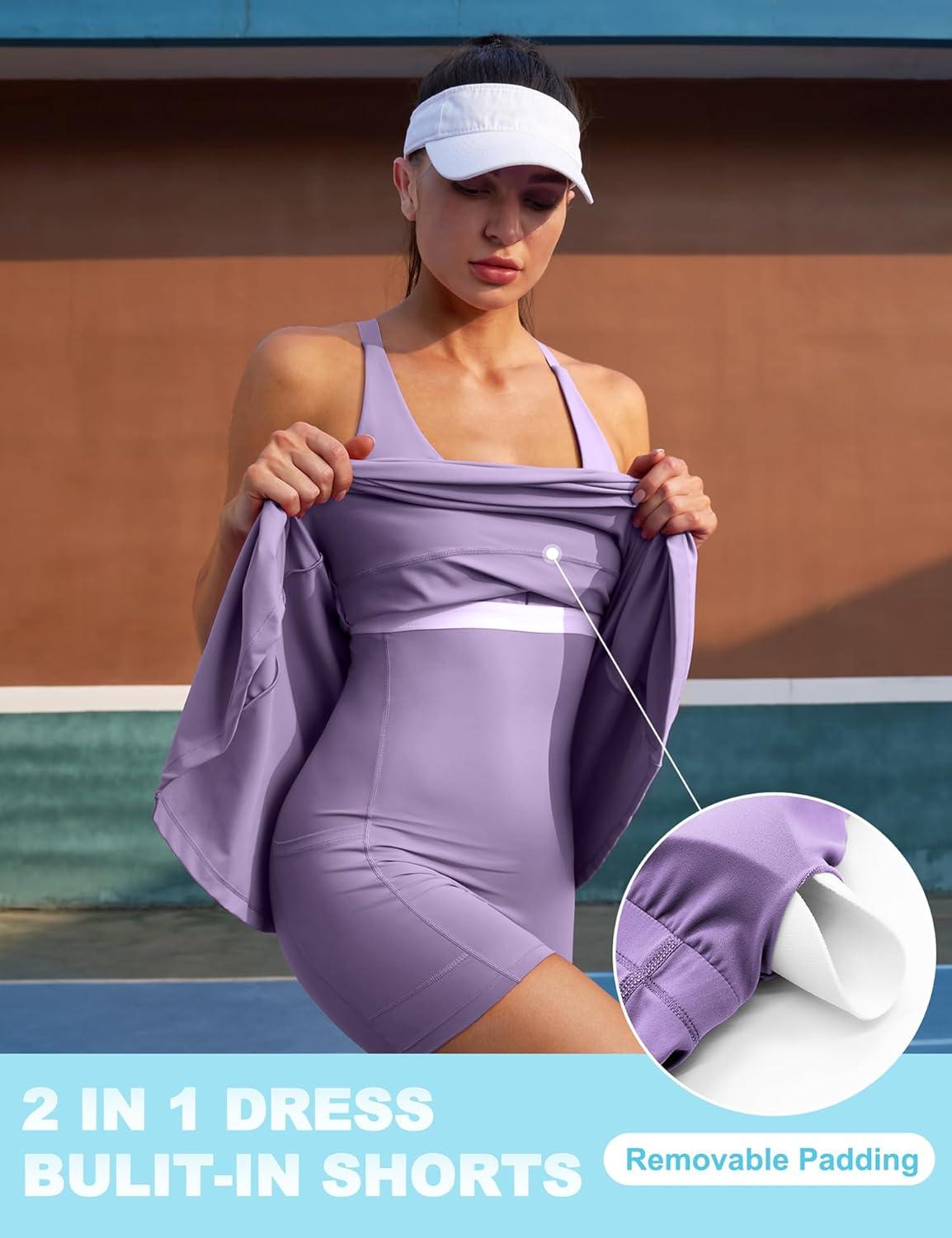IUGA Womens Tennis Dress with Shorts Underneath Athletic Dress for Women Golf Dresses Summer Outfits for Workout(Lavender)