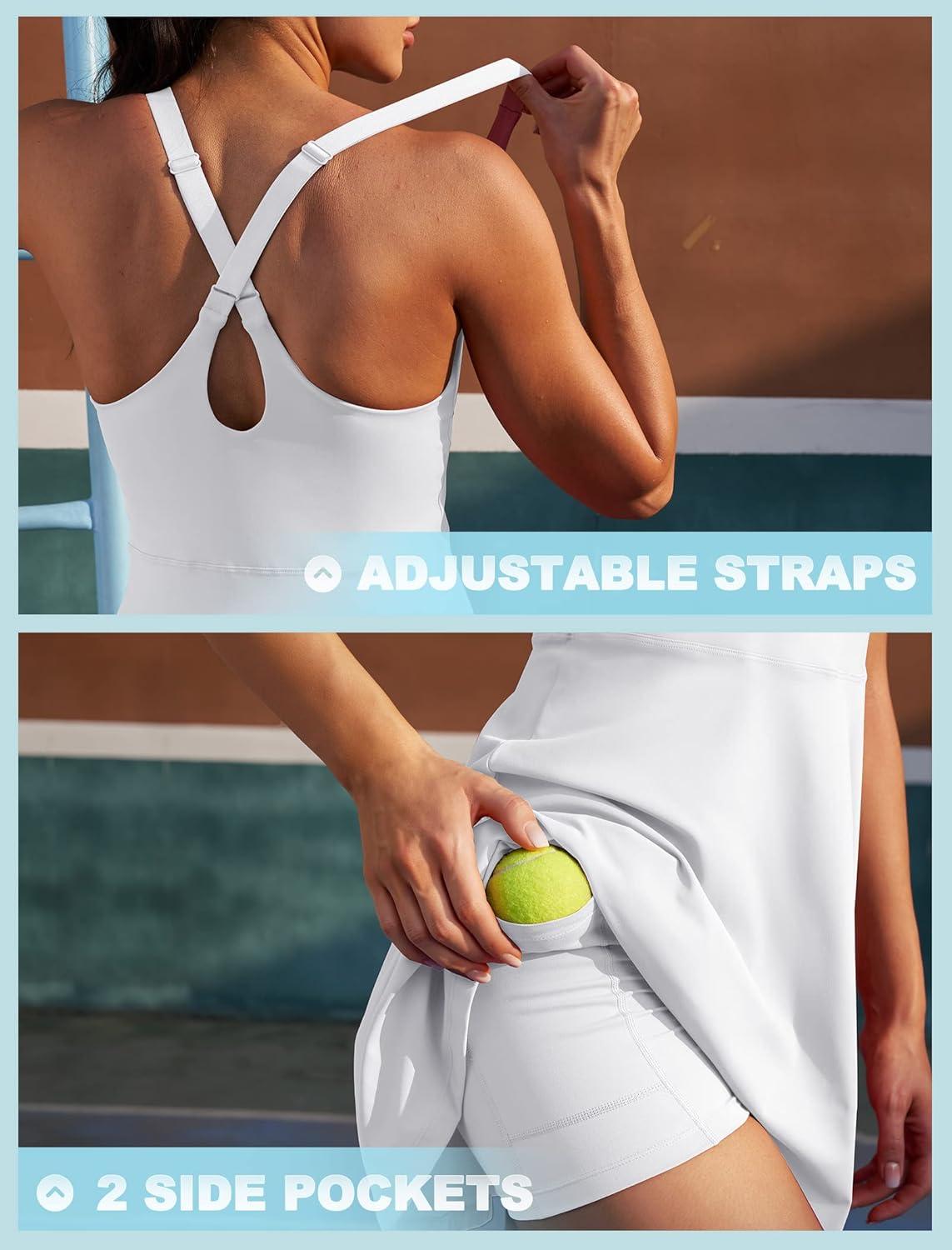 IUGA Womens Tennis Dress with Shorts Underneath Athletic Dress for Women Golf Dresses Summer Outfits for Workout(White)
