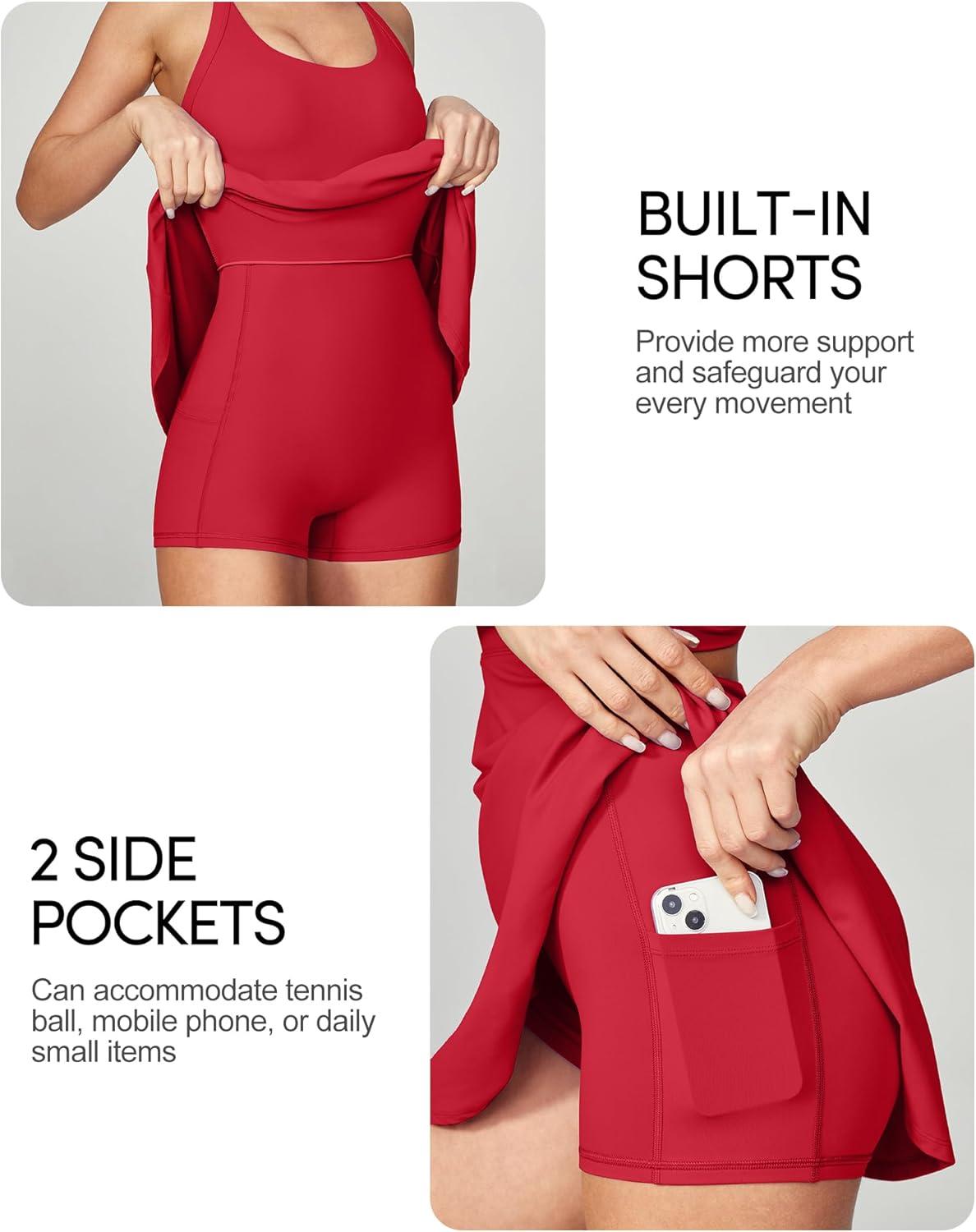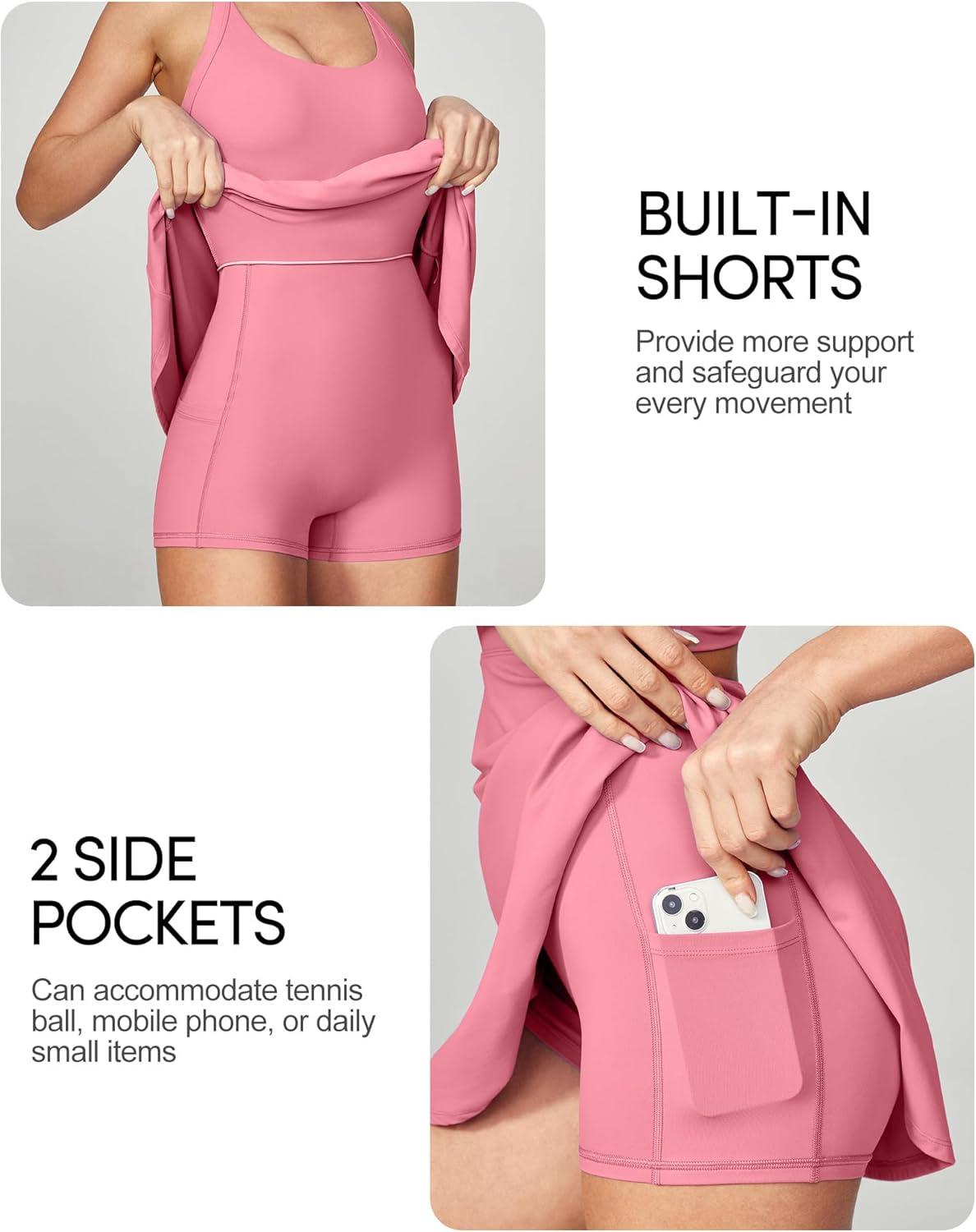 IUGA Womens Tennis Dress with Shorts Underneath Athletic Dress for Women Golf Dresses Summer Outfits for Workout(Coral)