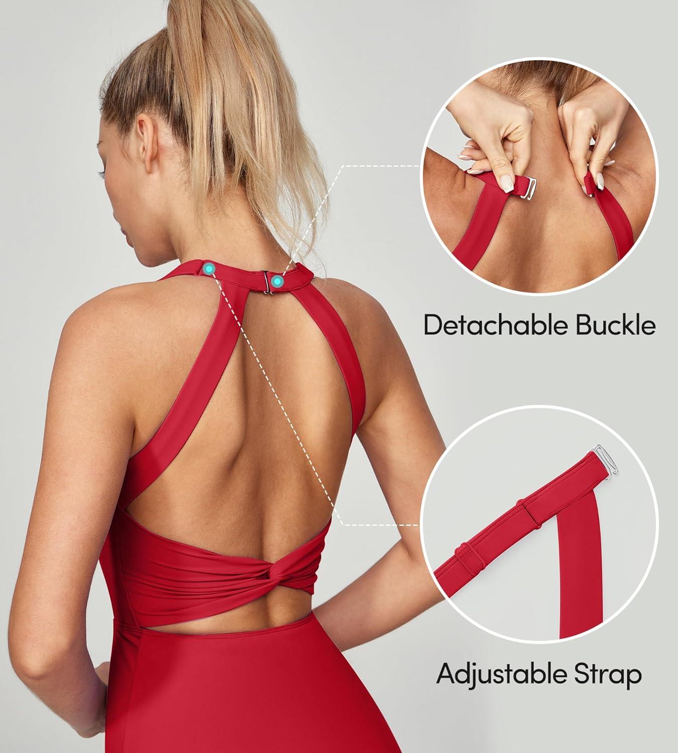 IUGA Womens Tennis Dress with Built in Shorts & Bra Athletic Dress for Women Cut Out Twisted Golf Workout Dress with Pockets(Bright Red)