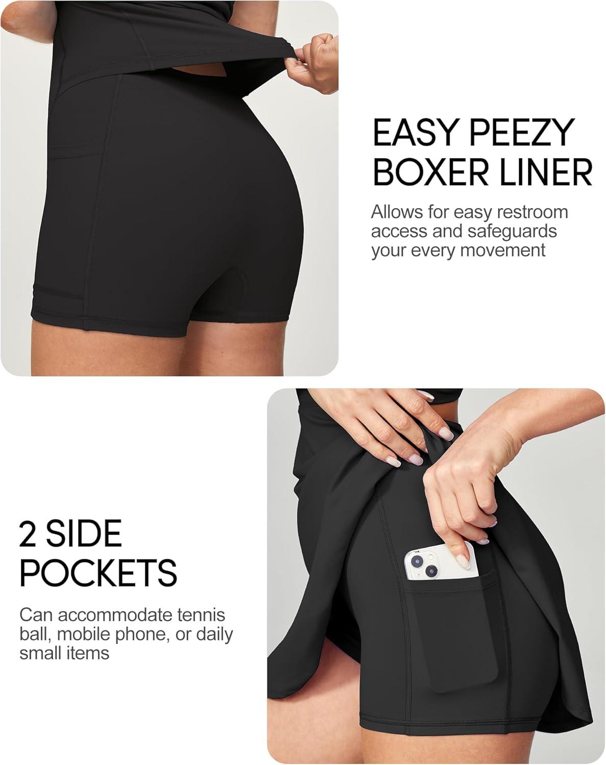 IUGA Womens Tennis Dress with Shorts Underneath Athletic Dress for Women Golf Dresses Summer Outfits for Workout(Black)