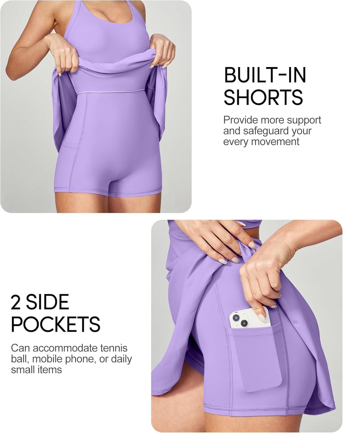 IUGA Womens Tennis Dress with Shorts Underneath Athletic Dress for Women Golf Dresses Summer Outfits for Workout(Lavender)