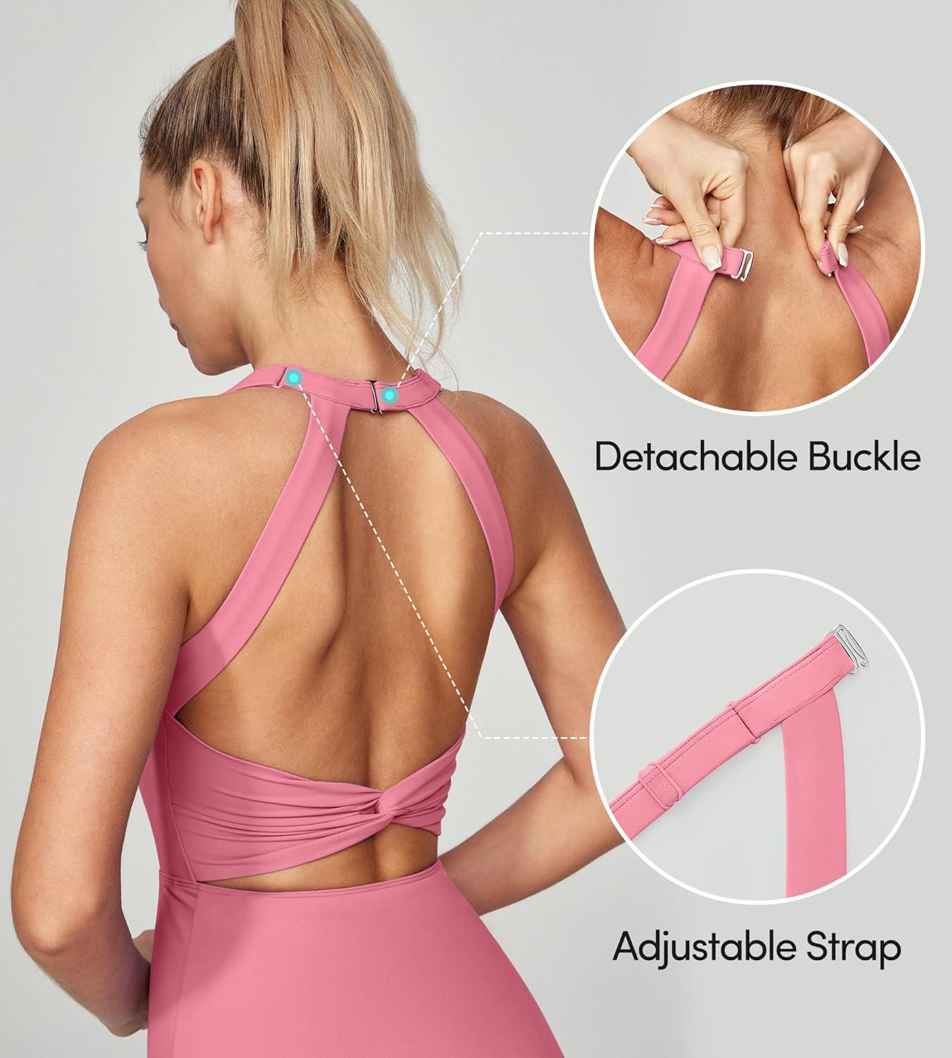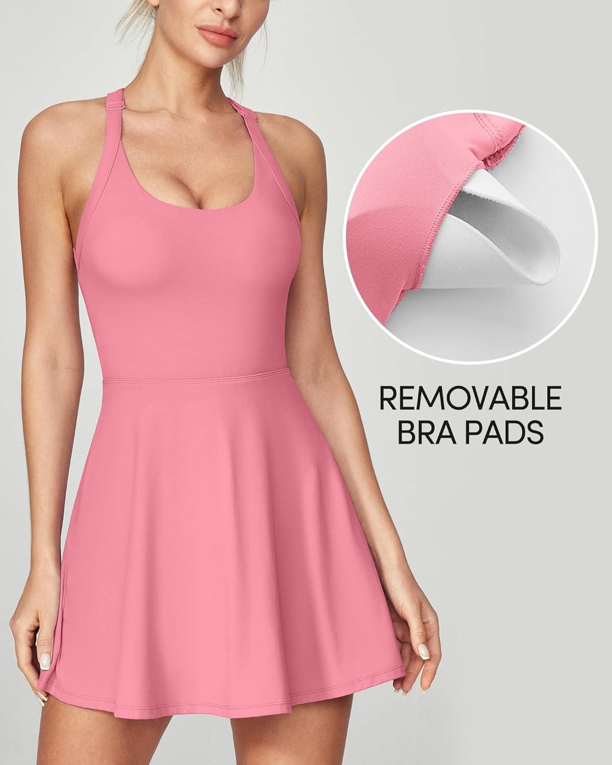 IUGA Womens Tennis Dress with Built in Shorts & Bra Athletic Dress for Women Cut Out Twisted Golf Workout Dress with Pockets(Pink)