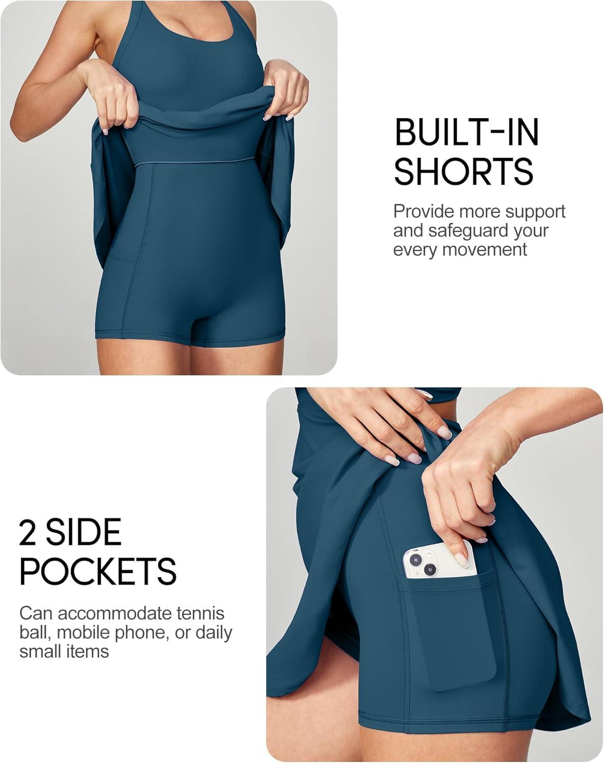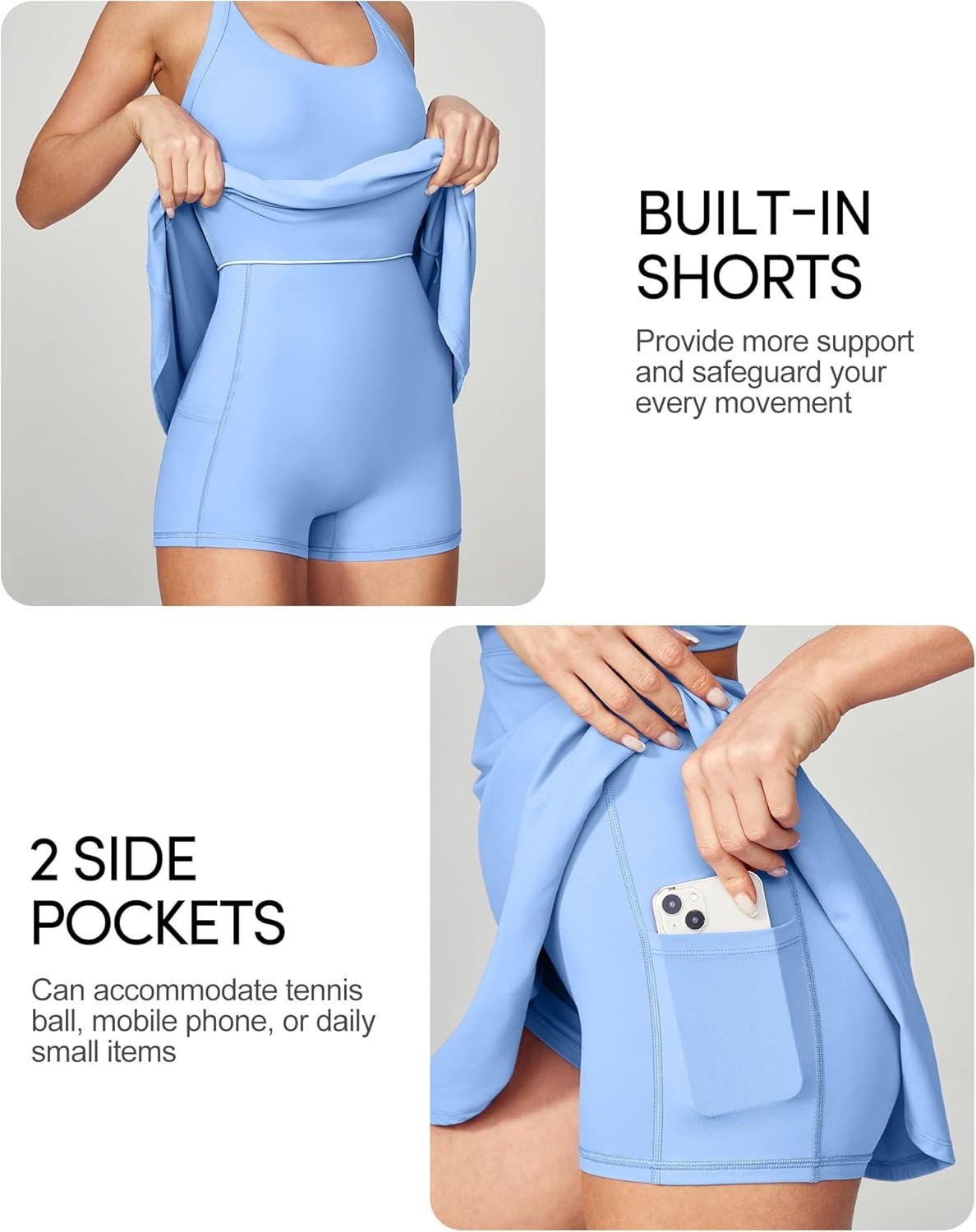 IUGA Womens Tennis Dress with Shorts Underneath Athletic Dress for Women Golf Dresses Summer Outfits for Workout(Aqua Blue)