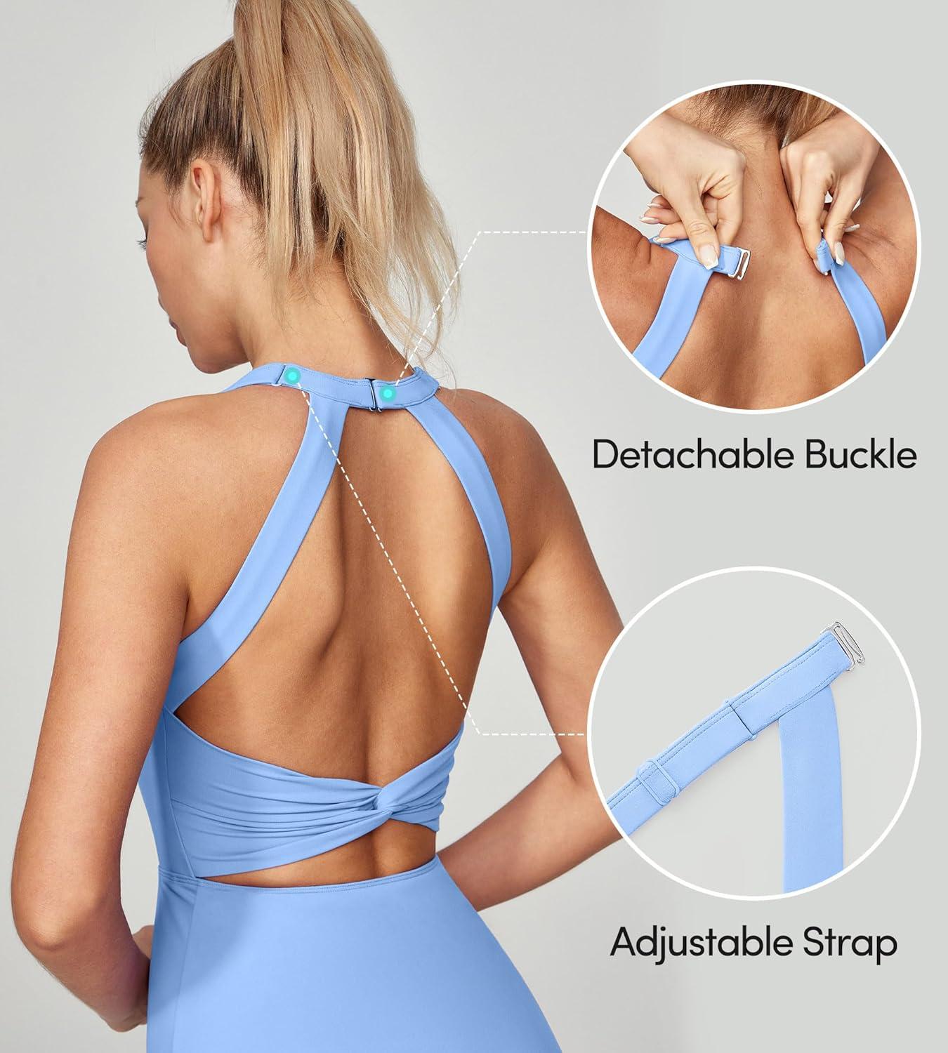 IUGA Womens Tennis Dress with Built in Shorts & Bra Athletic Dress for Women Cut Out Twisted Golf Workout Dress with Pockets(Sky Blue)