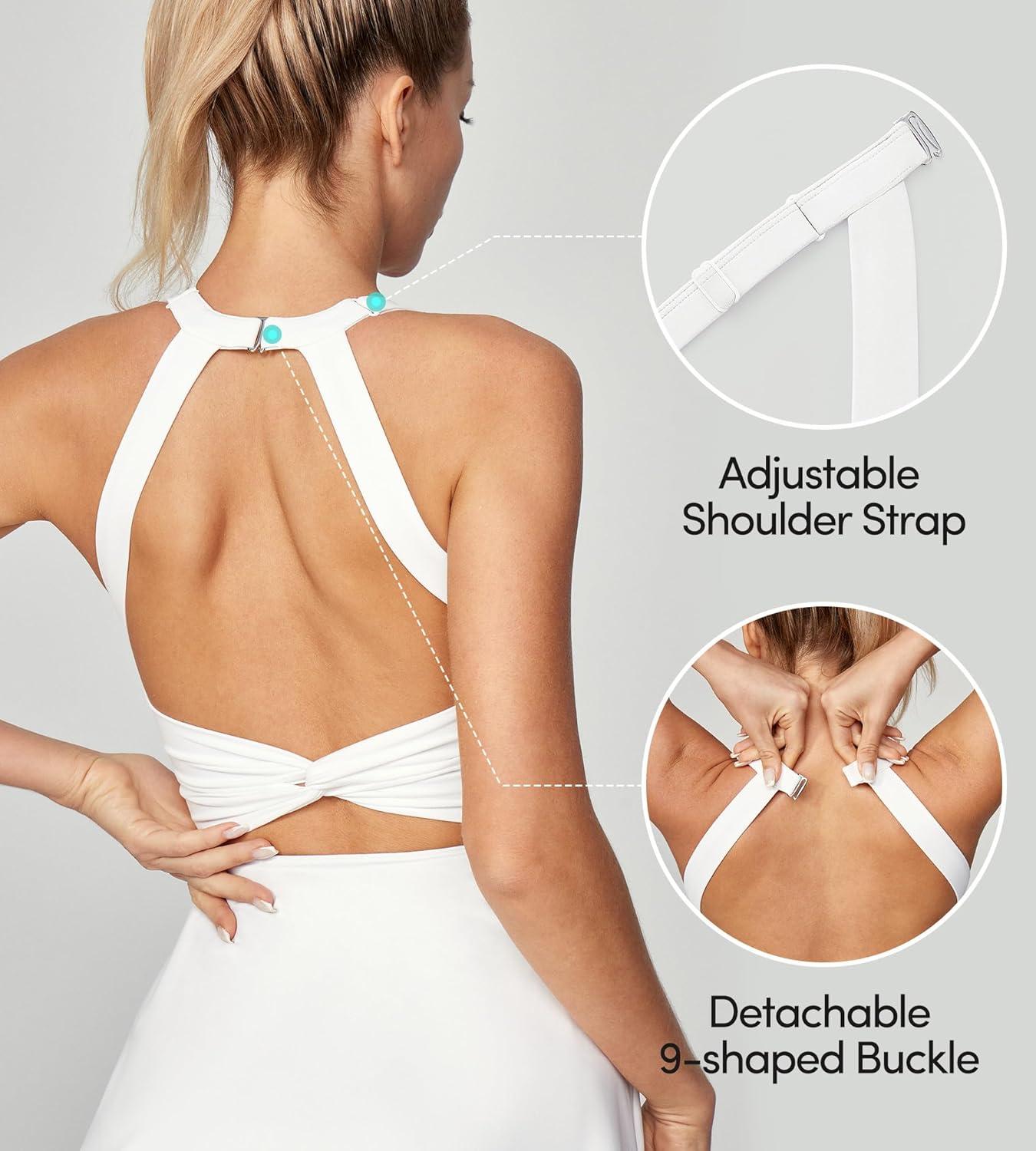 IUGA Womens Tennis Dress with Built in Shorts & Bra Athletic Dress for Women Cut Out Twisted Golf Workout Dress with Pockets(White)