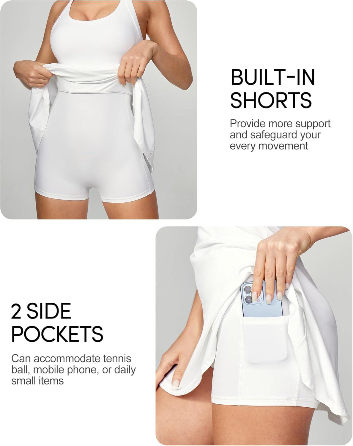 IUGA Womens Tennis Dress with Shorts Underneath Athletic Dress for Women Golf Dresses Summer Outfits for Workout(White)