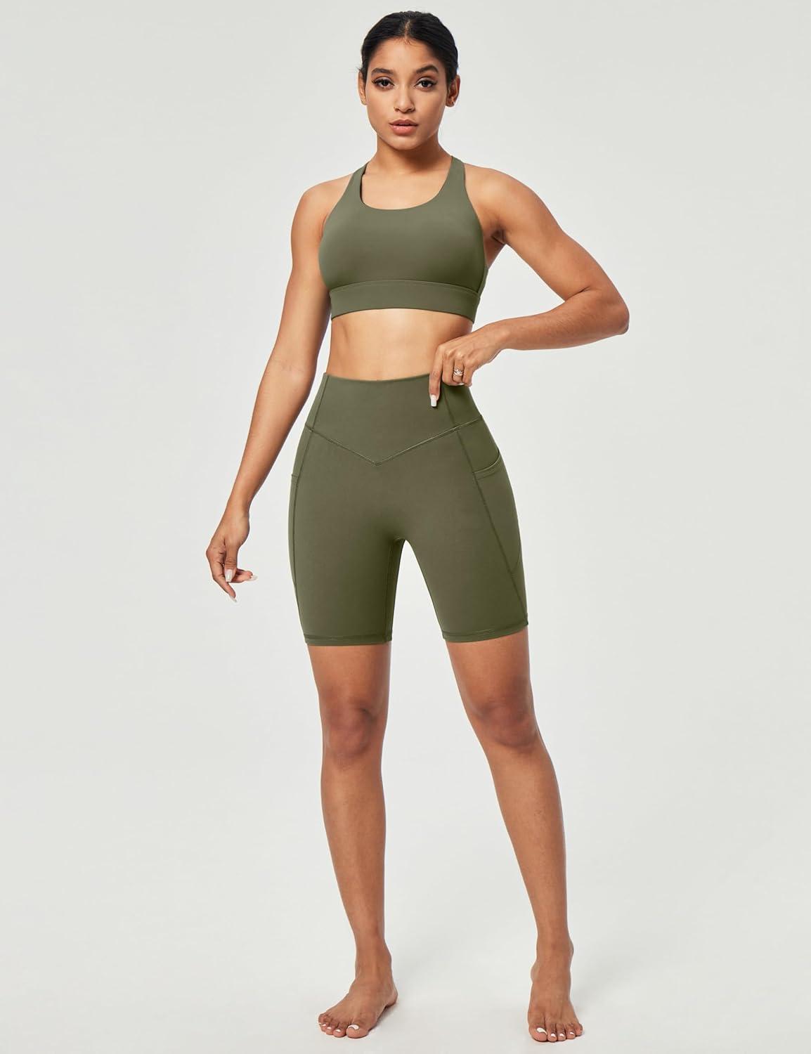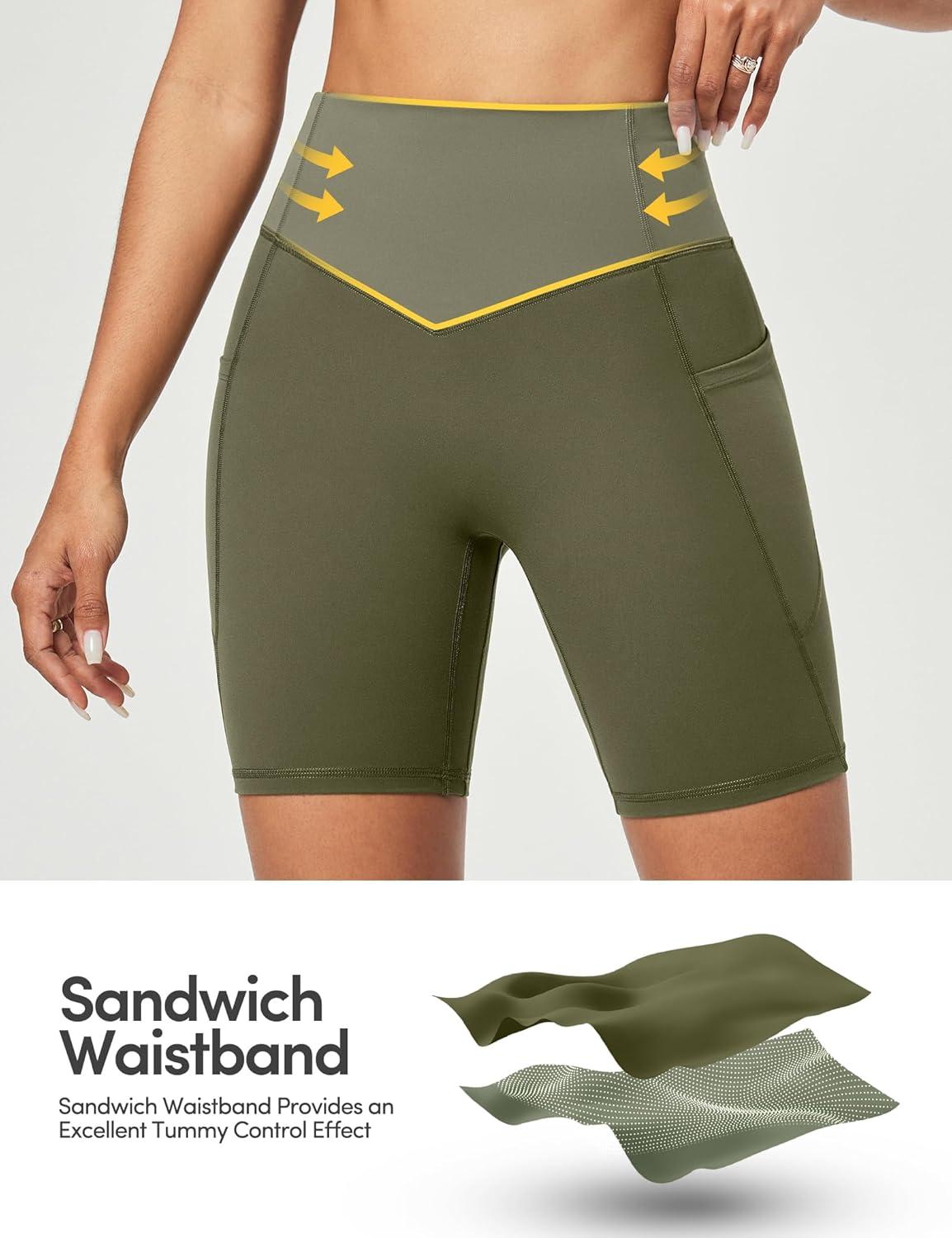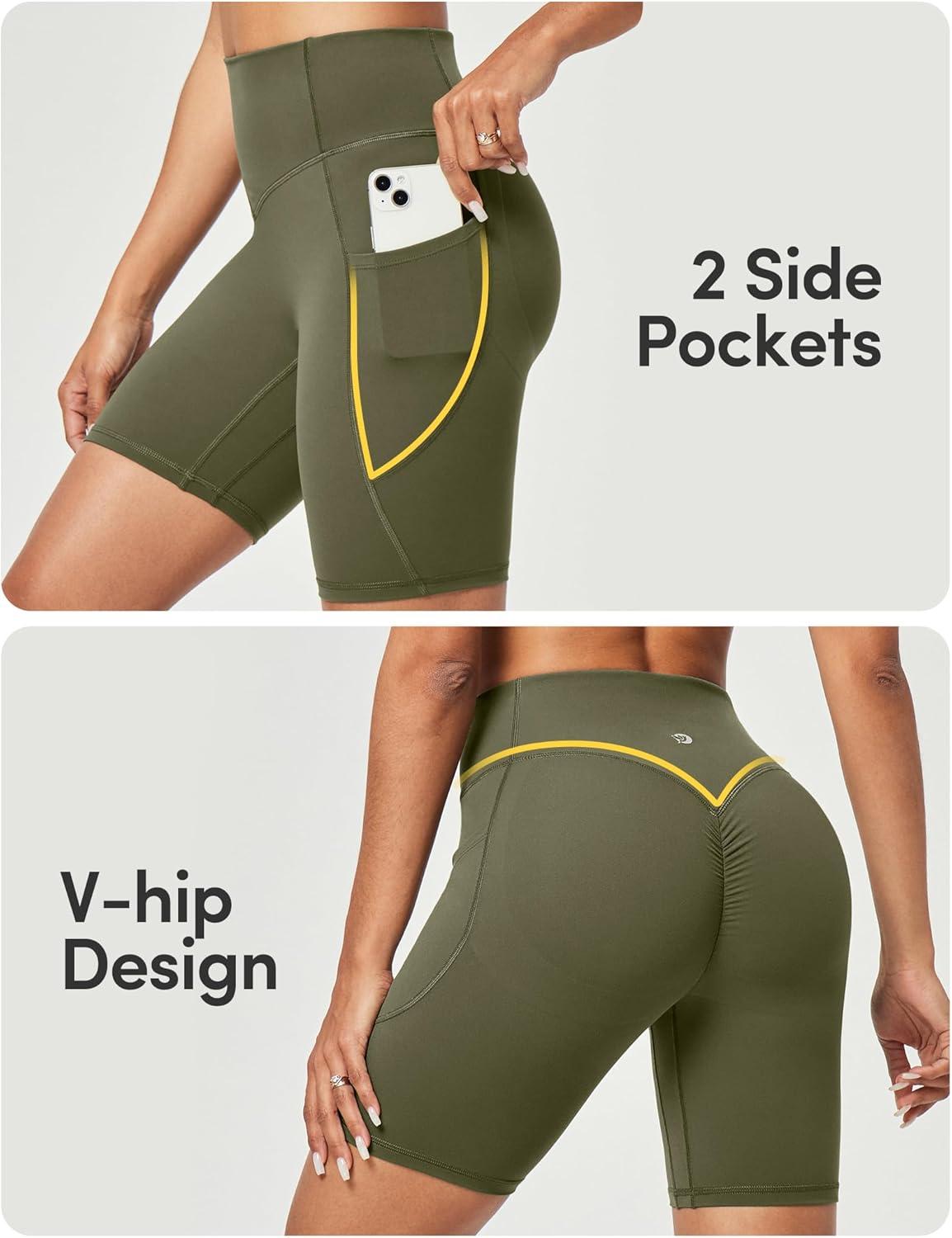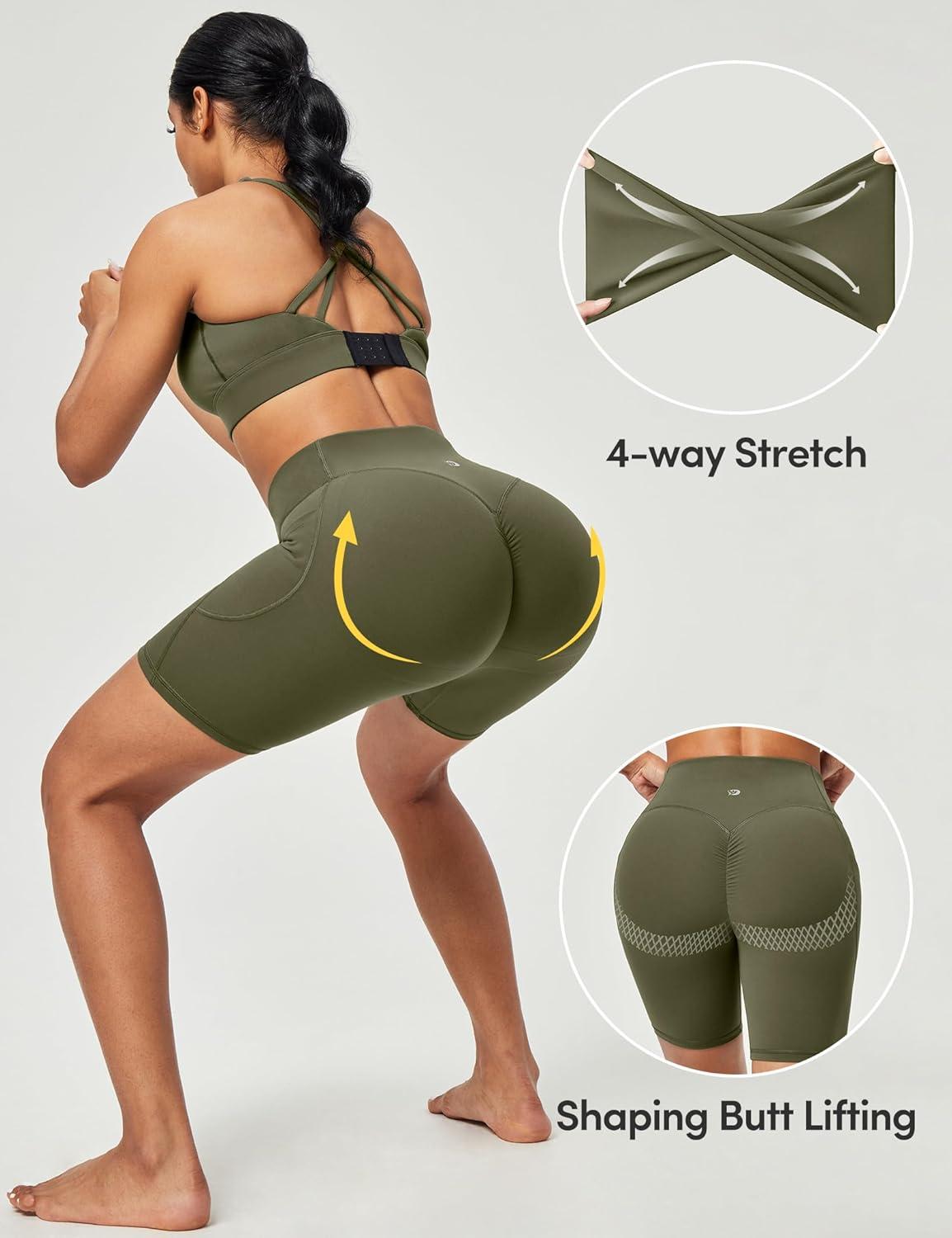 IUGA Gym Shorts Women Scrunch Butt Lifting Tummy Control Biker Shorts with Pockets High Waist Yoga Booty Workout Running 6″(Grass Grey Green)