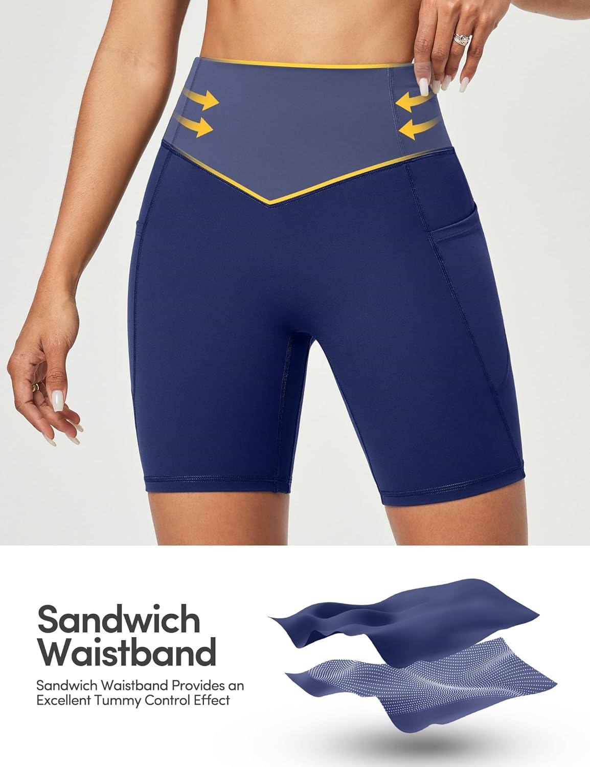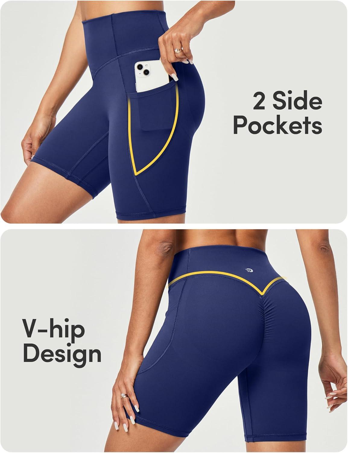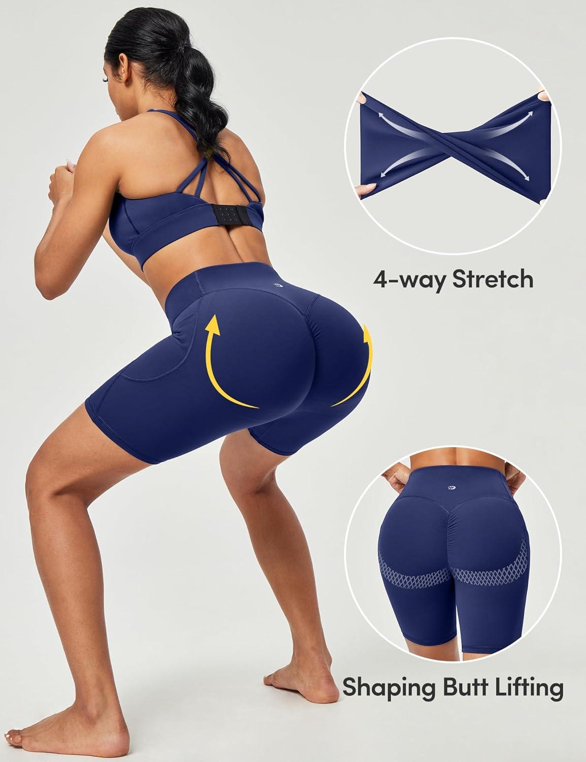 IUGA Gym Shorts Women Scrunch Butt Lifting Tummy Control Biker Shorts with Pockets High Waist Yoga Booty Workout Running 6″(Navy Blue)