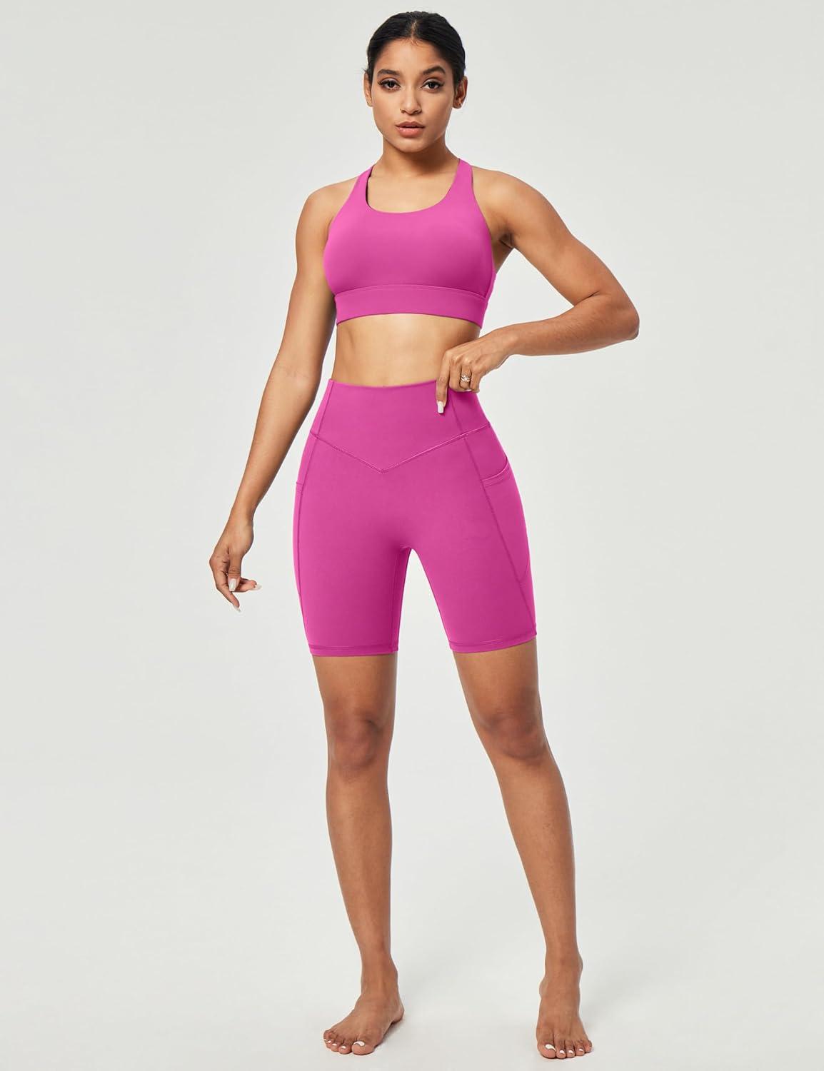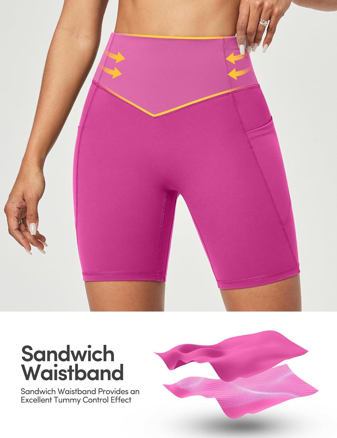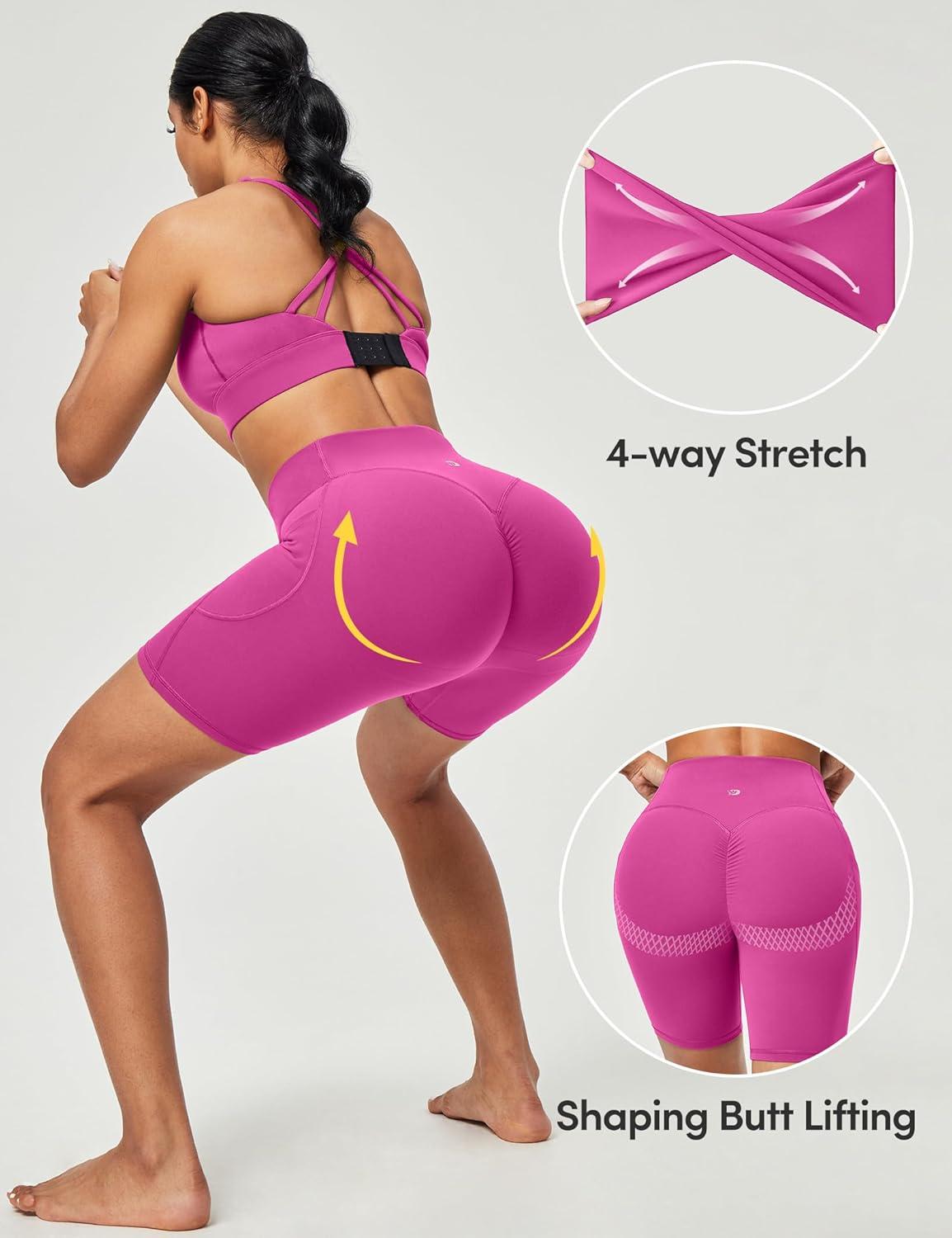 IUGA Gym Shorts Women Scrunch Butt Lifting Tummy Control Biker Shorts with Pockets High Waist Yoga Booty Workout Running 6″(Pink Power)