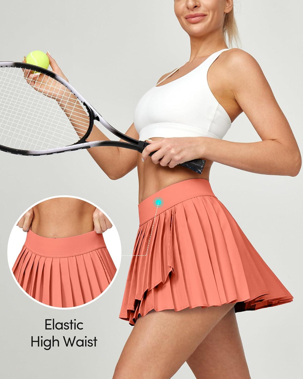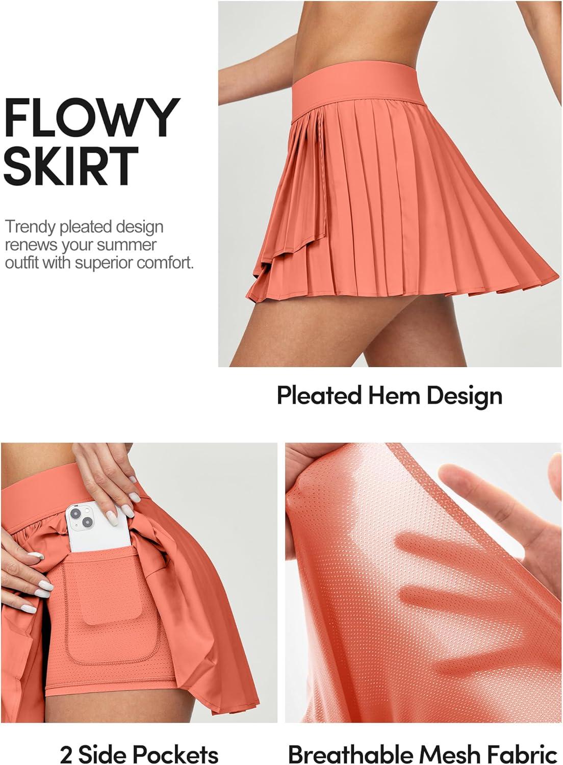 IUGA Tennis Skirt Pleated Skirts for Women with Pockets High Waisted Athletic Skirt Skorts for Woman Workout Golf Skort(Creamy Orange)
