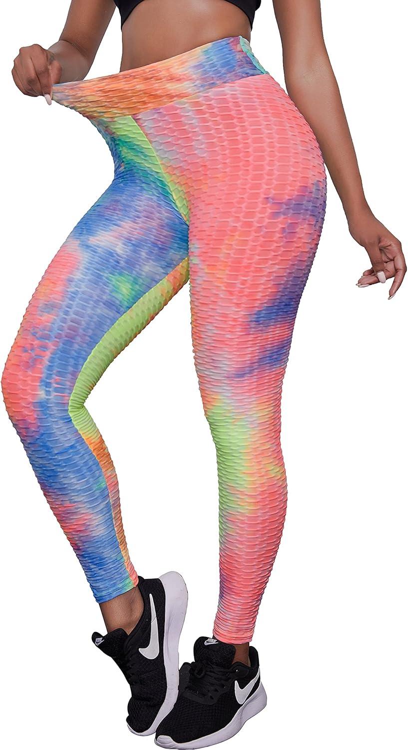 IUGA TIK Tok Leggings for Women Butt Lifting Tiktok Butt Leggings High Waisted Yoga Pants Workout Leggings for Women(Bubble Textured – Tie Dye Rainbow)